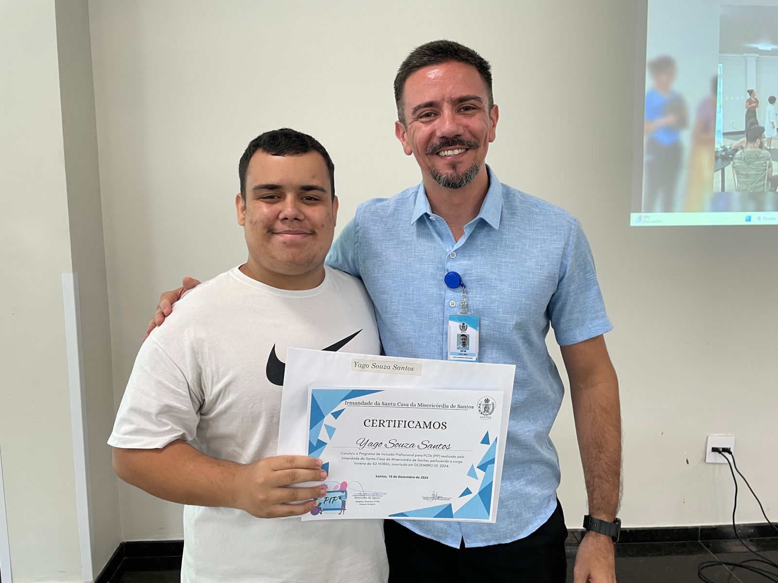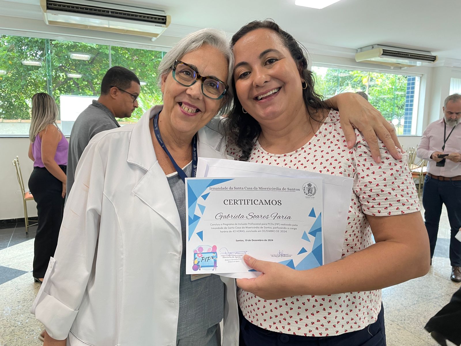 Nesta quinta, dia 19/12, a Santa Casa de Santos realizou a entrega dos certificados de conclusão de curso para os participantes do Programa de Inclusão Profissional para PcD. Esta é a 4ª turma formada pelo curso criado pela instituição, que tem a finalidade de preparar pessoas com deficiência para o mercado de trabalho.