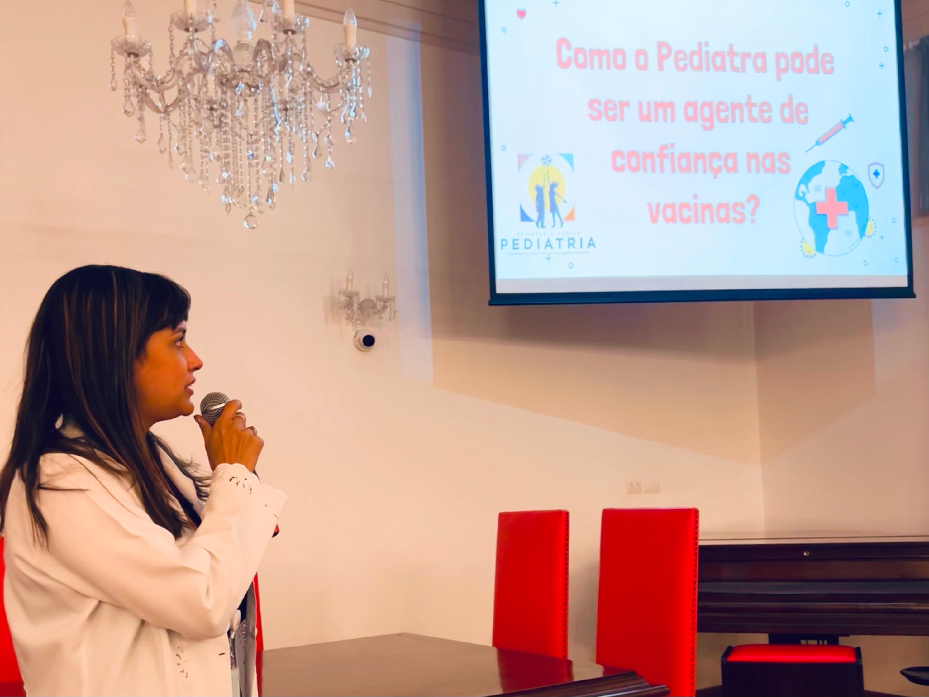 A primeira palestra foi ministrada pela Dra. Carolina Abreu com o tema: “Como o Pediatra pode ser um agente de confiança nas vacinas”, que destacou a história das vacinas no mundo e como a imunização no Brasil é referência internacional. Dra. Carol compilou vários dados e frisou que a OMS (Organização Mundial da Saúde) evita de 2 a 3 milhões de mortes somente com a prevenção e eficácia das vacinas. “É a melhor forma de erradicar doenças. A comunicação efetiva do Pediatra é extremamente importante, pois ele é o primeiro médico da criança”.