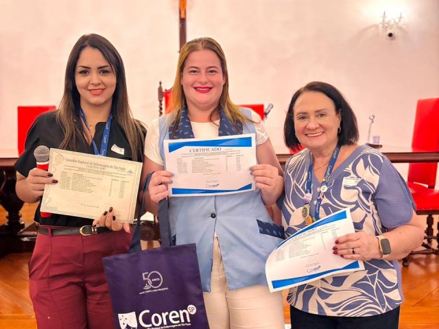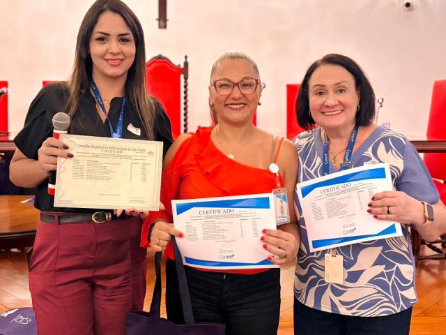 Após a cerimônia de posse, as representantes do Coren São Paulo, Ivete Louzada Trotti e Yara Teixeira dos Santos ministraram uma palestra com o tema: “Posse das Comissões de Ética de Enfermagem”.