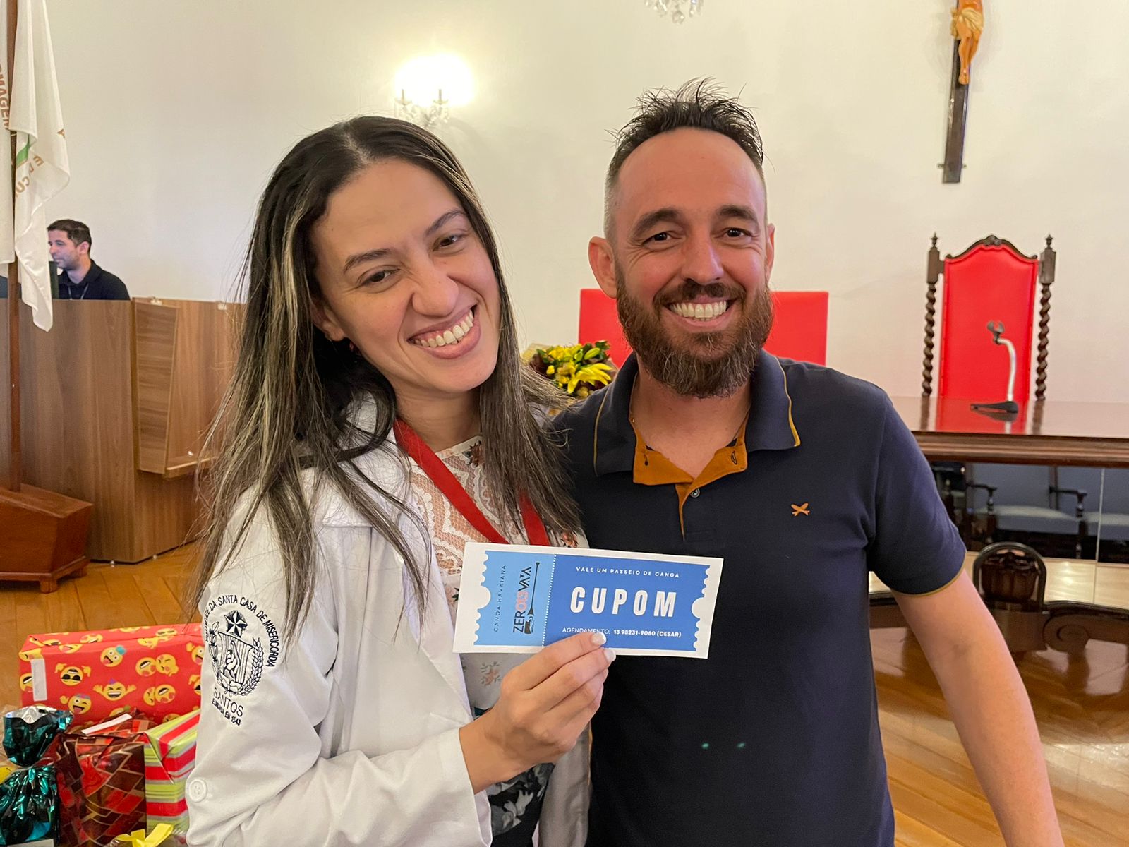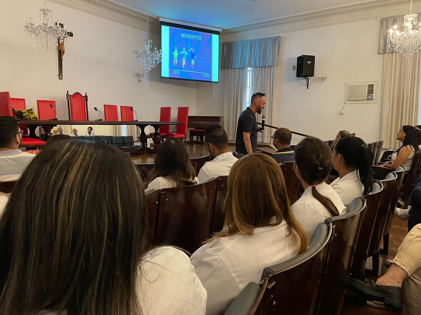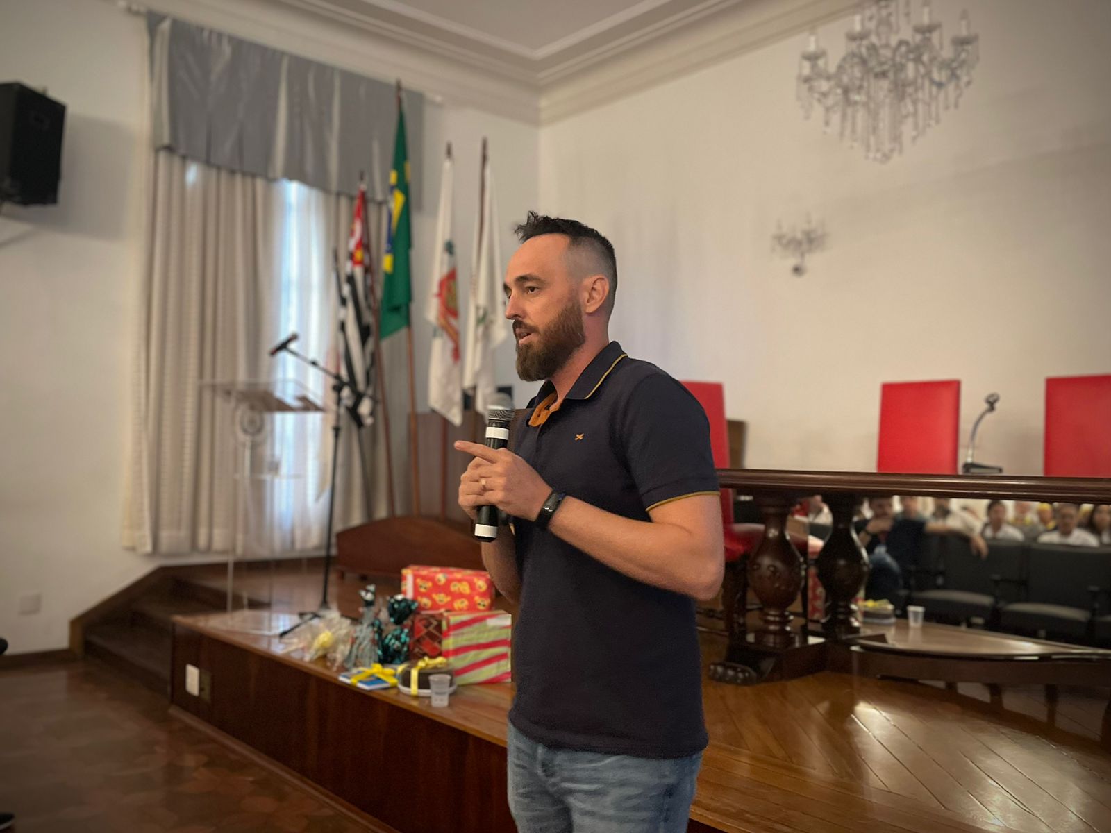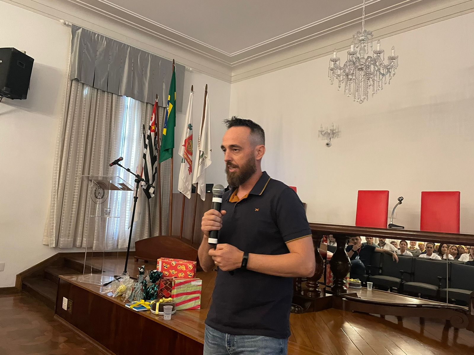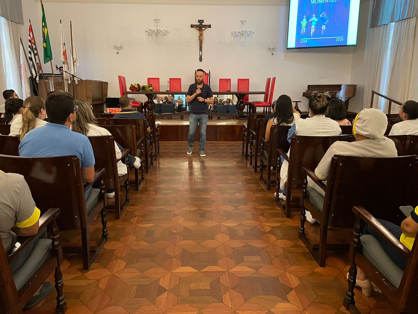 No segundo dia de evento, o atleta amador Cesar Meneguini falou sobre a importância da atividade física para a qualidade de vida e desempenho laboral. Cesar Meneguini é analista de sistemas e gerente da T.I. da Santa Casa e deu um depoimento motivador, destacando como a prática esportiva transformou a sua vida, e que essa mudança está ao alcance de todos.