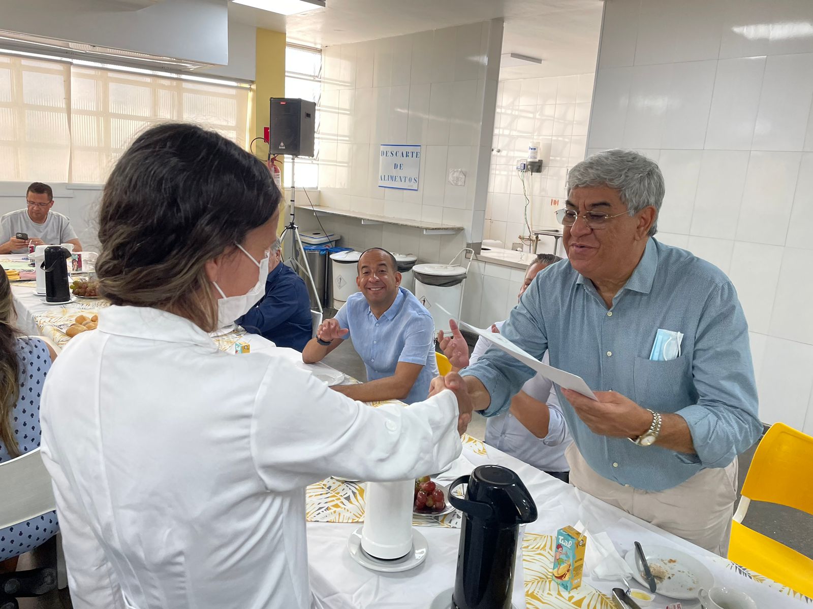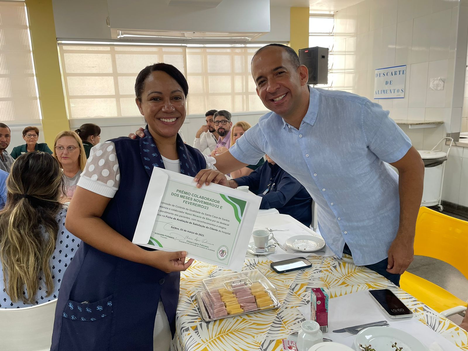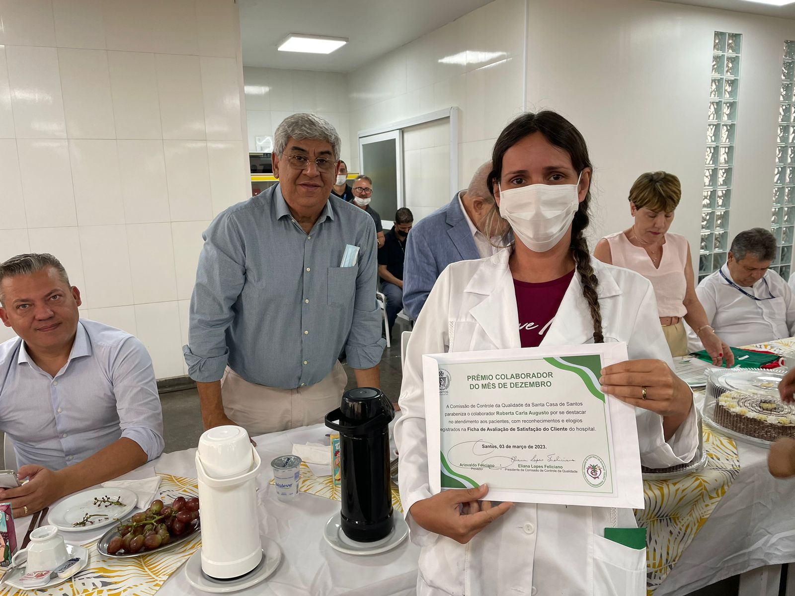 Após todos se servirem do café da manhã, dando continuidade ao evento, o provedor Ariovaldo Feliciano fez a entrega dos certificados de congratulação aos profissionais que se destacaram no atendimento aos pacientes, que foram: