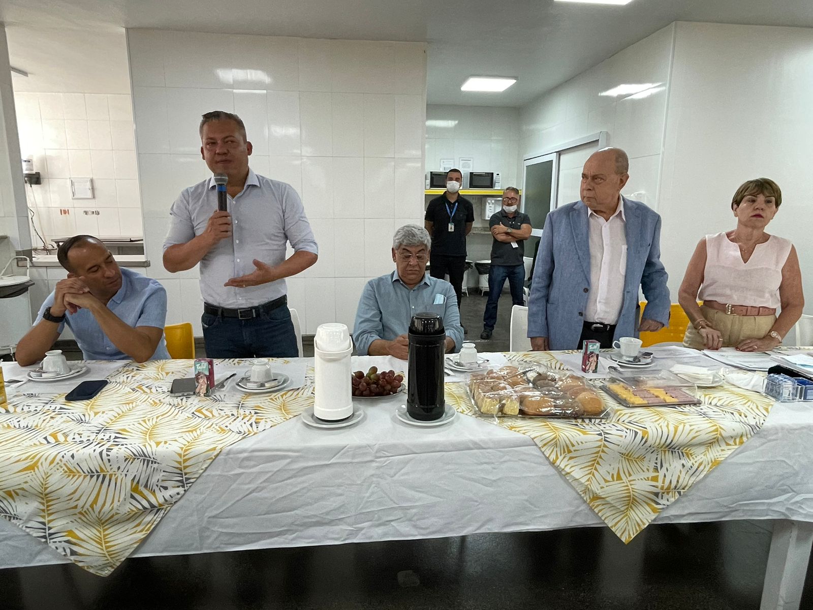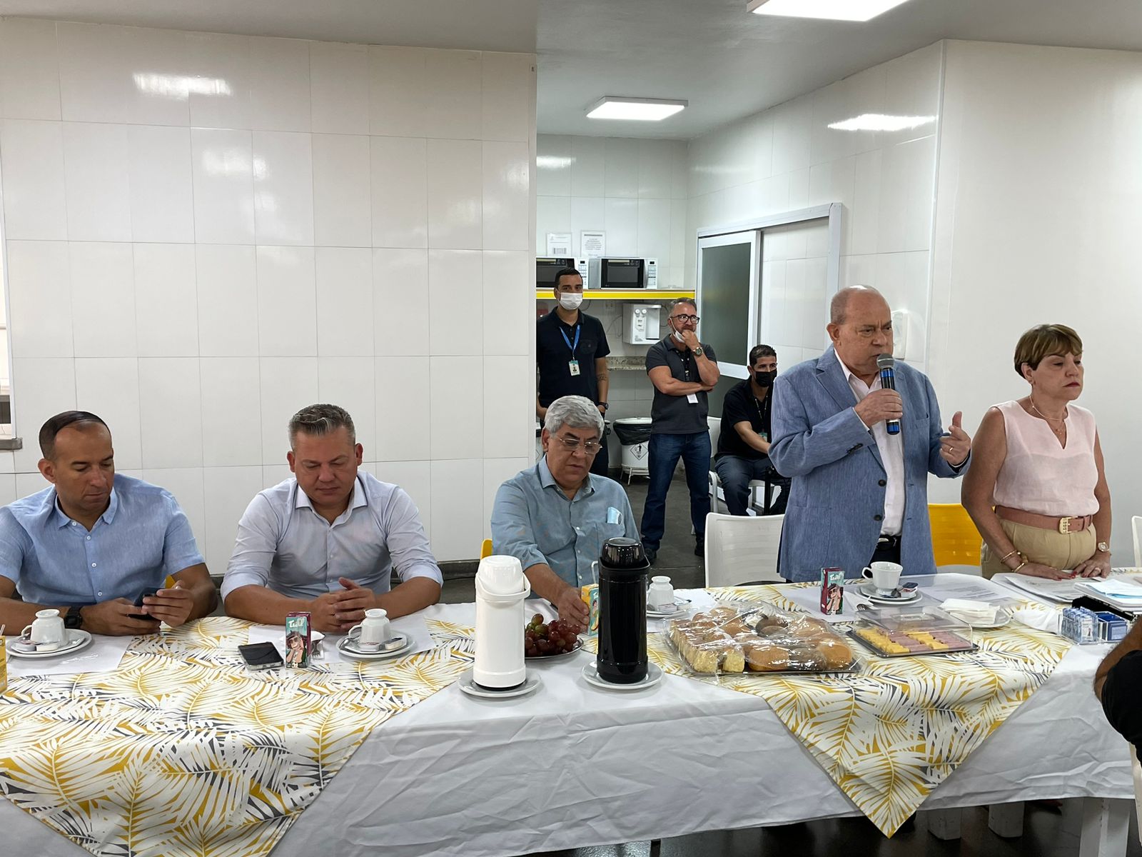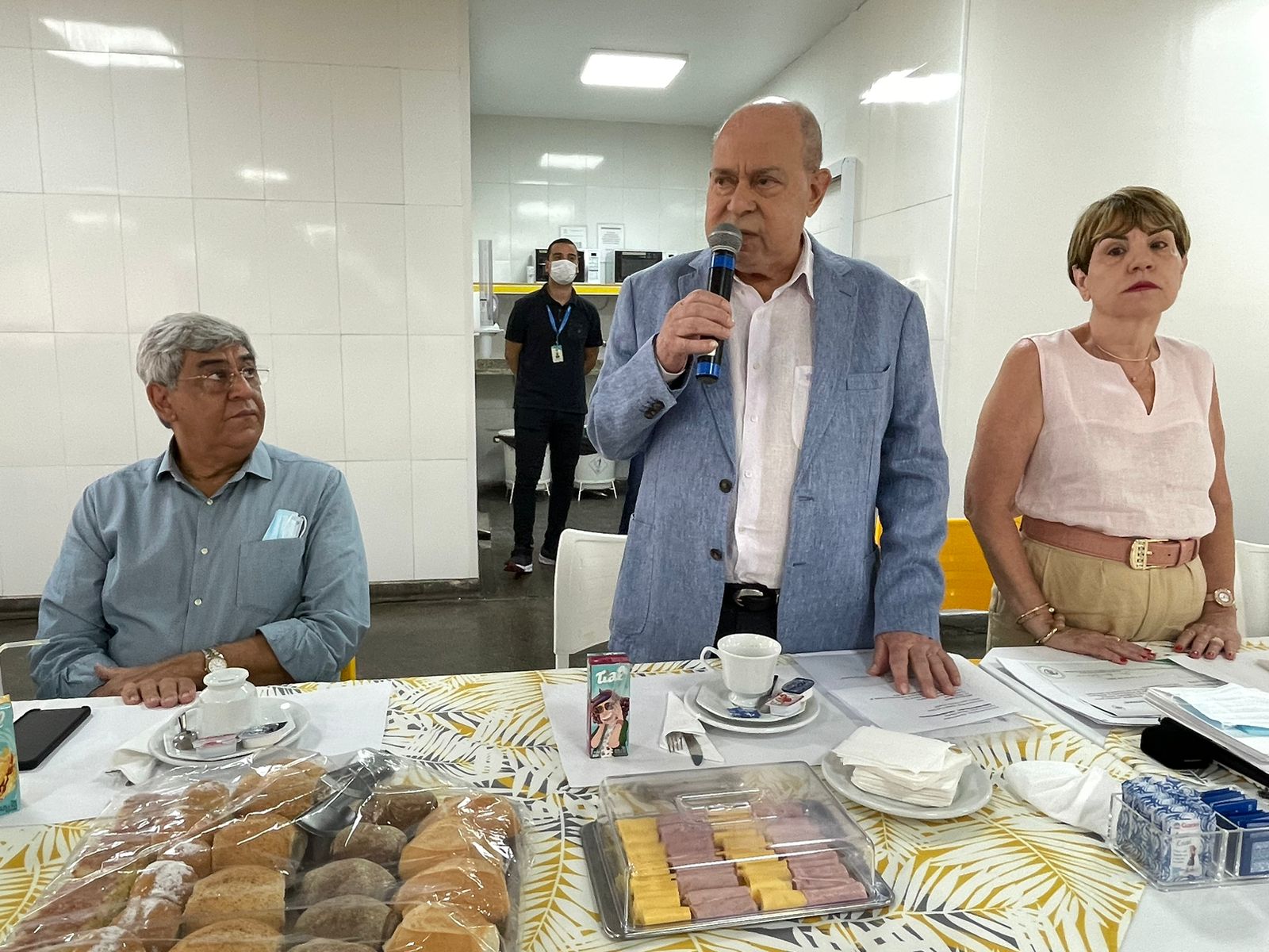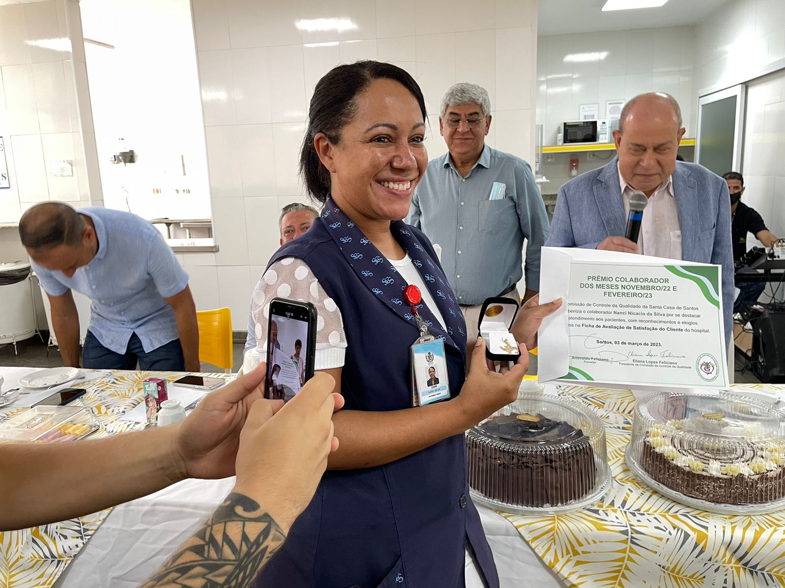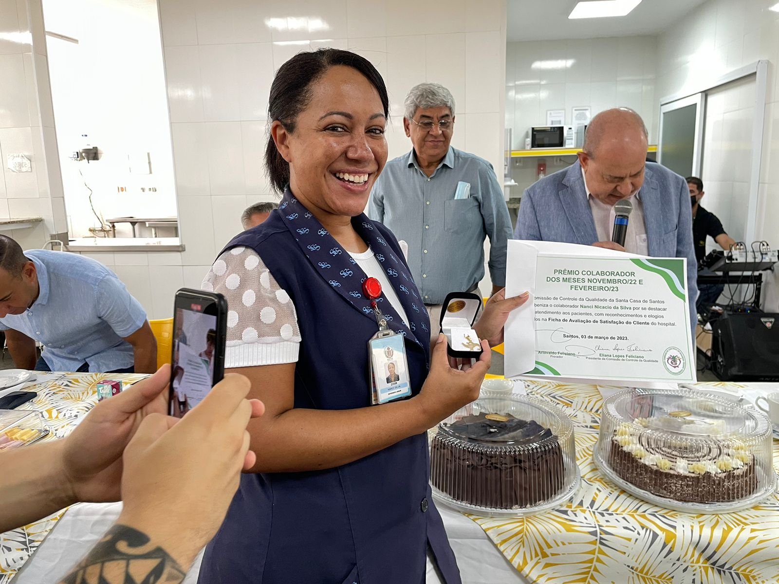 Na mesa reservada aos gestores, estavam presentes: o vice provedor e presidente da câmara de Santos, Carlos Teixeira Filho; a presidente da CCQ e esposa do provedor, Eliana Lopes Feliciano; o 1º tesoureiro da Mesa Administrativa, Antonio Carvalho; o 2º tesoureiro da Mesa Administrativa, Marcelo Muniz Pereira; o 2º secretário da Mesa Administrativa, André Galocha Medeiros; o 1º secretário do Conselho Geral, Florival Amado Barleta; o presidente do Conselho Deliberativo, Écio Lescreck; a vice-presidente do Conselho Deliberativo e coordenadora da CCQ, Marise Céspedes Tavolaro; o 2º secretário do Conselho Geral, Victor Conde do Nascimento; o diretor clínico, Dr. Constantino Kader Conde; o diretor de apoio, Octavio Tavolaro; o diretor comercial, Fábio Isoldi; o diretor jurídico, Aldo Santos Pinto; o coordenador médico do Serviço de Cirurgia Plástica da Santa Casa, Dr. Sylvio Corrêa Junior; e o presidente da Abrescas, Paulo Ramos.