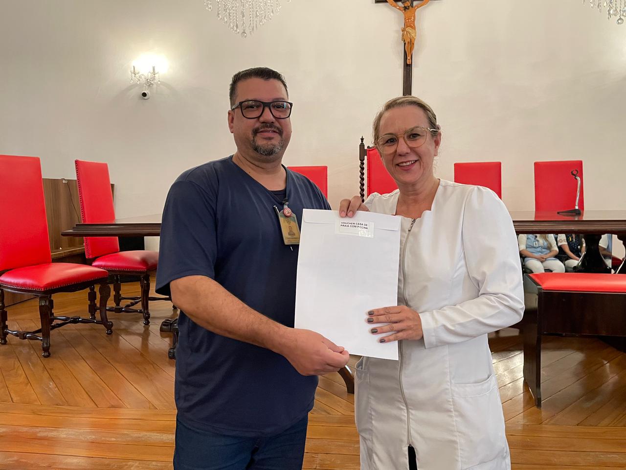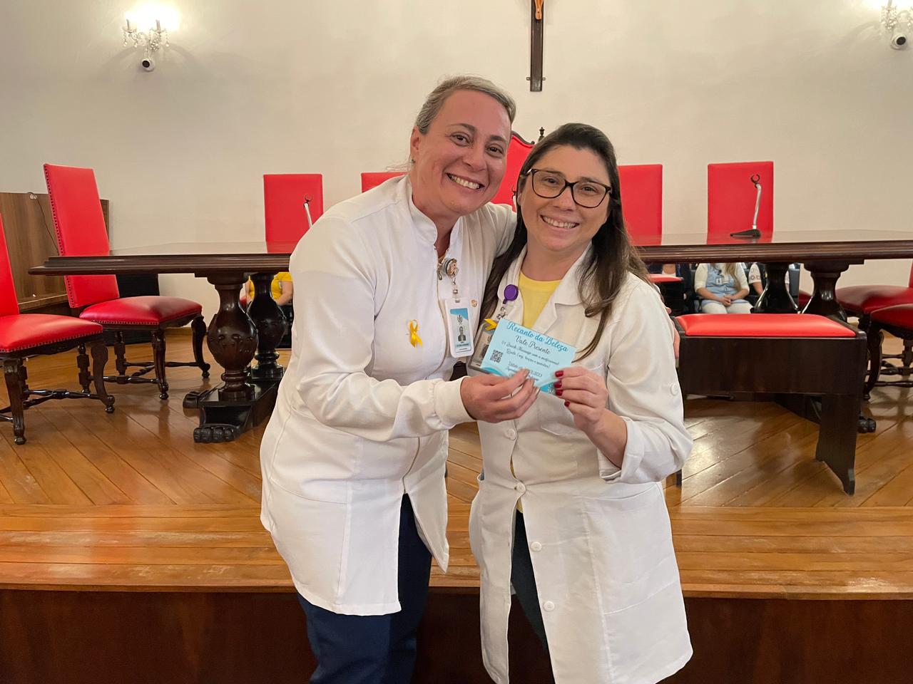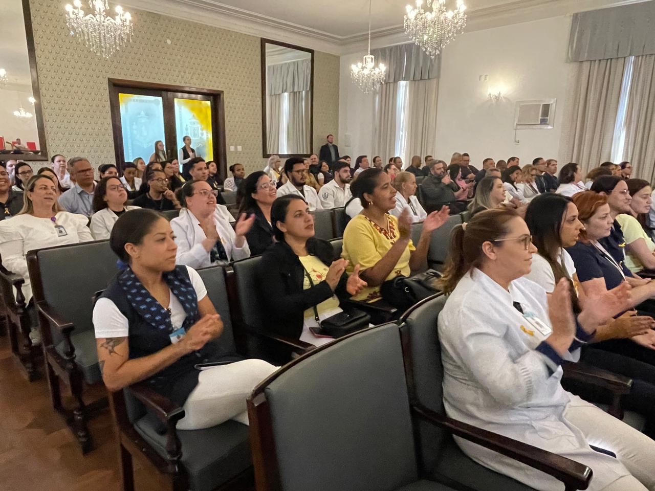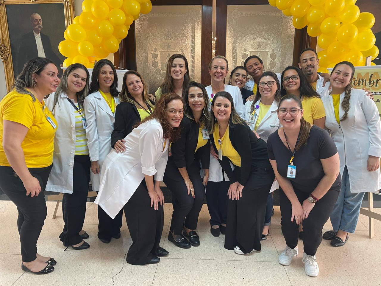 O início da semana na Santa Casa de Santos começou diferente para os funcionários da instituição, que foram recepcionados logo no primeiro horário da manhã com música e um grupo da comissão organizadora da campanha Setembro Amarelo entregando pirulitos com frases motivacionais.