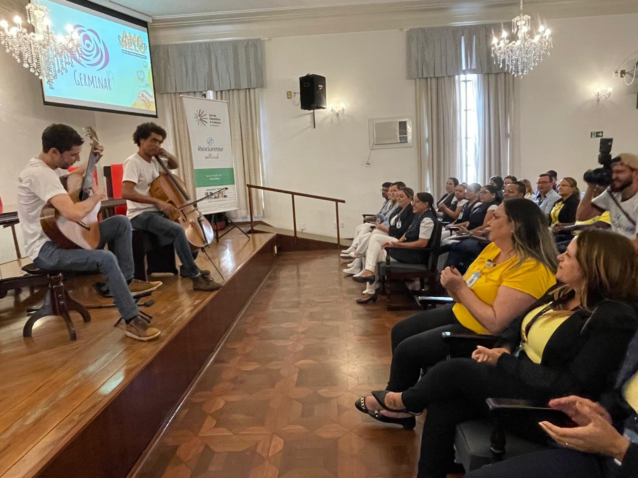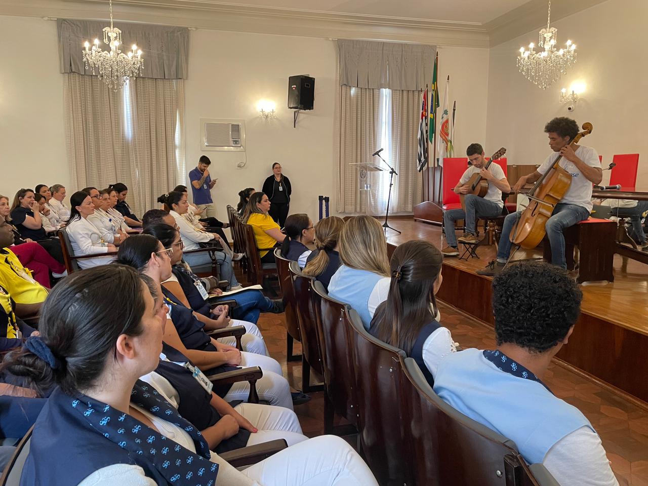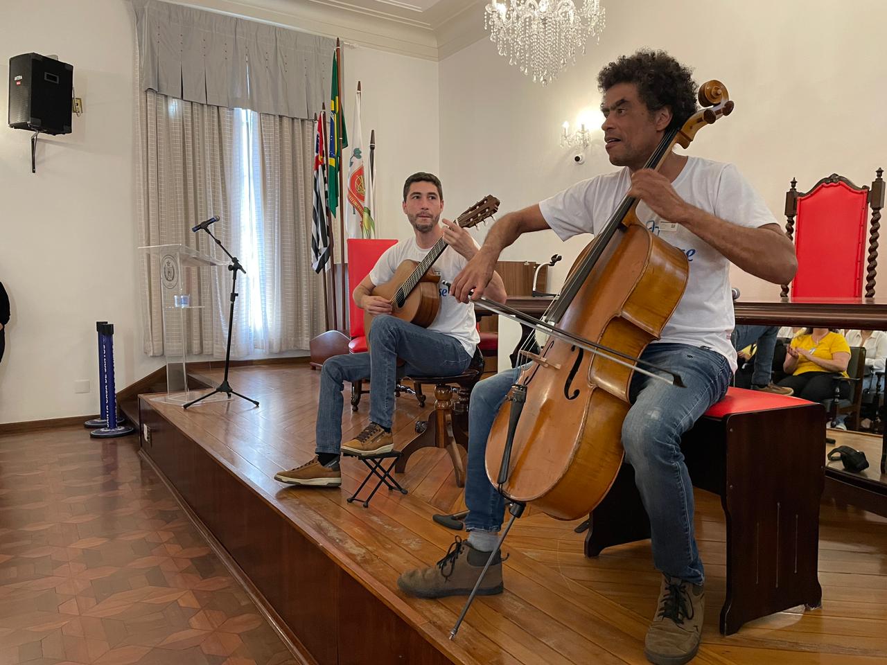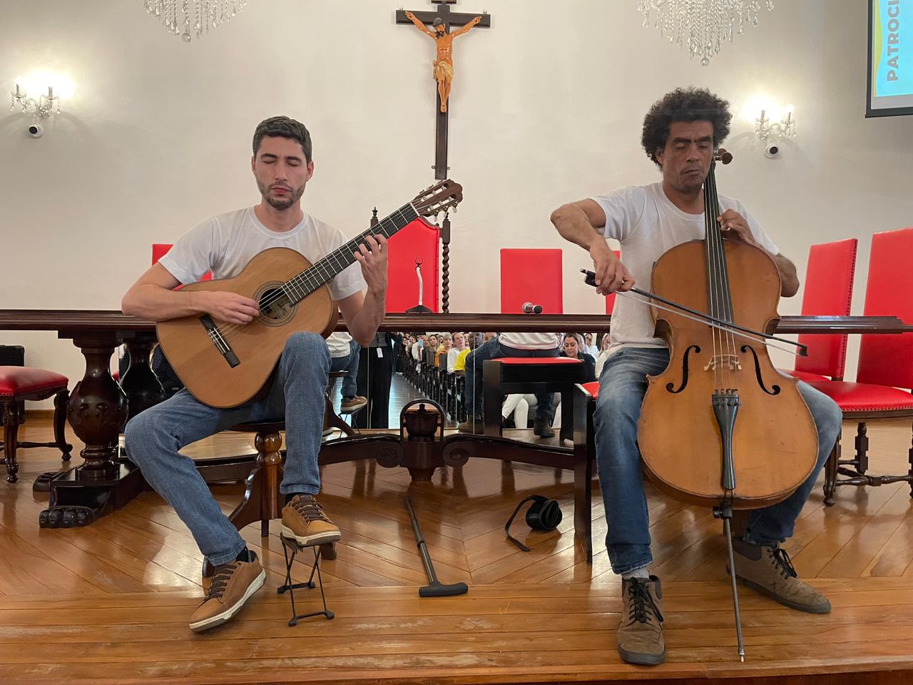 No período da tarde, às 14h, no consistório, teve apresentação da Orquestra de Cordas Rioclarense Cultural que emocionou o público, que lotou o espaço e cantou junto o repertório apresentado.