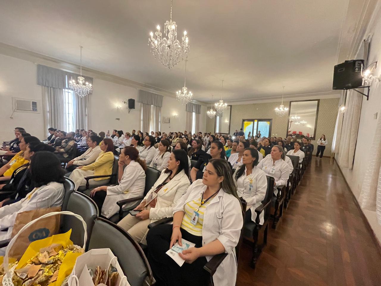 Em seguida, a enfermeira Gislane Lacerda Aleixo Soares, que atua na ala de psiquiatria, fez uma palestra para alertar sobre os sinais que as pessoas podem apresentar quando estão precisando de cuidados relacionados com a saúde mental.