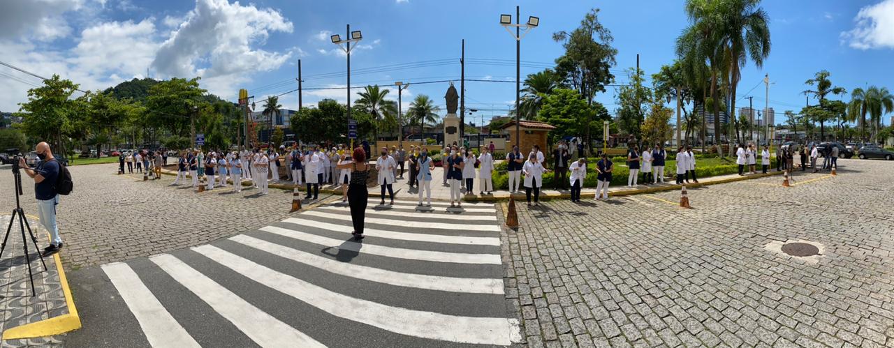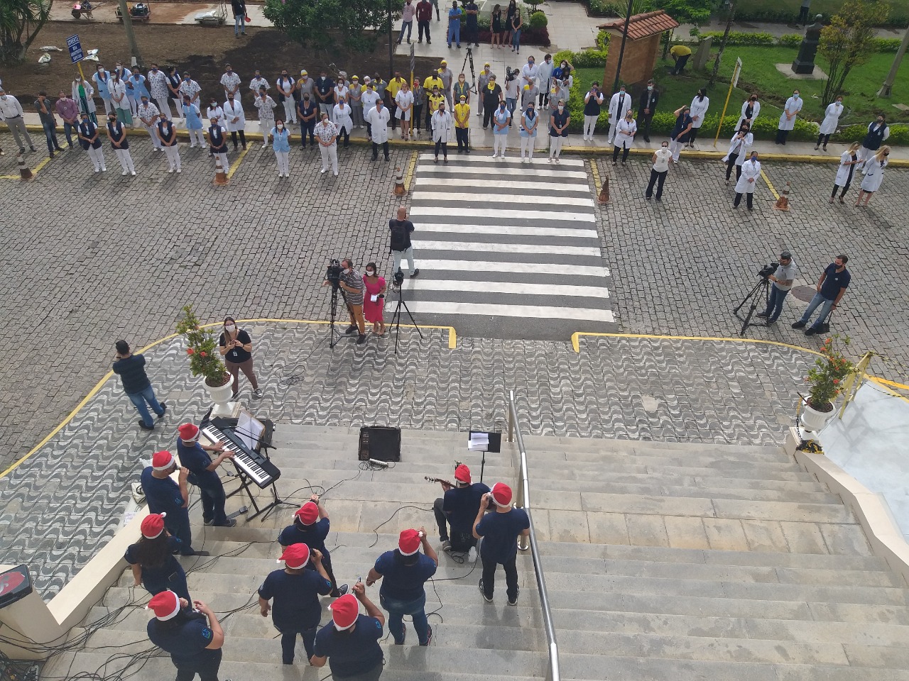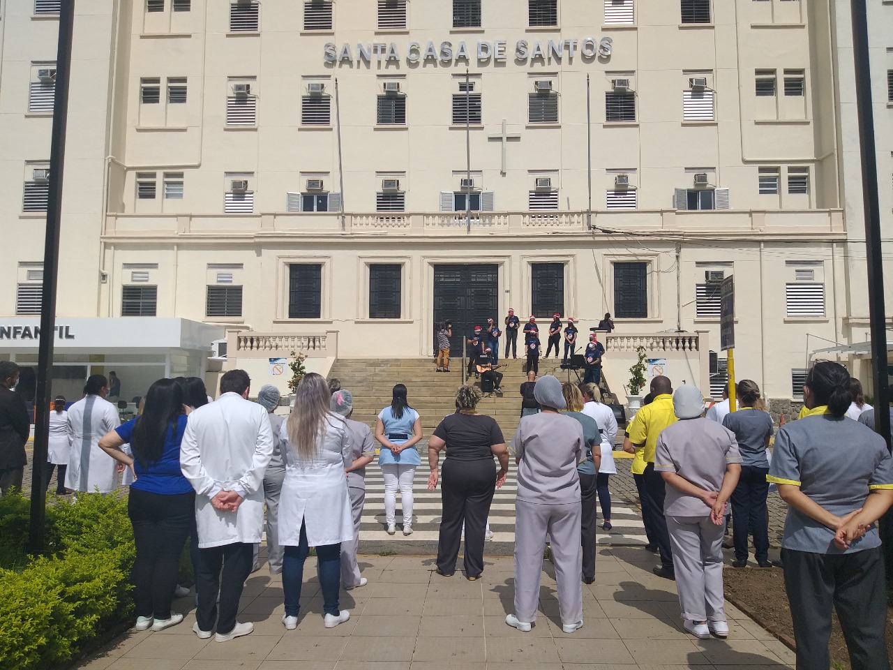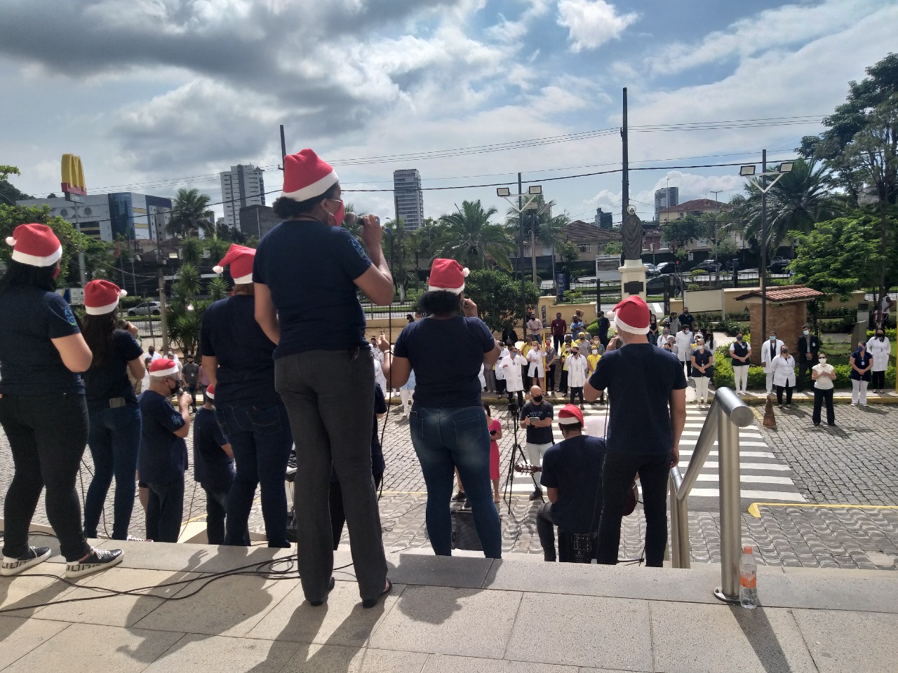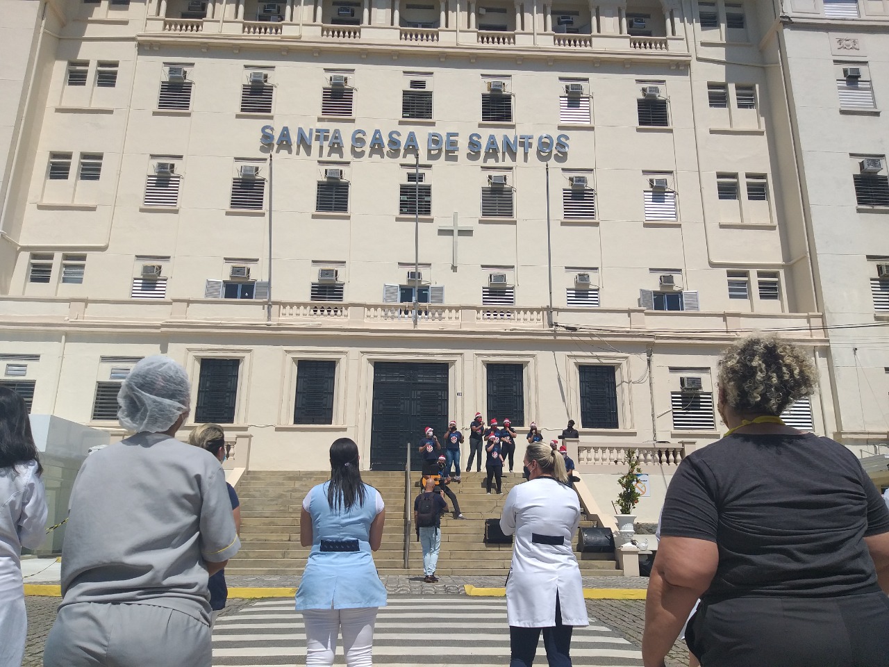 A apresentação aconteceu nas escadarias principais da Santa Casa de Santos, e mais de 100 colaboradores, além de pessoas que passavam em frente ao hospital, prestigiaram o evento.