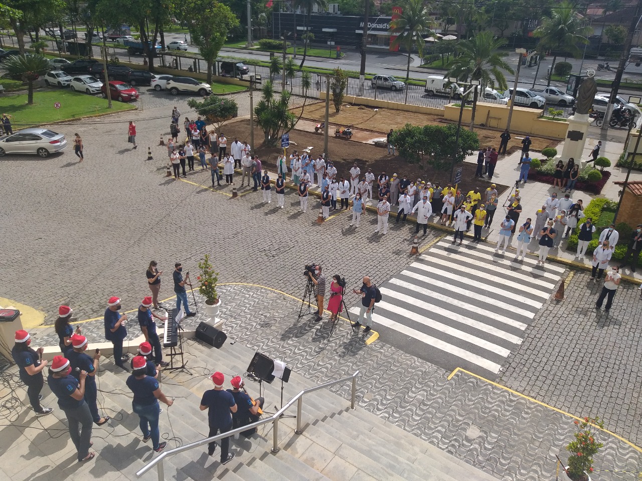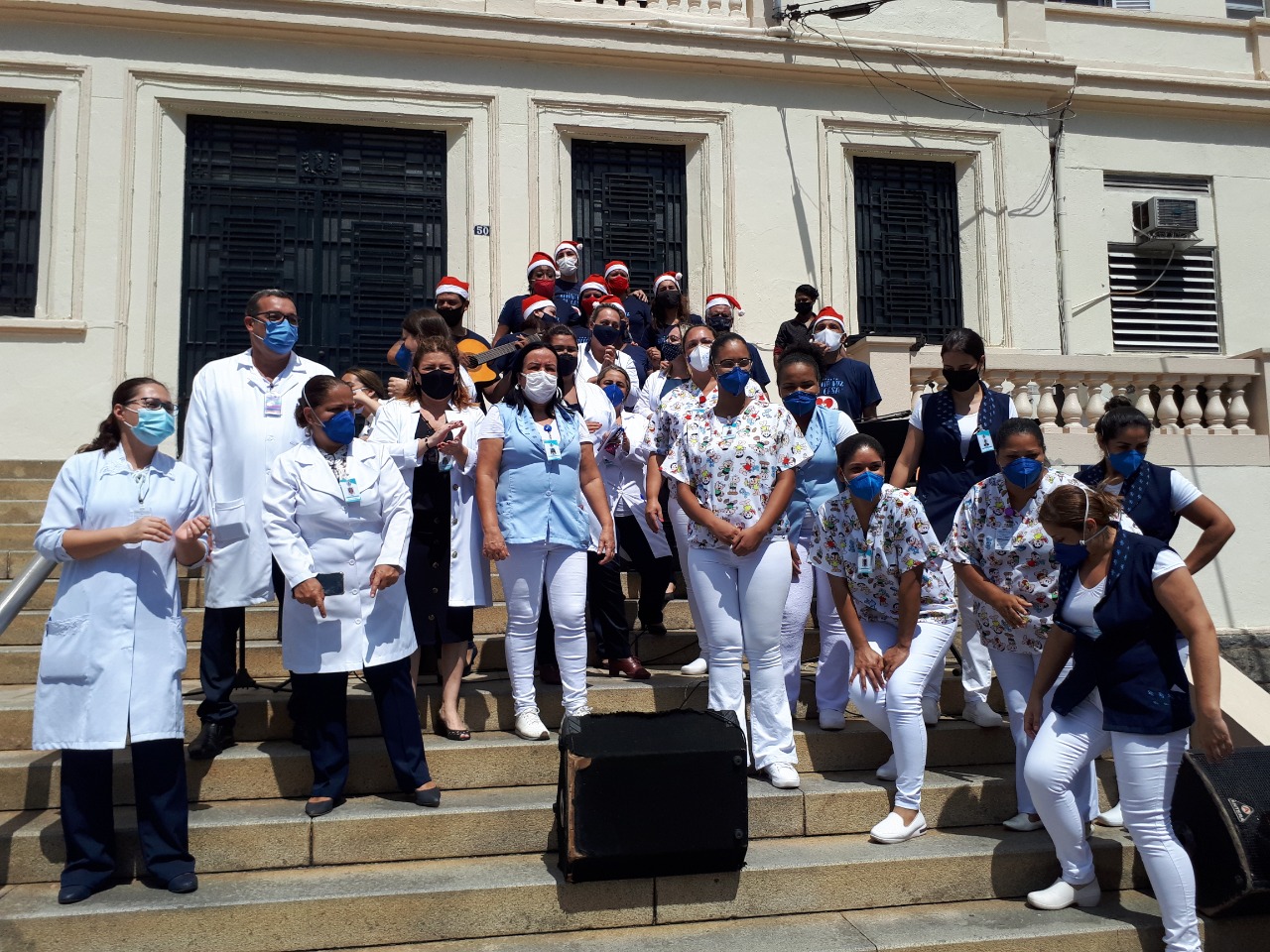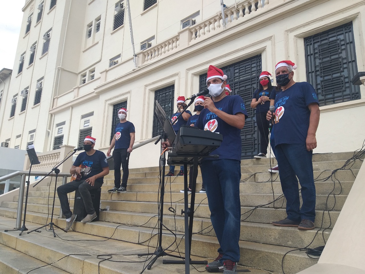 A manhã do dia 18 de dezembro foi marcada por muita emoção, com a apresentação do grupo musical Santa Voz de Casa*, que dedicou todo o repertório aos profissionais de saúde que foram o grande destaque de 2020, na linha de frente do combate à Covid-19.