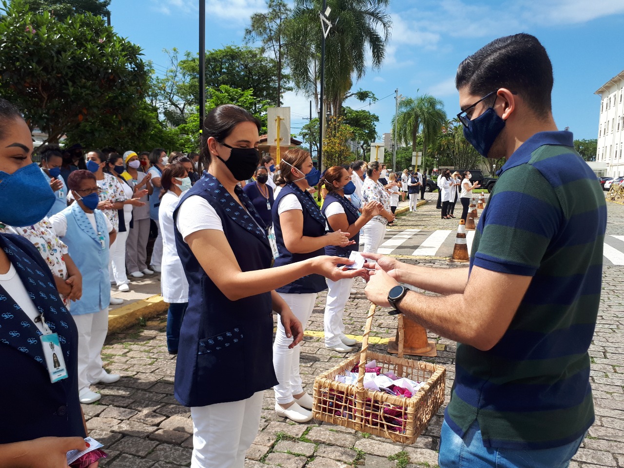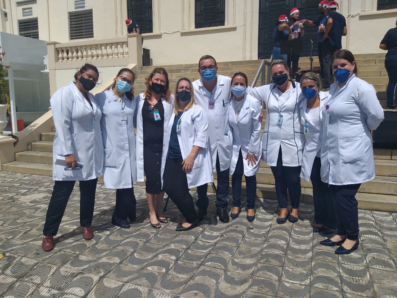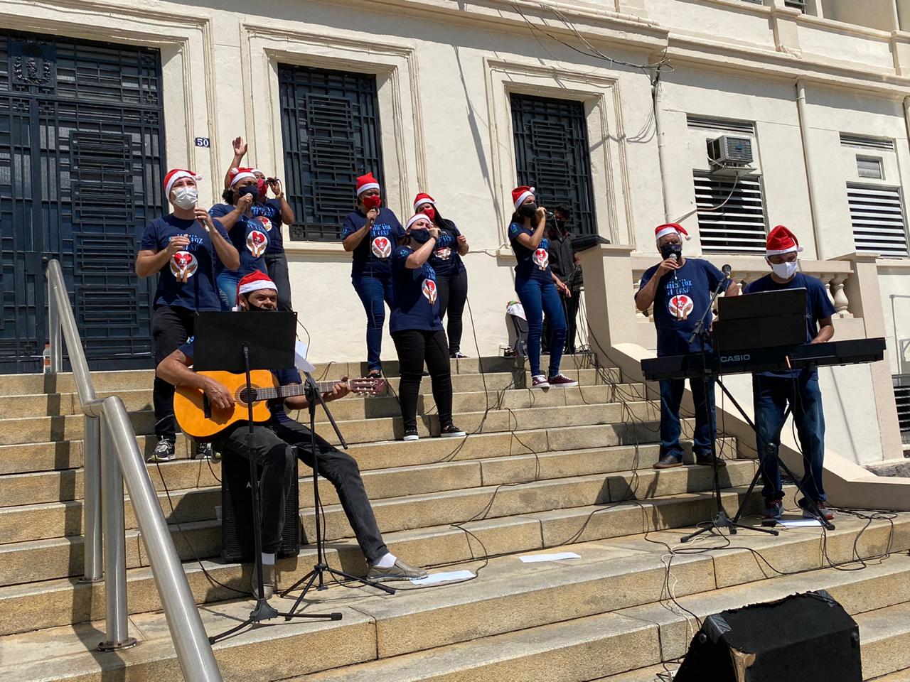 A manhã do dia 18 de dezembro foi marcada por muita emoção, com a apresentação do grupo musical Santa Voz de Casa*, que dedicou todo o repertório aos profissionais de saúde que foram o grande destaque de 2020, na linha de frente do combate à Covid-19.