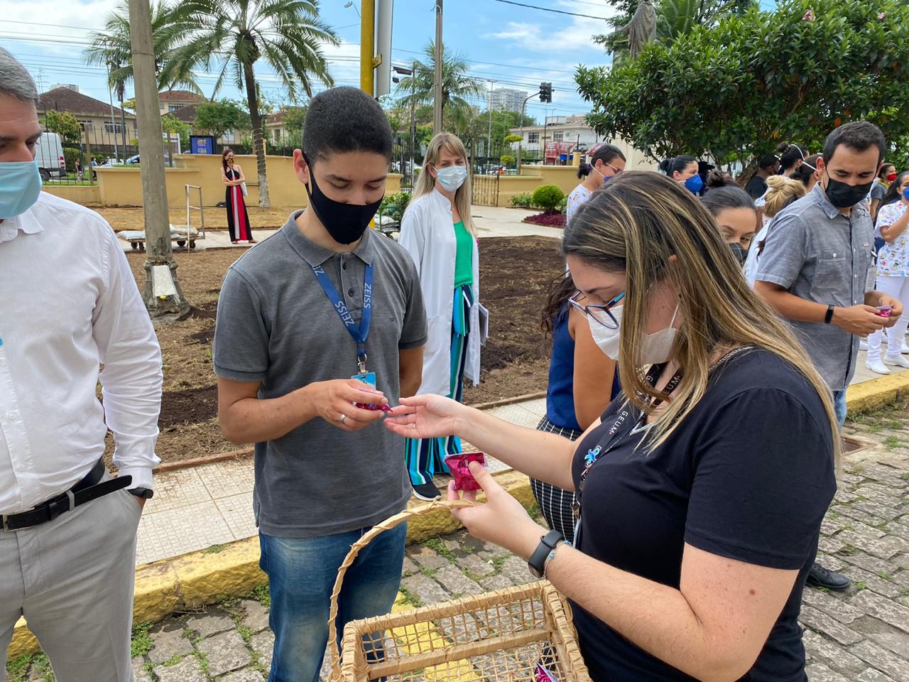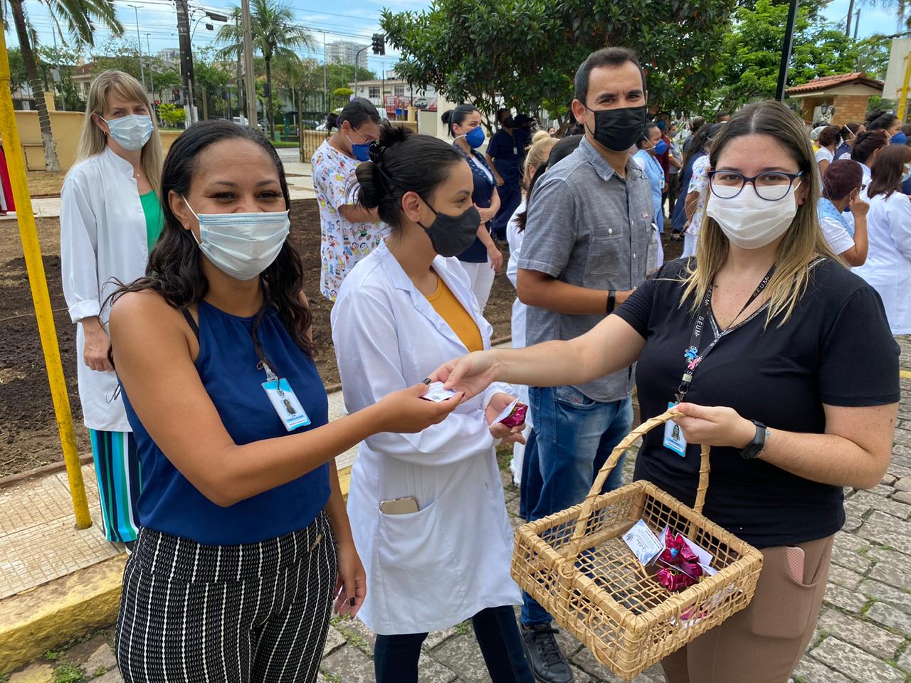 A homenagem foi promovida pela Santa Casa de Santos, e todos os protocolos de segurança contra a Covid-19 foram cumpridos.