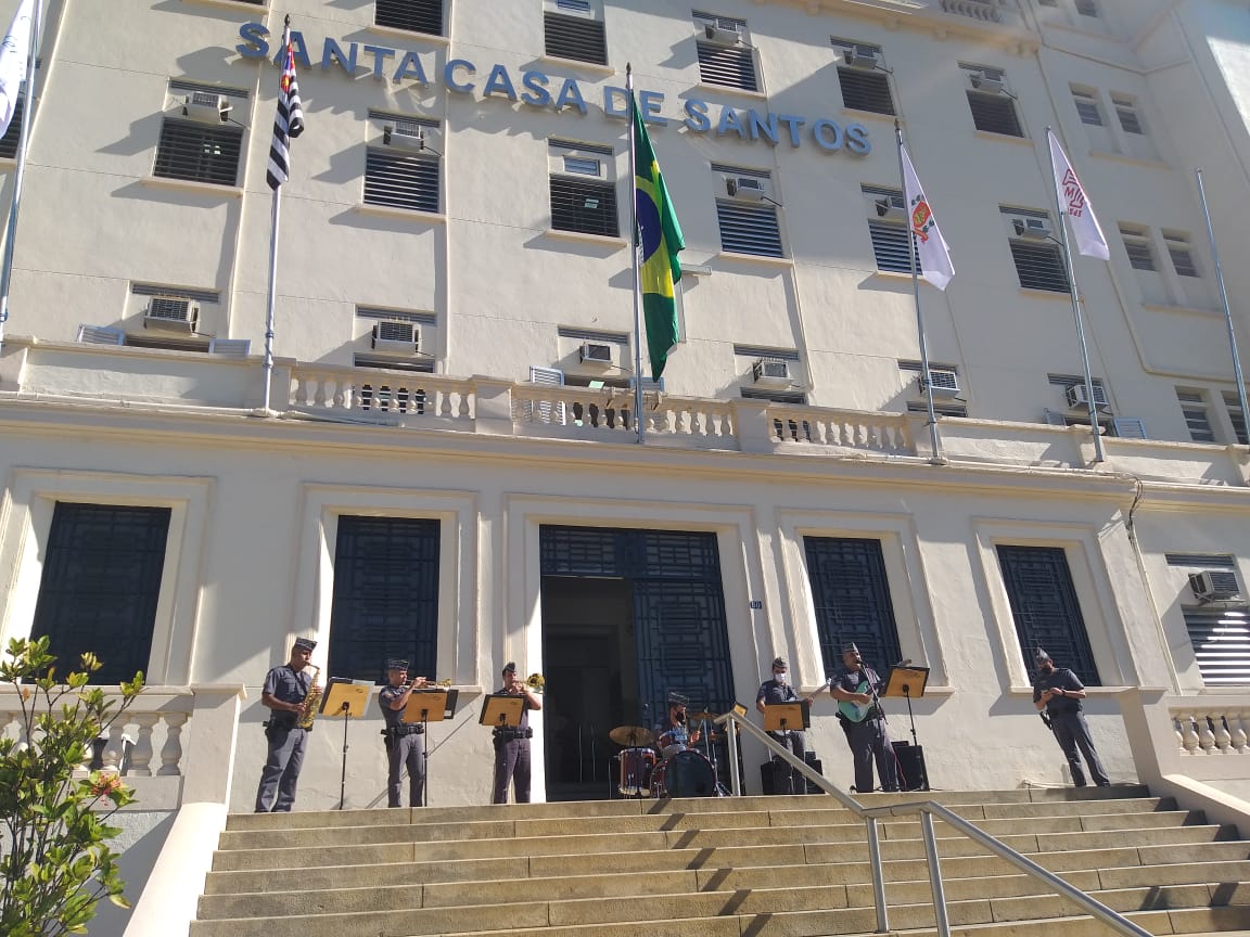 A programação aberta ao público continuou nas escadarias do hospital, com a Banda Regimental de Música do Comando de Policiamento do Interior 6. Com repertório dedicado aos profissionais de saúde, a apresentação “Gratidão em Melodia” animou os profissionais de saúde e as pessoas que passavam pelo local.
