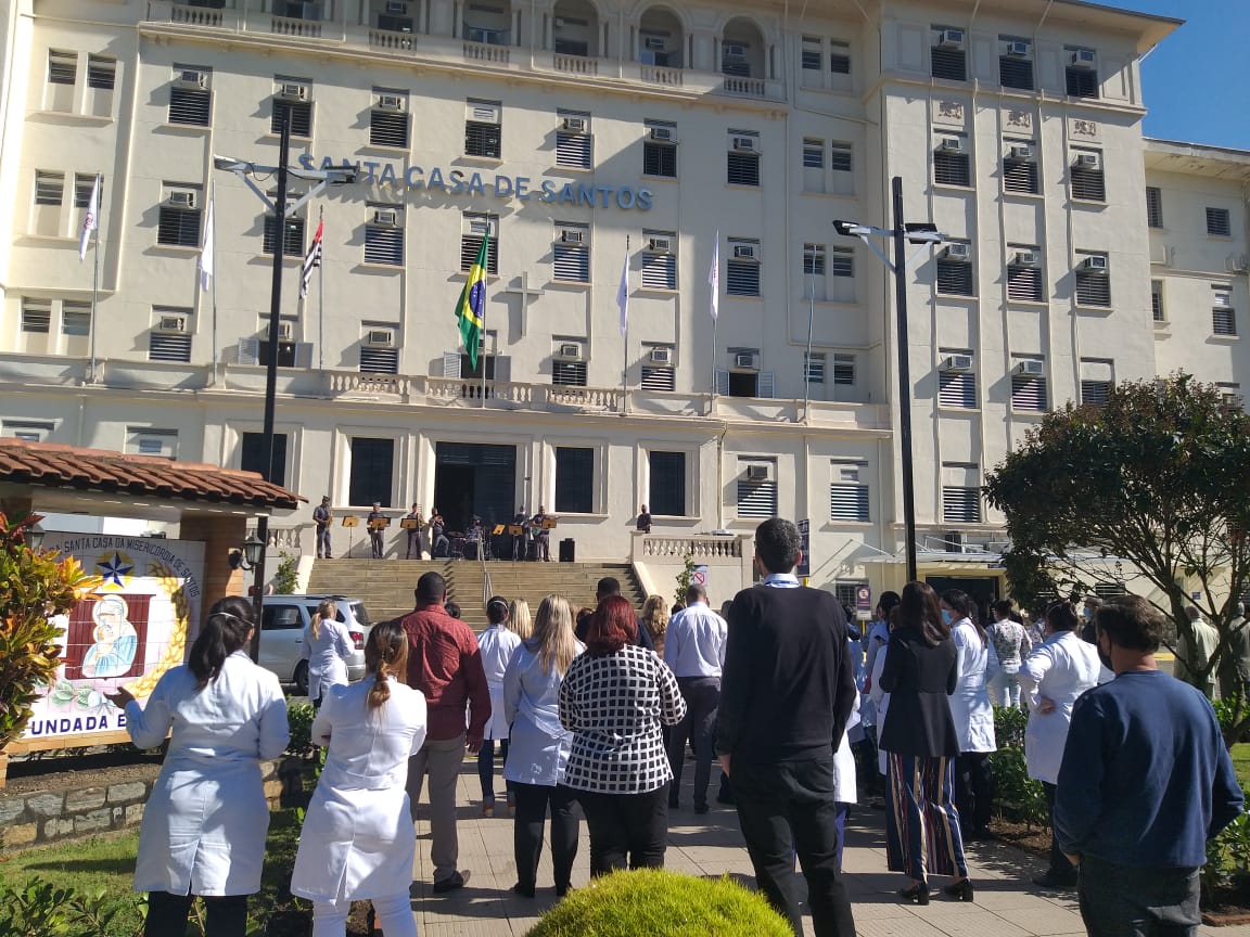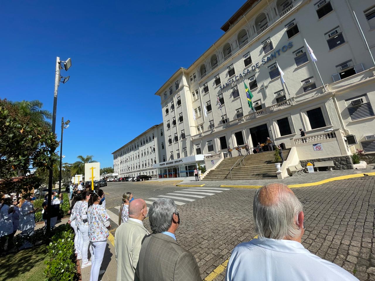 Para marcar a data, a Santa Casa de Santos convidou autoridades, membros da Mesa Administrativa e gestores, para participarem do hasteamento das bandeiras.