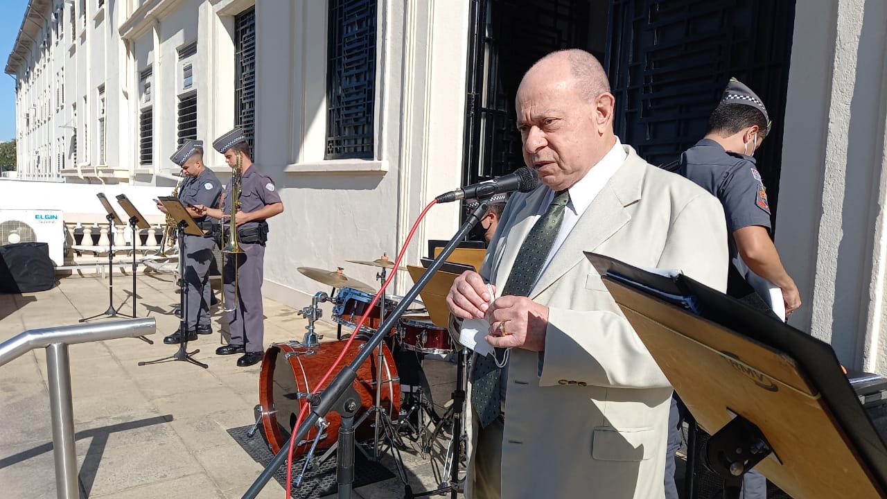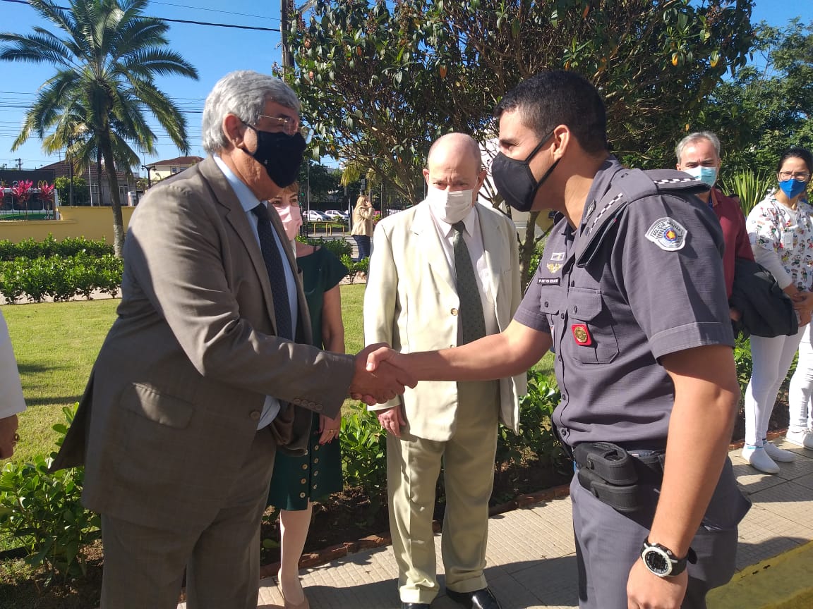 Prefeito de Santos, Rogério Santos, marcou presença para o hasteamento da bandeira, e Banda da Polícia Militar animou a programação aberta ao público.