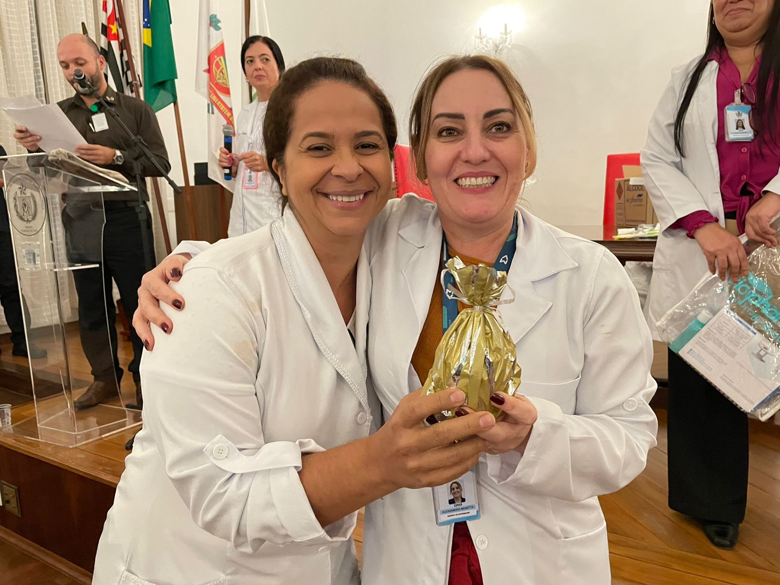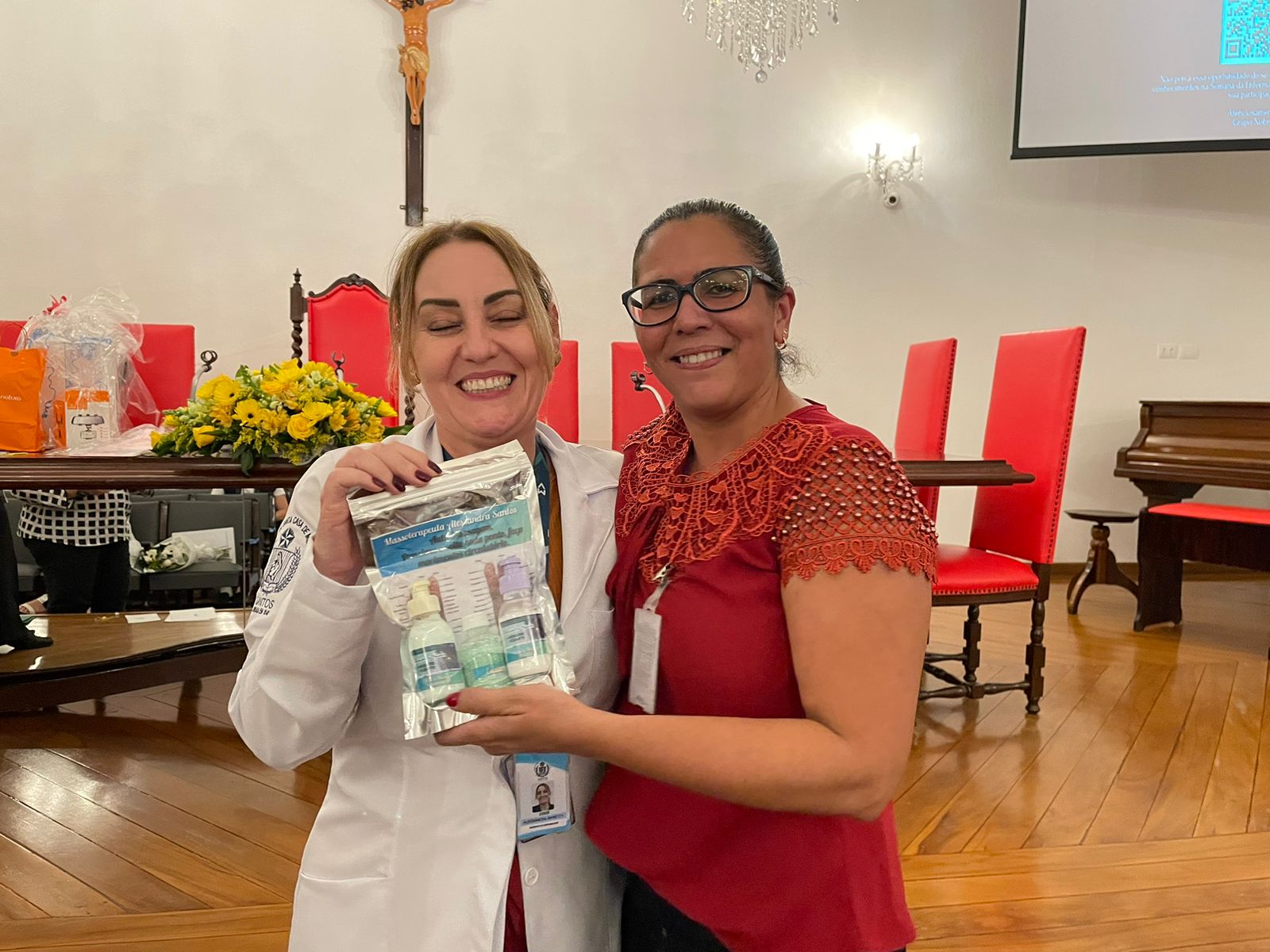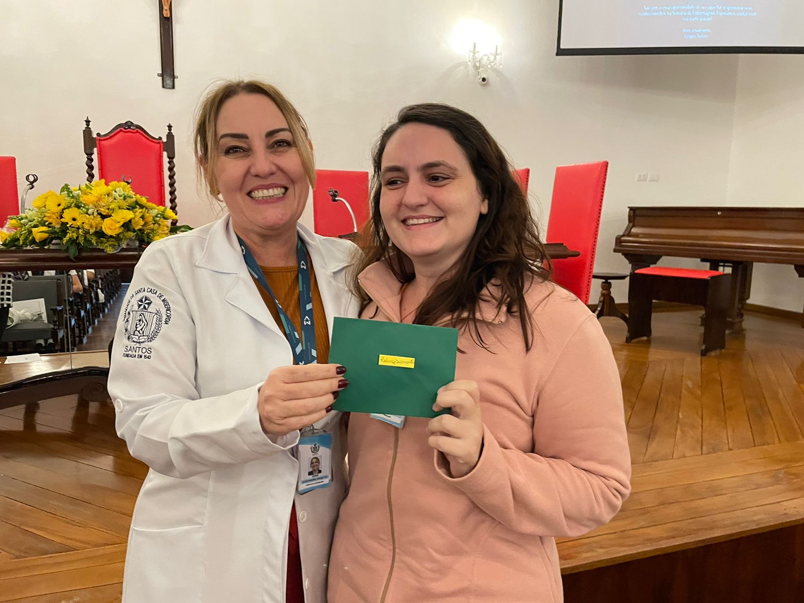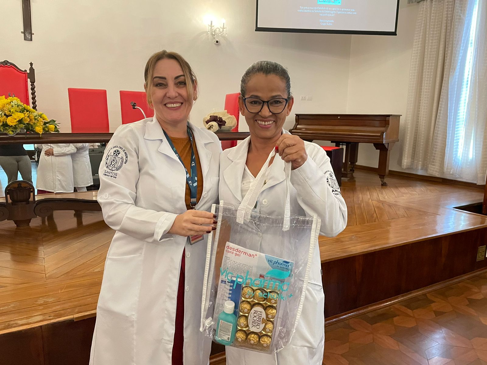 O evento do Dia da Enfermagem 2023 foi organizado pela Gerência de Enfermagem, com apoio da Santa Casa de Santos e patrocínio das empresas parceiras: Abrescas, Toca das Flores, Shopping Roque, Júlia da Natura, Alessandra Santos Massoterapeuta, Lanchonete Santa Isabel, Clínica Gestar, Canoa Havaiana Zero13 VAA, Artesanatos By Marta, VIC Pharma by Schulke, Banco Santander, AVOSC, Academia UP, Mari Rocha – Mary Kay, Clínica Pró Corpo, Recanto da Beleza, Grupo Nobre Educação, e Cacau Show.