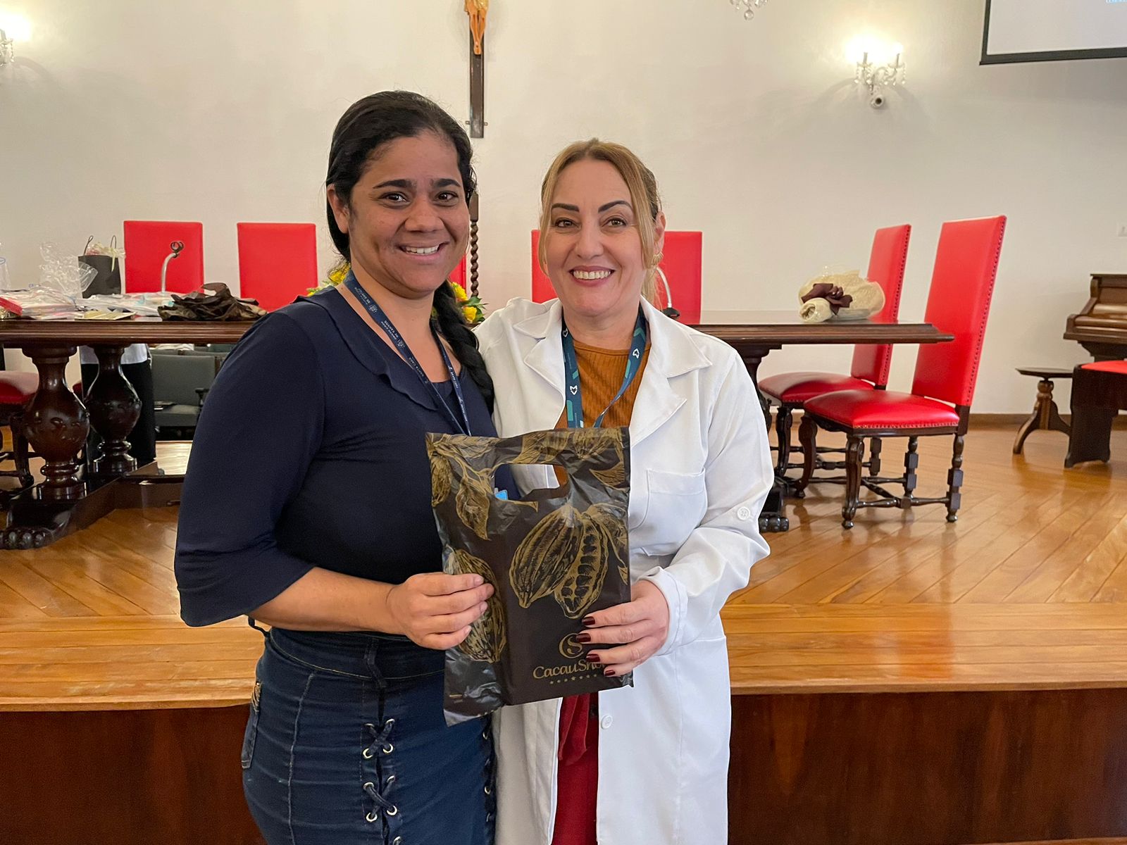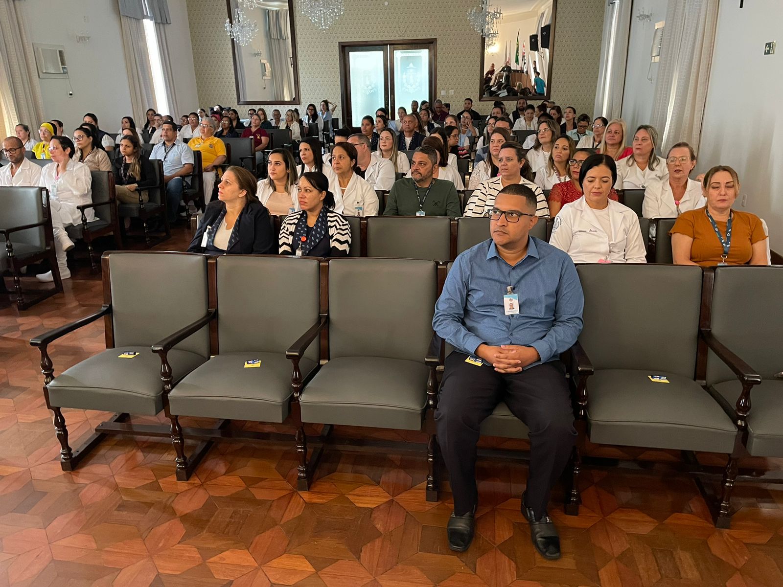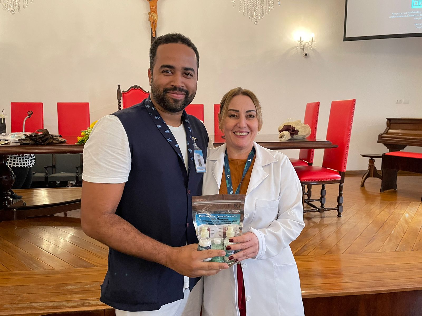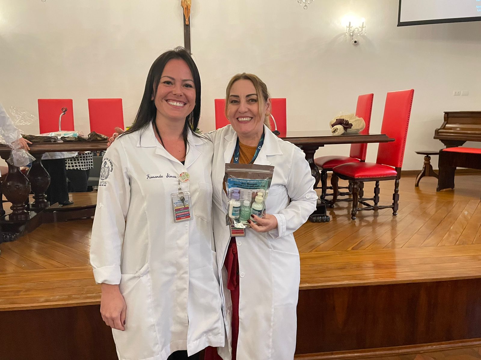 Após os discursos de abertura, a primeira palestra foi com a supervisora de Humanização do hospital, Cláudia Jacob, que abordou exatamente sobre o atendimento humanizado, e a importância de sempre dar o seu melhor, pois é sempre possível fazer um “algo a mais”, seja num gesto, uma palavra, ou uma simples “mudança na posição de uma cadeira”.