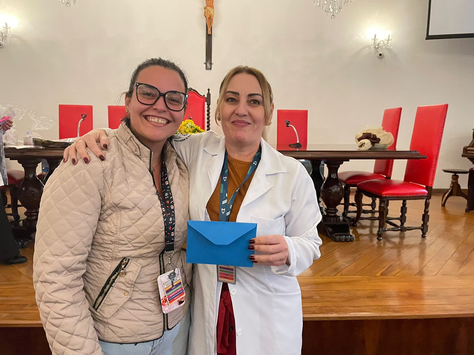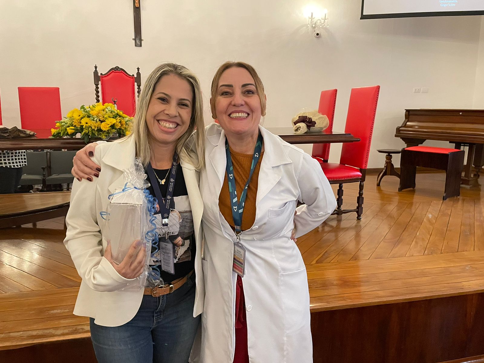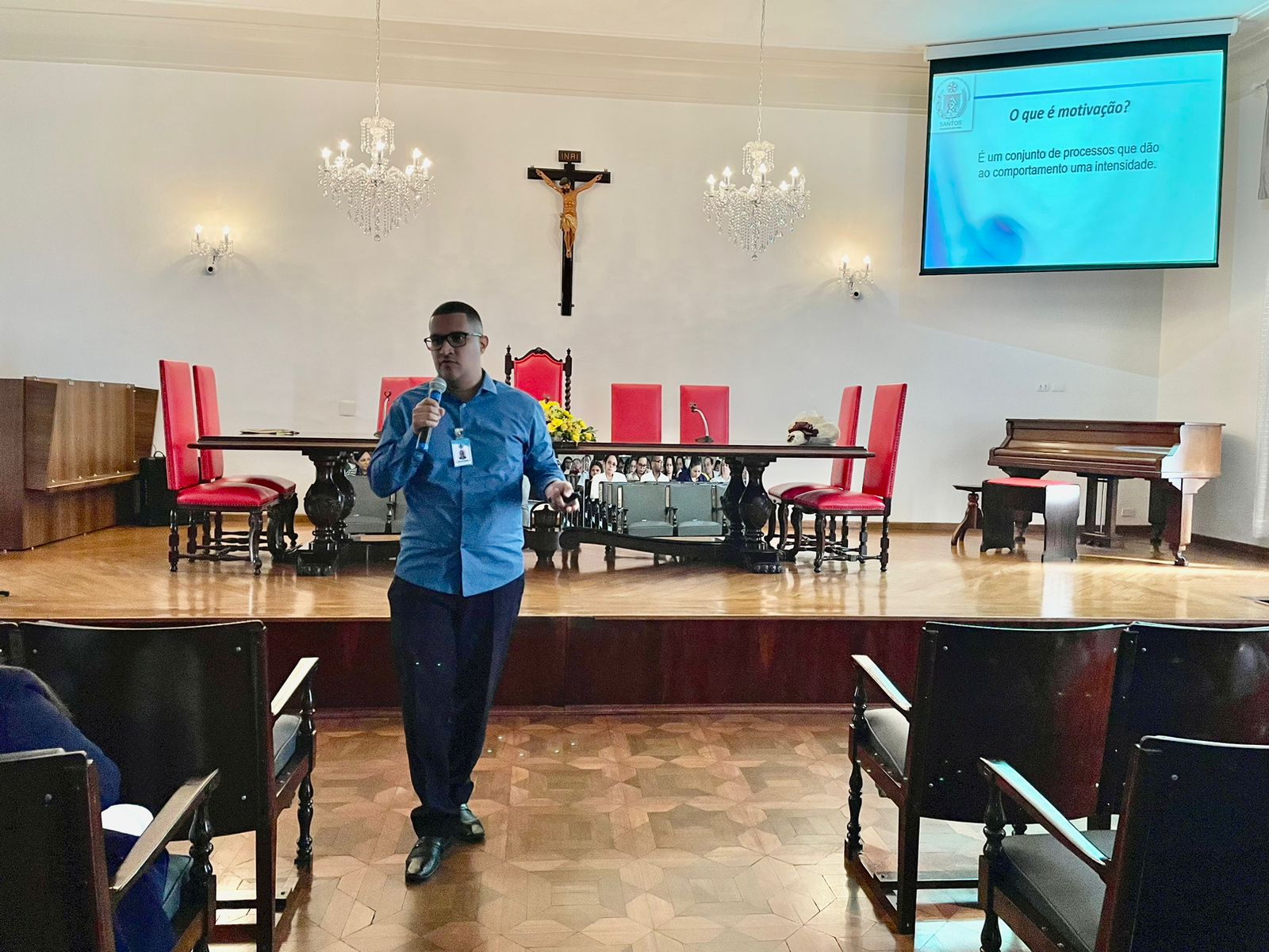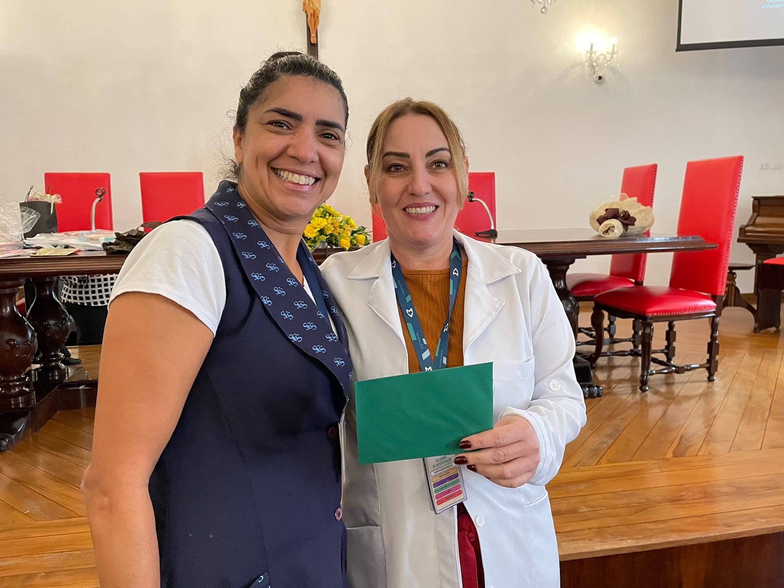 Após os discursos de abertura, a primeira palestra foi com a supervisora de Humanização do hospital, Cláudia Jacob, que abordou exatamente sobre o atendimento humanizado, e a importância de sempre dar o seu melhor, pois é sempre possível fazer um “algo a mais”, seja num gesto, uma palavra, ou uma simples “mudança na posição de uma cadeira”.