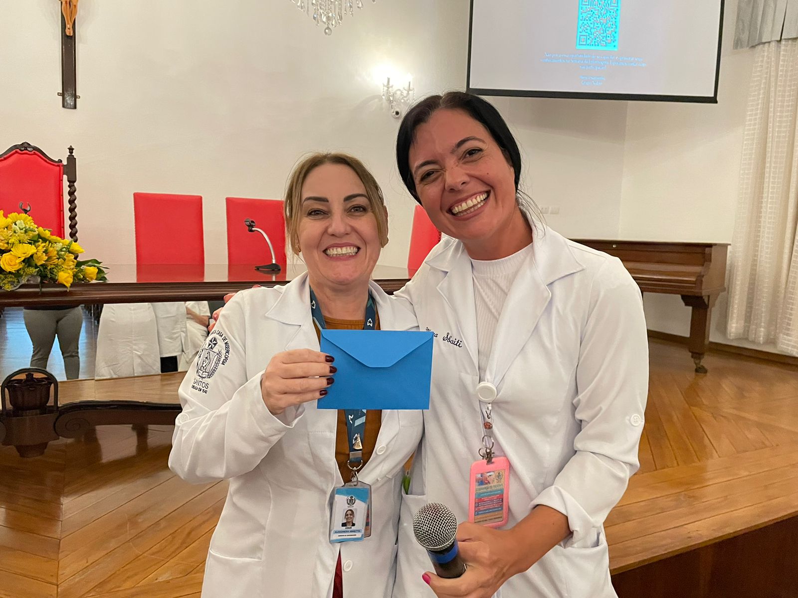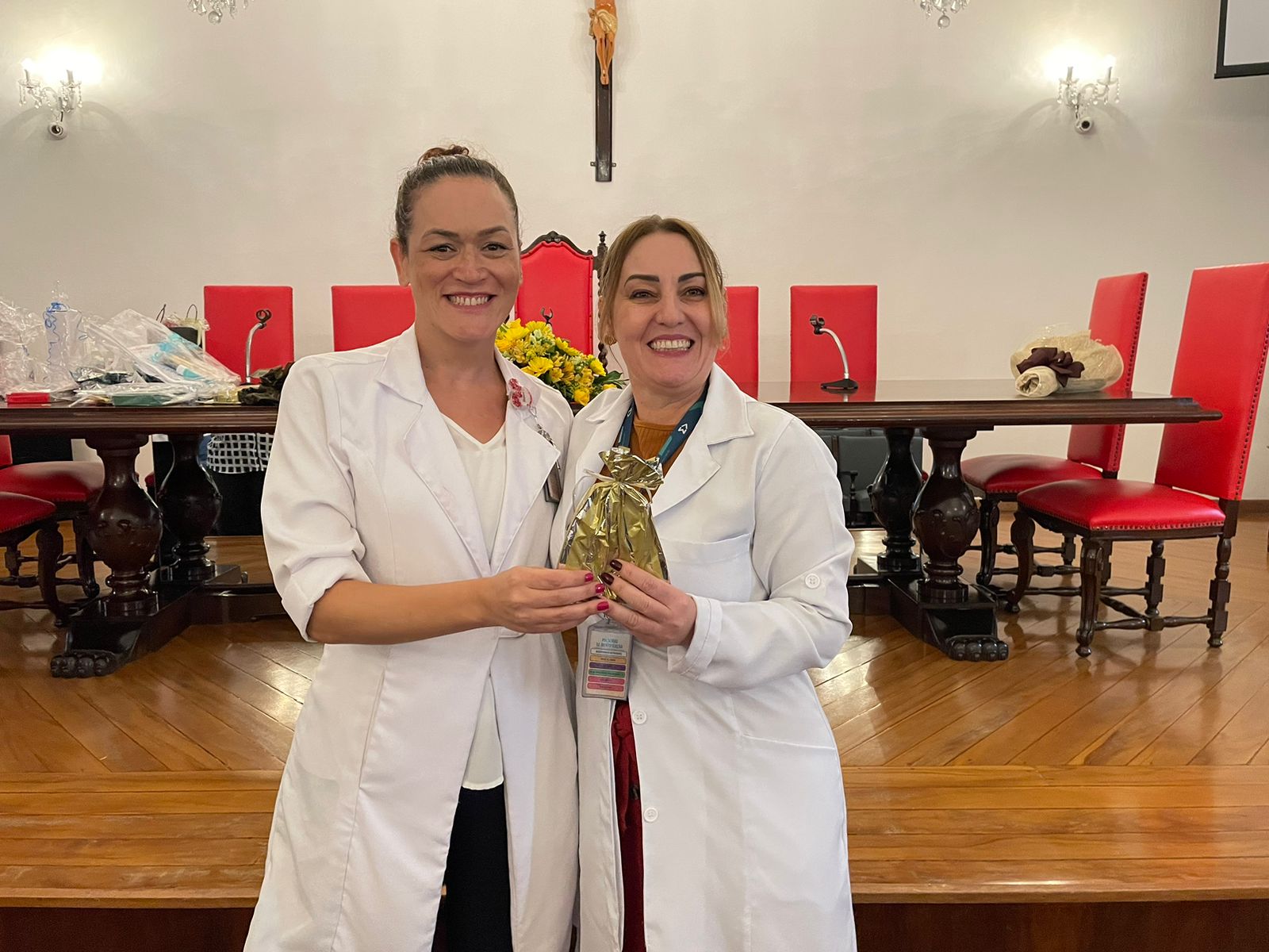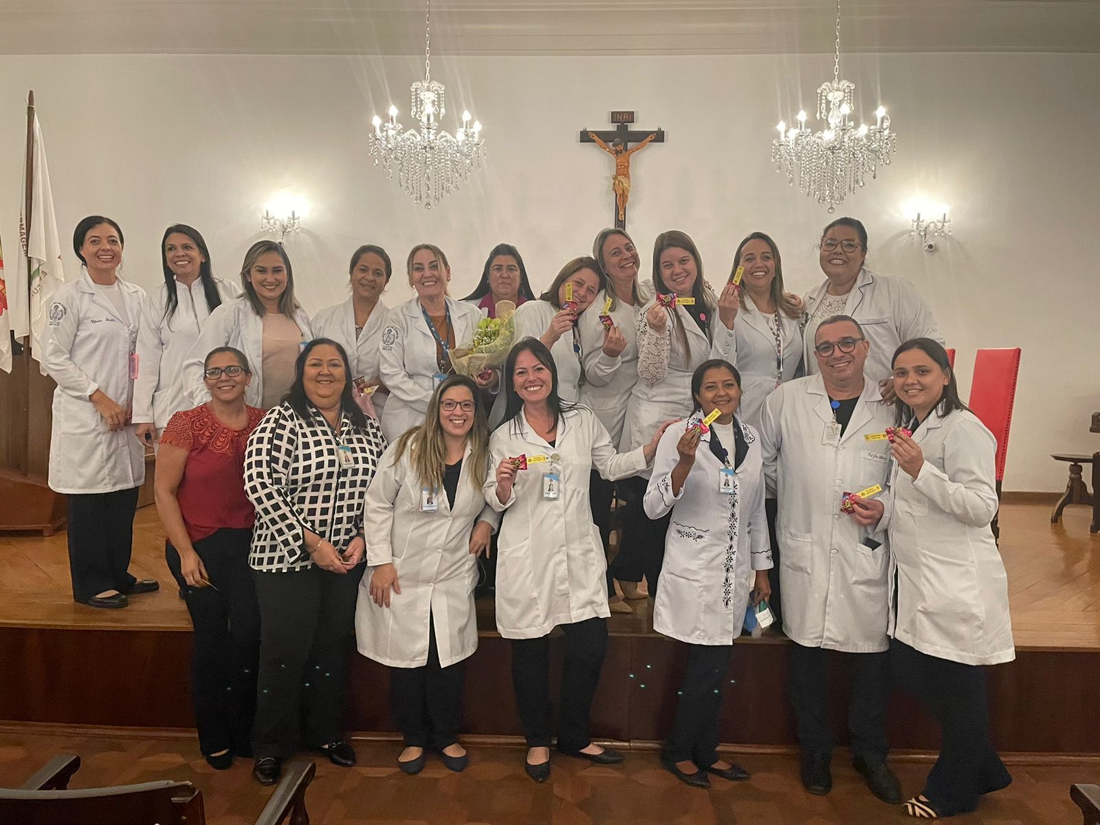No refeitório dos funcionários, o provedor Ariovaldo Feliciano fez um discurso parabenizando os profissionais de saúde e relembrou a fase crítica da pandemia, os desafios enfrentados pela equipe de enfermagem, e finalizou apresentando o vídeo de homenagem, produzido pela Comunicação da Santa Casa, que fala sobre a importância do sorriso. Assista: https://youtu.be/uETrlw-rmgY