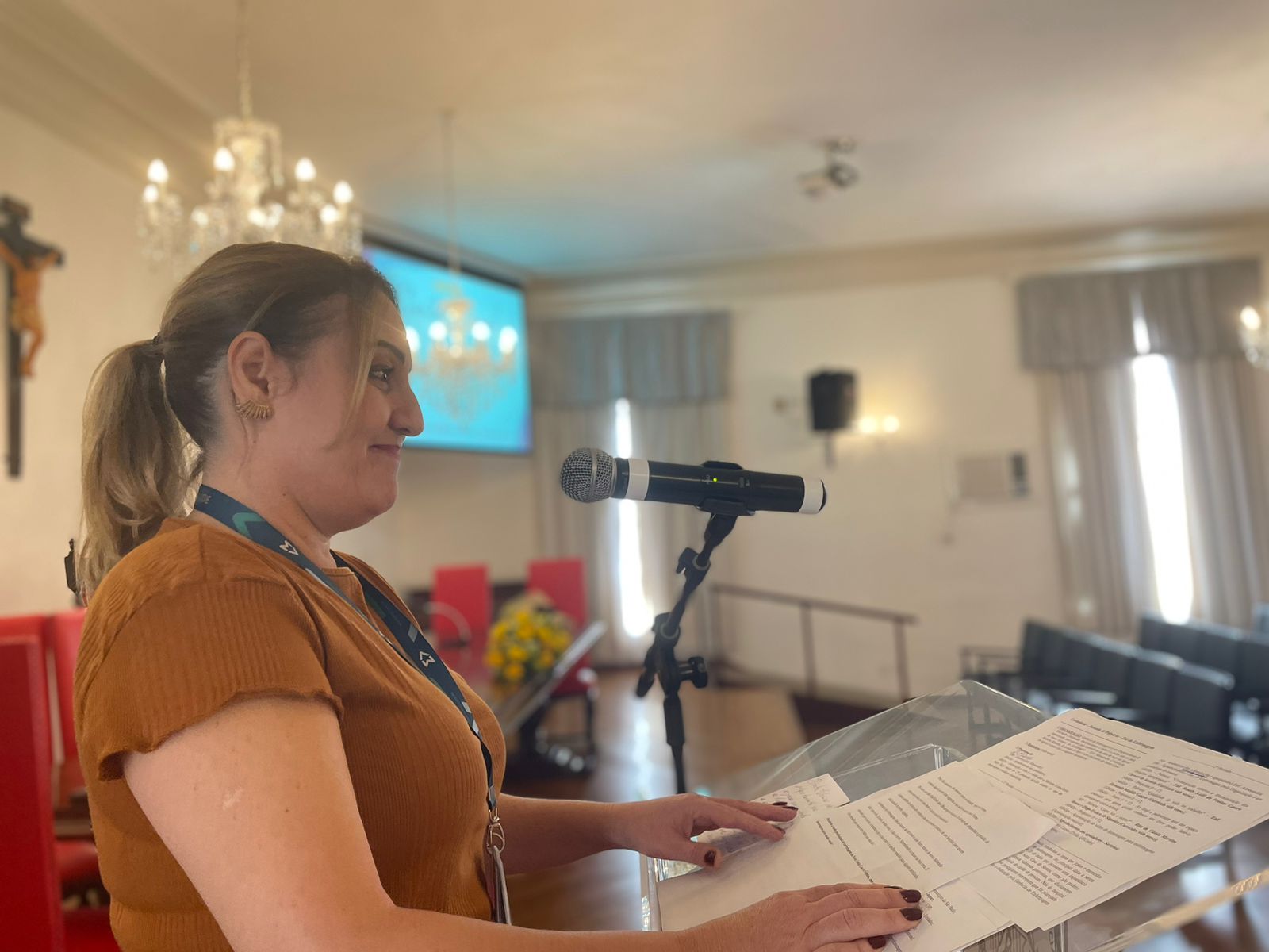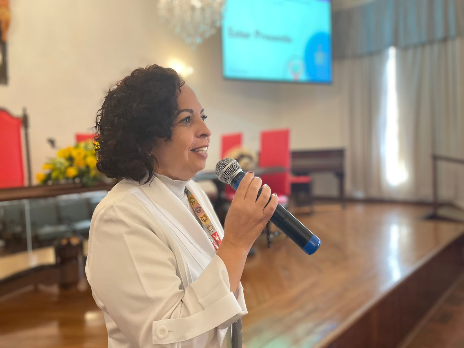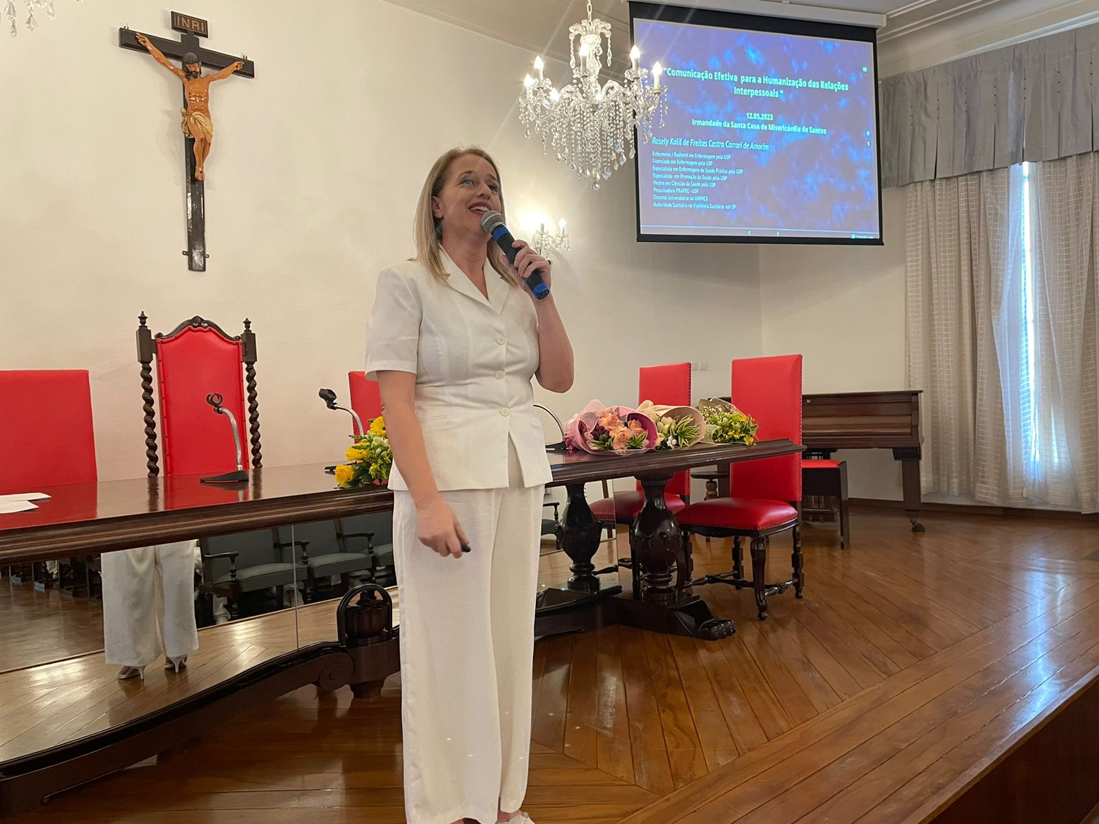 Retomando a programação do consistório, no período da tarde foi a vez da enfermeira convidada, Rosely Kalil de Freitas Castro Carrari de Amorim, falar sobre “Comunicação Efetiva e Humanização das Relações Interpessoais”, que destacou sobre a expressão corporal, pois o corpo fala com gestos e emoções, e a comunicação não se limita ao “falar”.