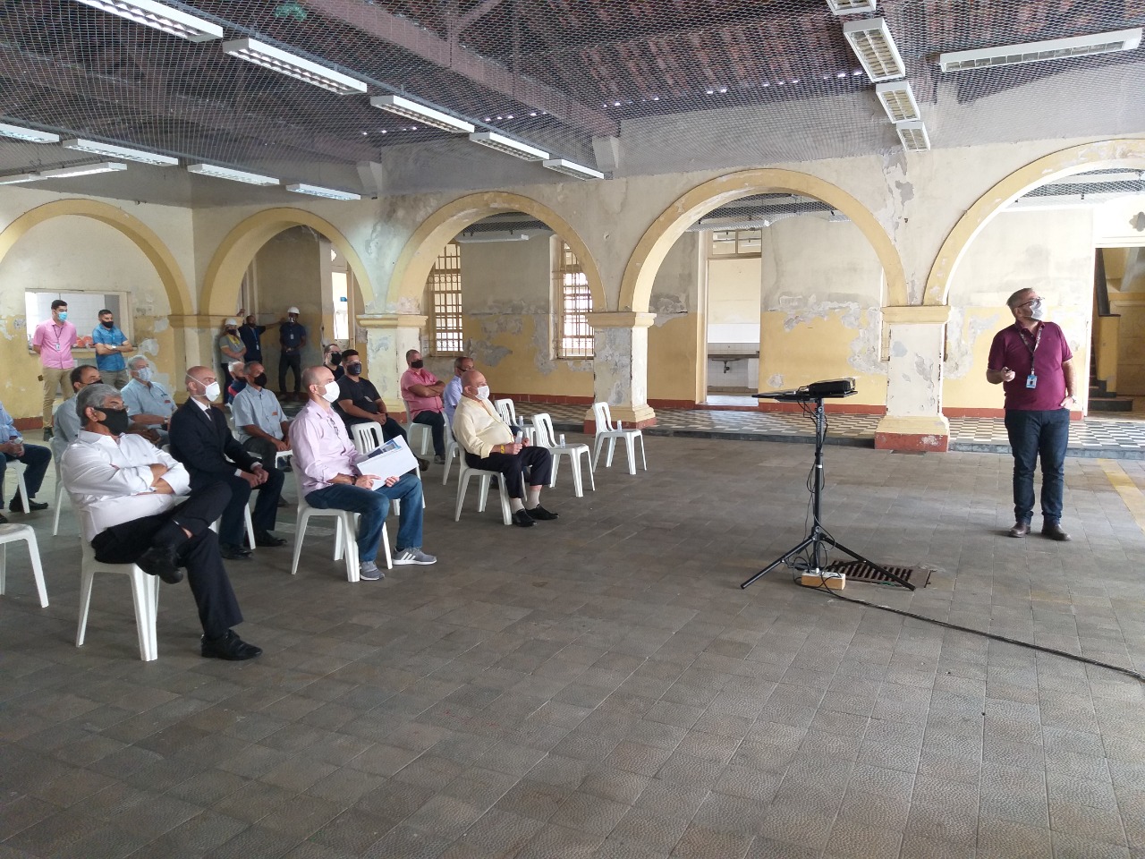 A visita do Promotor aconteceu a convite do provedor, e teve início com uma apresentação de registros fotográficos mostrando as condições de degradação e abandono que a equipe da Santa Casa de Santos encontrou o imóvel, na ocasião em que o Estado fez a entrega das chaves, em agosto de 2019. A explanação foi feita pelo superintendente Augusto Capodicasa, que lembrou a quantidade de entulho retirado, após um trabalho forte realizado pelo mutirão de funcionários do hospital. “Foram retiradas cerca de 300 caçambas de entulho e vegetação”.