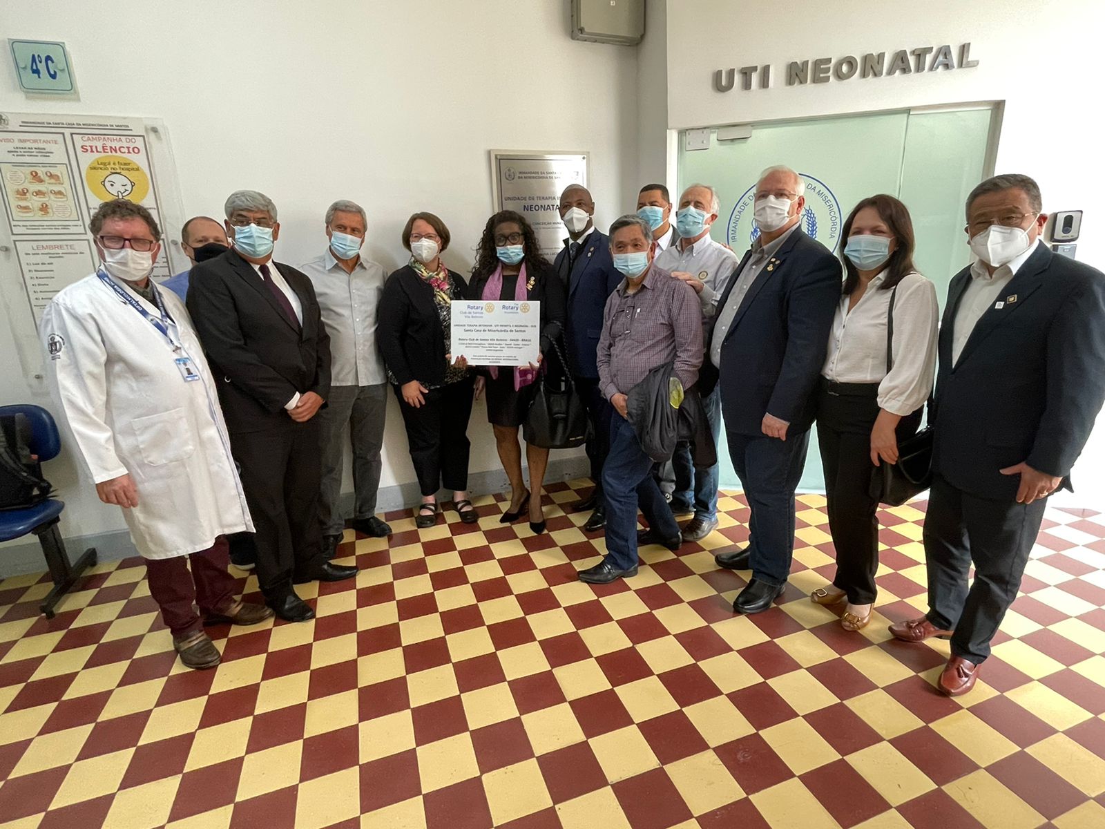 Após a reunião, o vice provedor e diretor clínico acompanharam os rotarianos em visita pelo hospital, passando pela sala de espera do Centro Cirúrgico, Centro Robótico, UTI Pediátrica e UTI Neonatal, onde os membros do Rotary fixaram uma placa de menção a todos os envolvidos que participaram da doação dos equipamentos.