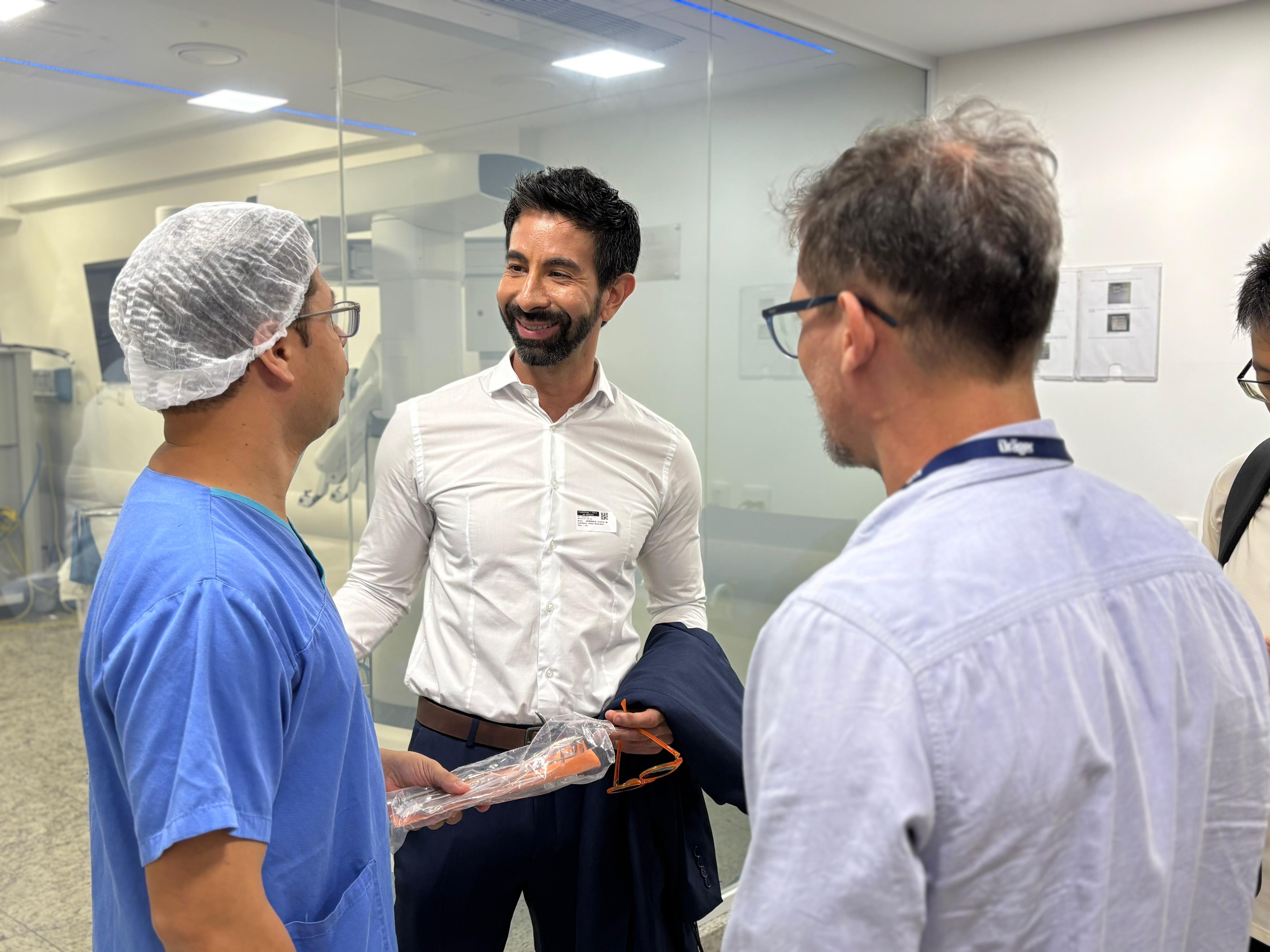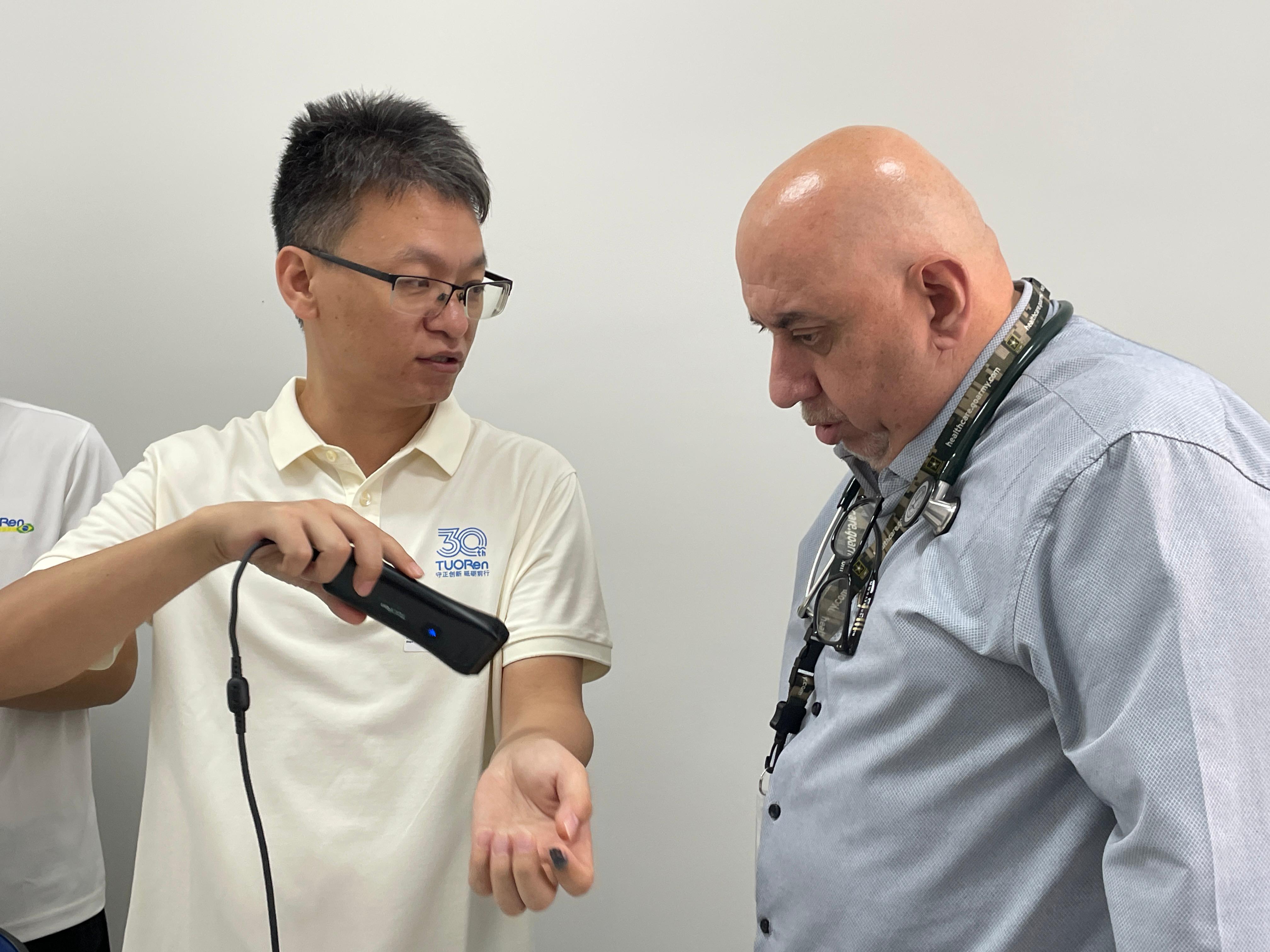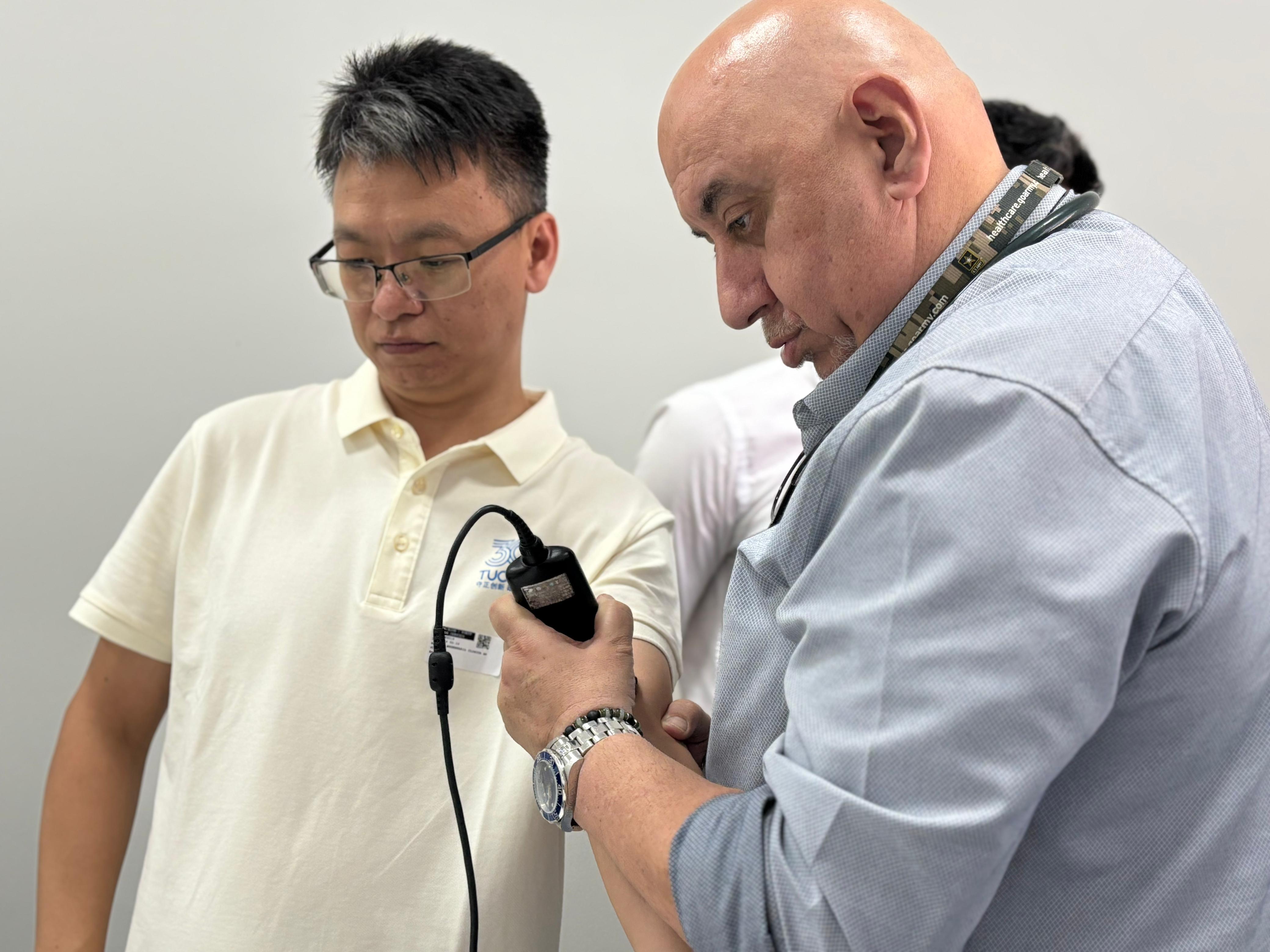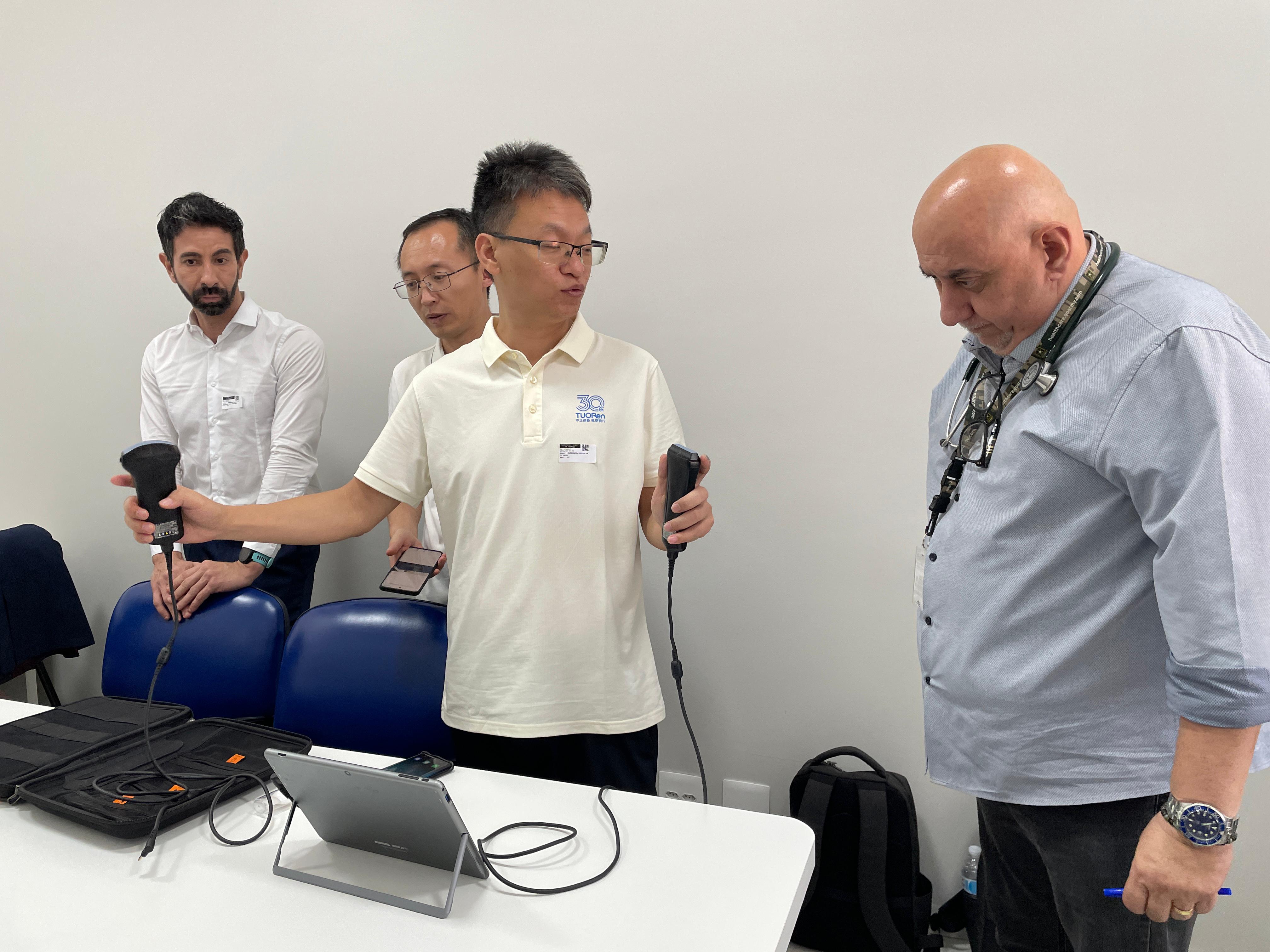 Ainda na visita, Zhang e Yao apresentaram o produto para os anestesistas da instituição, destacando a praticidade, facilidade e agilidade que o aparelho em questão promove para procedimentos cirúrgicos - "Com este aparelho o médico pode rastrear qualquer anormalidade durante o procedimento cirúrgico, além de ter uso também para o dia a dia das enfermarias do hospital", destacou Zhang Yu.