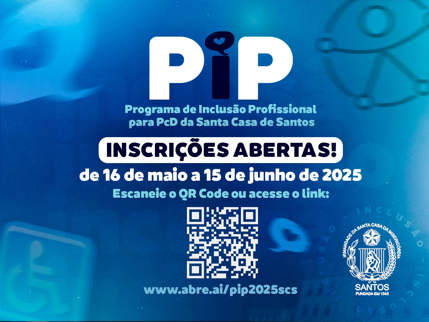 A Santa Casa de Santos está com vagas abertas para o PIP - Programa de Inclusão Profissional para PcD de 16/05/2025 até o dia 15/06/2025. Podem se inscrever as pessoas com deficiência (com laudo) maiores de 18 anos, e que estejam fora do mercado de trabalho. Será realizada triagem dos candidatos, com atenção aos pré-requisitos exigidos.