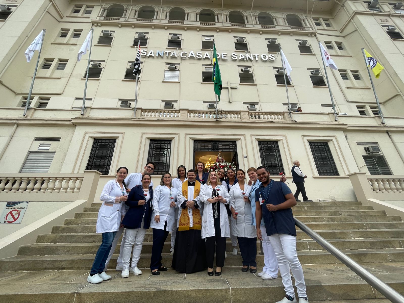 O Dia de Santa Isabel, padroeira das Santas Casas, foi celebrado com programação especial na Santa Casa de Santos, seguindo a tradição da instituição. Às 9h, o público se reuniu em frente às escadarias para o Hasteamento das Bandeiras e prestigiar a Banda Regimental de Música do CPI 6, que fez uma excelente apresentação com repertório de MPB e animou todos os presentes.
