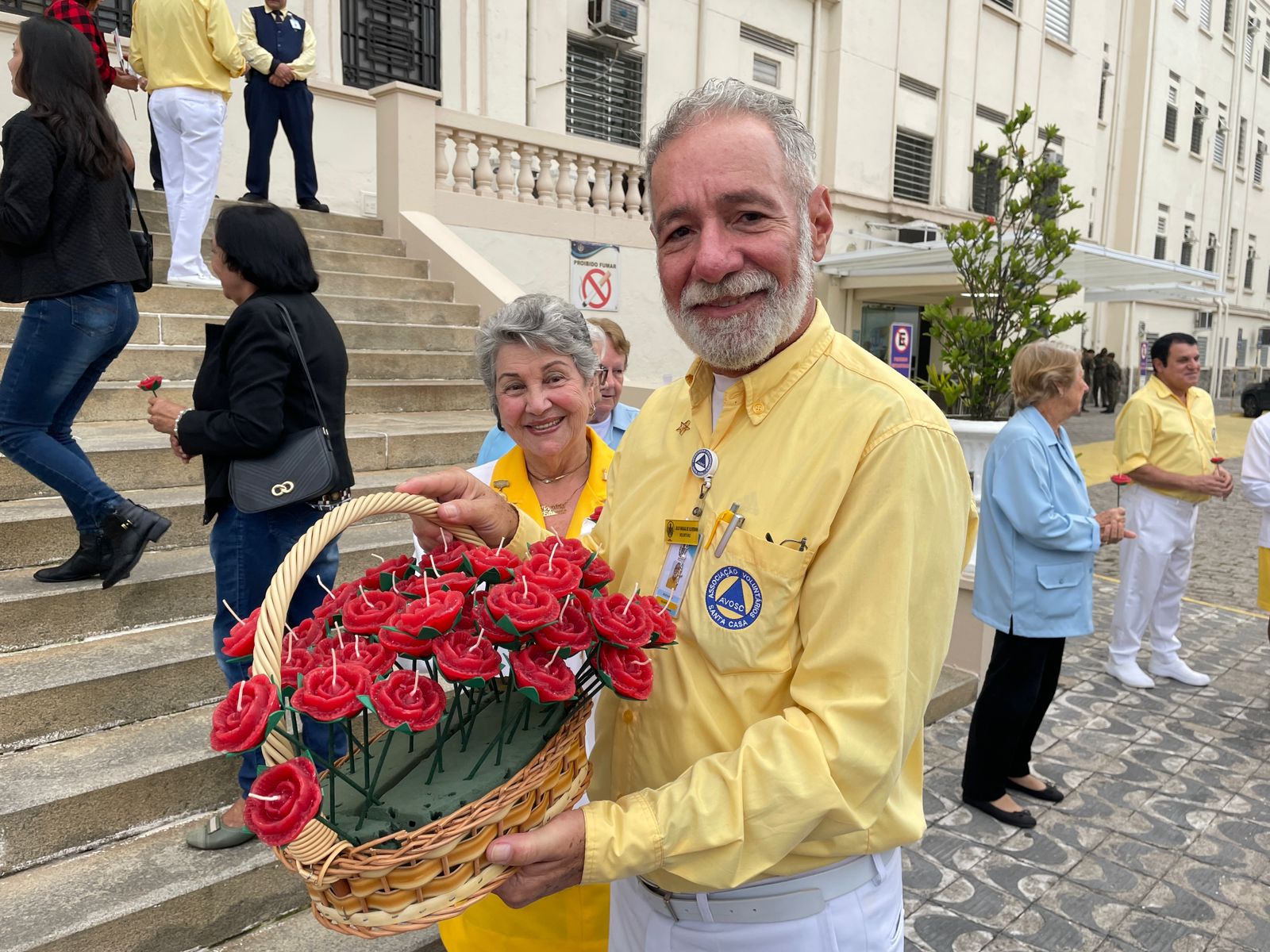 No período da tarde, os voluntários fizeram a distribuição de rosas aos enfermos e, às 16h30, aconteceu a procissão luminosa, saindo da frente da Santa Casa de Santos rumo à Capela Santa Isabel.