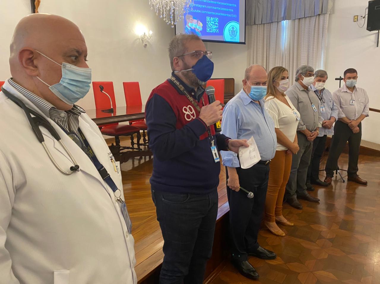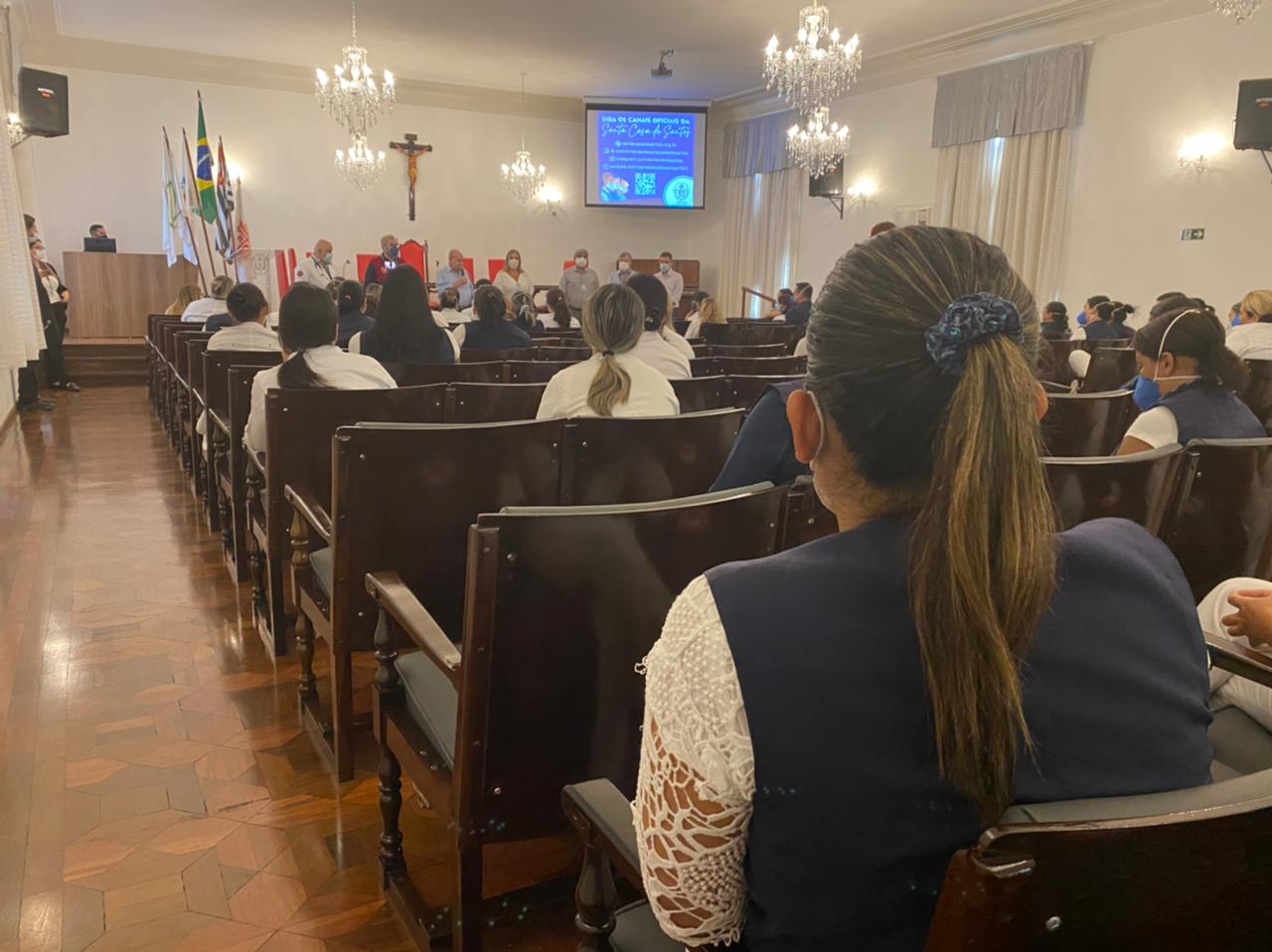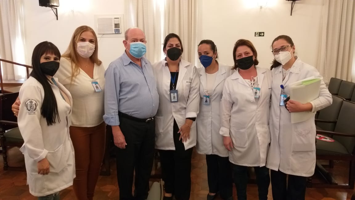 Para completar o sucesso da Semana da Enfermagem, nesta sexta, dia 21 de maio, o provedor Ariovaldo Feliciano reuniu a equipe de enfermeiros da Santa Casa de Santos para fazer o importante anúncio que, neste primeiro momento, contempla a categoria – a implantação do plano de cargos e salários para enfermeiros, investindo na remuneração do pessoal, e incentivando a qualificação dos profissionais.