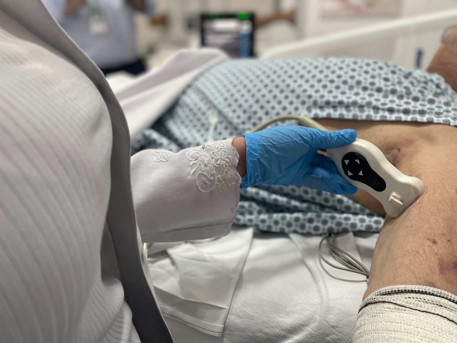 A primeira passagem de PICC 3CG aconteceu no dia 10/12/24, e foi realizada pela Enfª. Noely Costa e Enfª. Christiane Shiozaki, do Núcleo de Acessos da Santa Casa, com o apoio do representante da empresa CBS, distribuidora do aparelho Sherlock, Enfº. Jessé Silva.