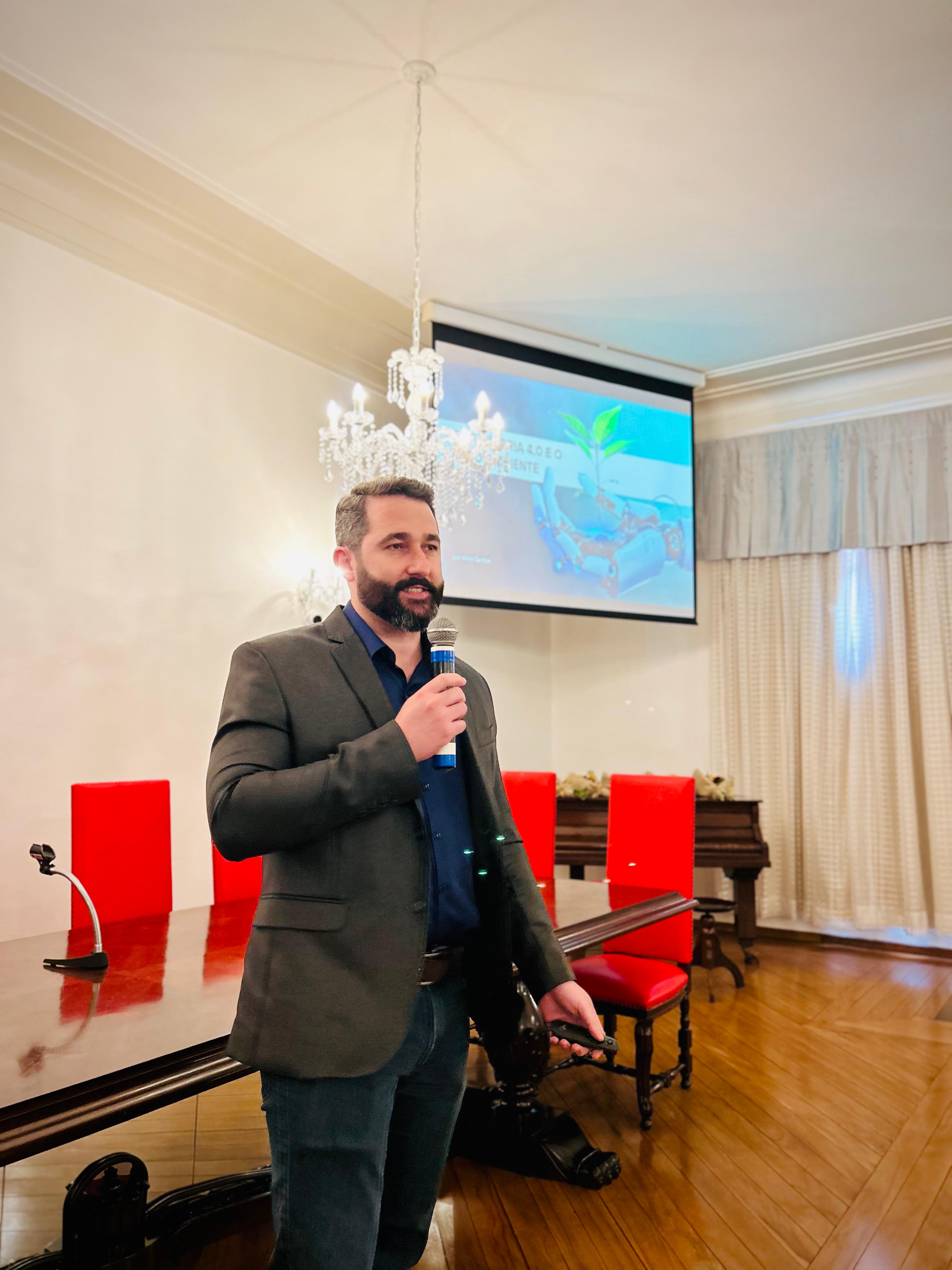 O palestrante convidado, Almir Santos, Diretor Executivo da UTD Suzano, trouxe uma análise aprofundada sobre a Engenharia 4.0 e Meio Ambiente, abordando temas como Big Data, realidade aumentada, impressão 3D, manufatura aditiva, computação em nuvem, cyber segurança, Internet das Coisas e robôs autônomos. Ele também destacou aplicações concretas da Engenharia 4.0 nos hospitais, como sistemas inteligentes de gestão de energia e climatização, robôs autônomos, RFID e Digital Twin.