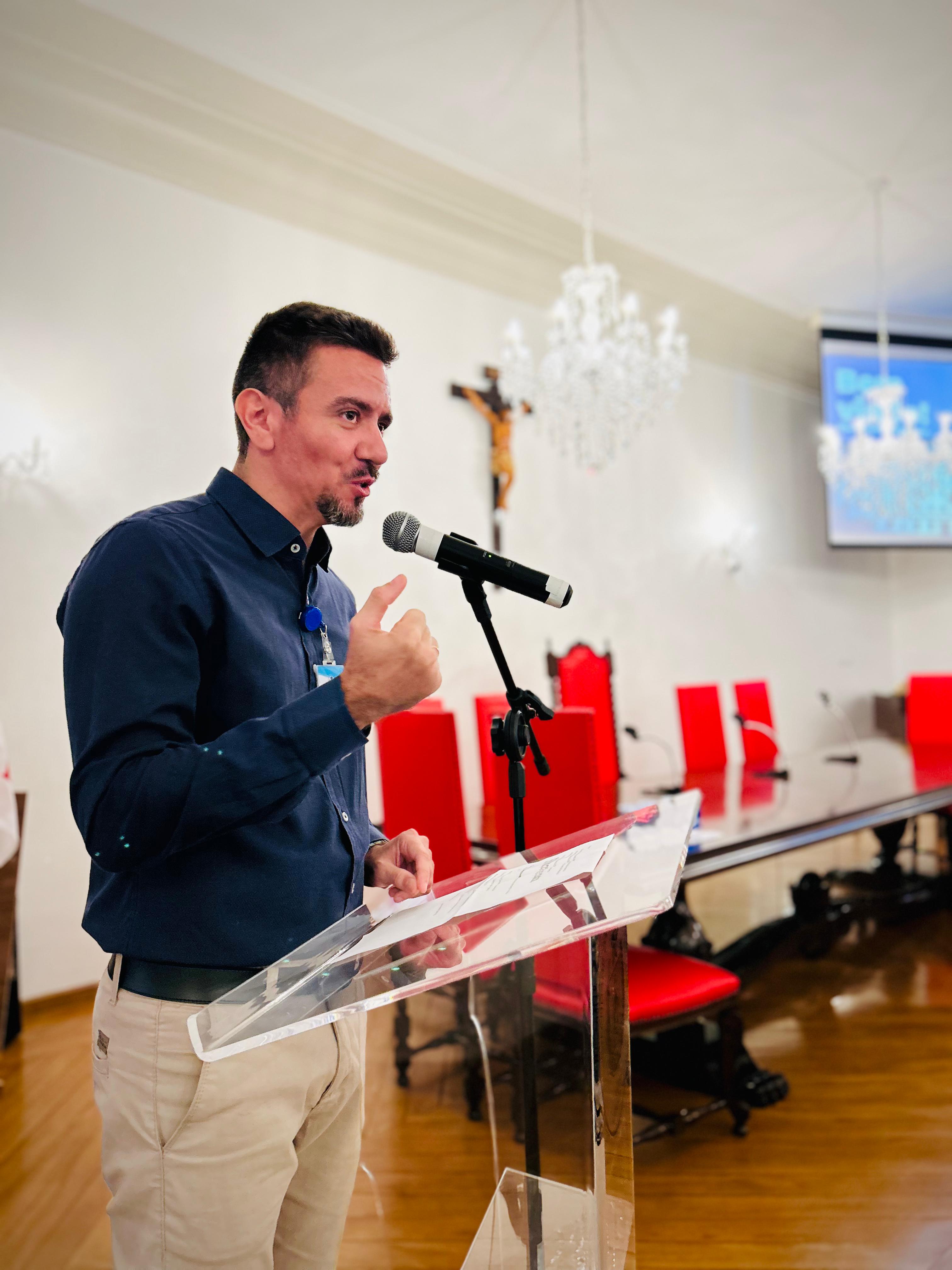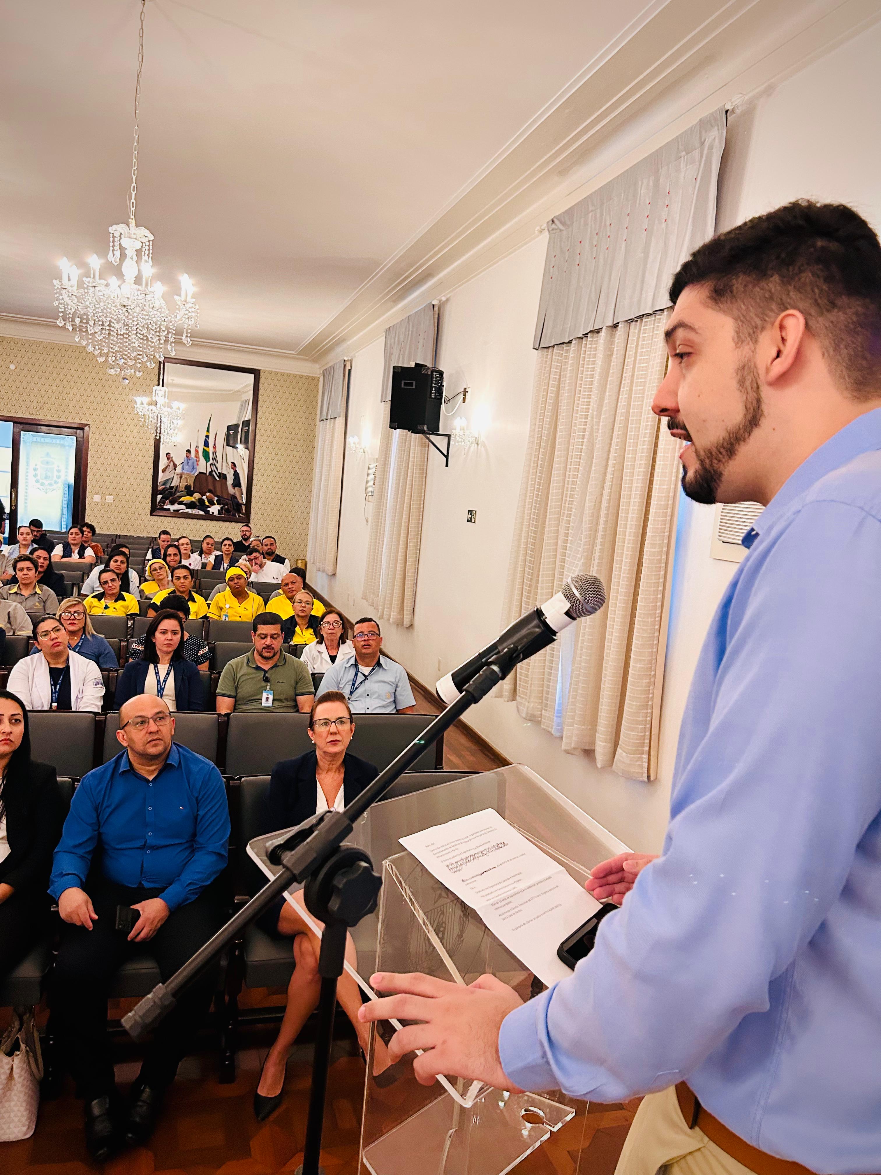 O evento teve início com a apresentação do mestre de cerimônias Luiz Lima do Departamento de Recursos Humanos, seguida pelo discurso de boas-vindas do Diretor de Infraestrutura e Apoio, Bruno Dantas, reforçando o compromisso da instituição com o desenvolvimento sustentável na área da saúde.