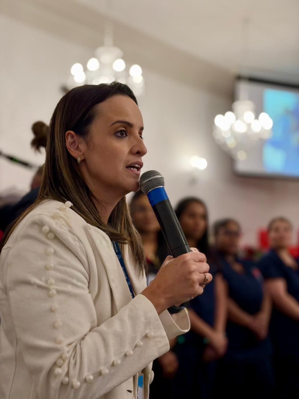 Na sequência, a gestora da Enfermagem, Enfª. Rita Rocha, deu as boas-vindas ao público e ressaltou a importância das boas práticas de enfermagem no dia a dia da assistência. Rita enfatizou ainda que cursos, treinamentos e simpósios ampliam competências, fortalecem a atuação profissional e impactam diretamente na qualidade do cuidado prestado.
