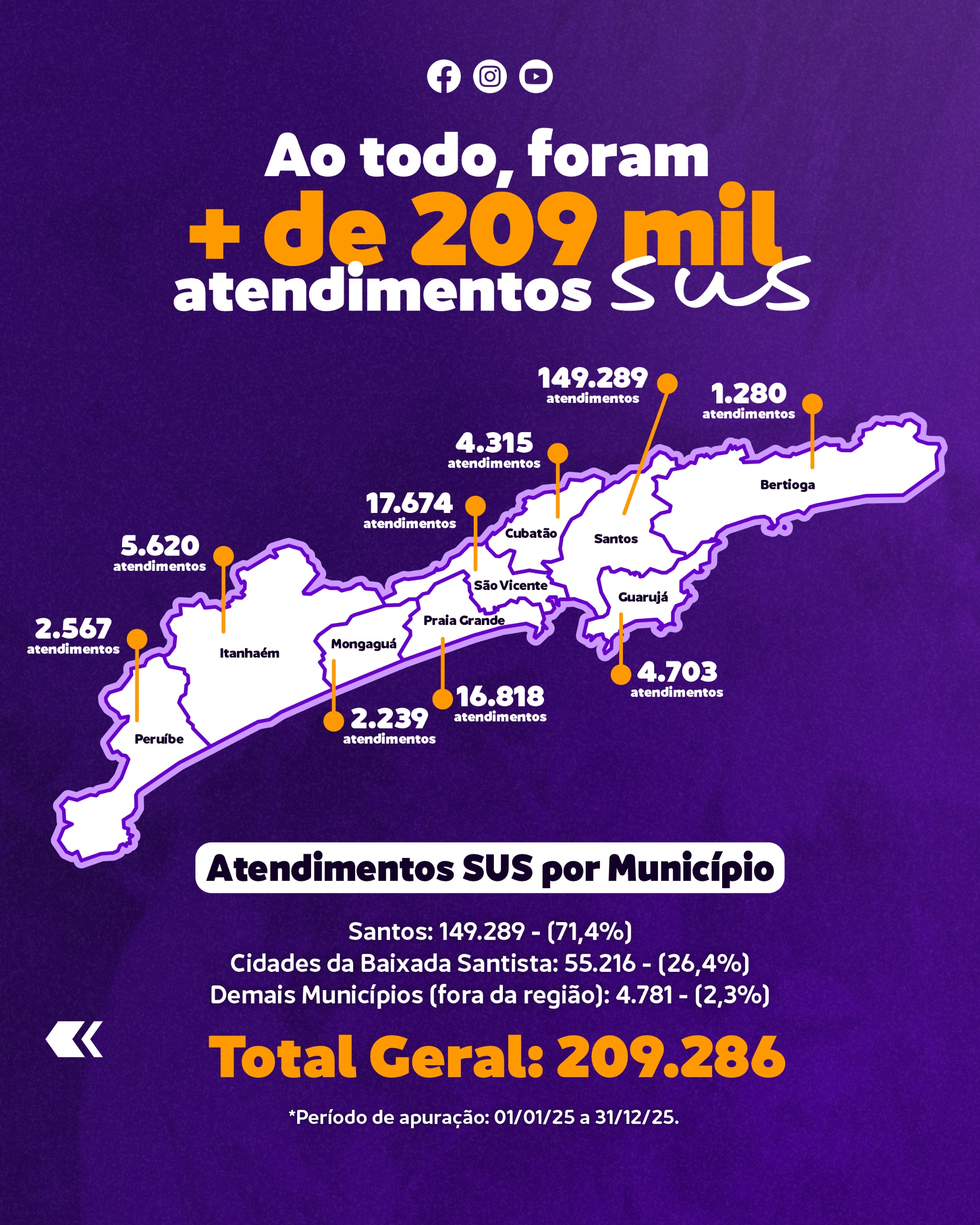 Total de atendimentos SUS em 2025: 209.286