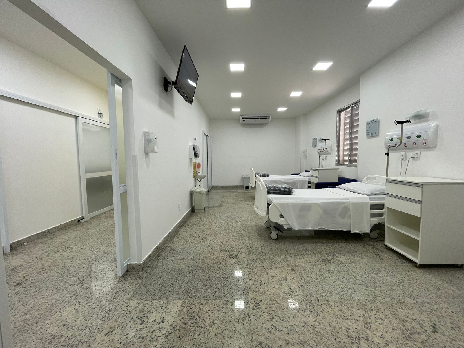 Para o atendimento de qualidade da equipe assistencial e multiprofissional, a unidade também conta com sala de procedimentos e medicações, vestiários masculino e feminino, além de copa, rouparia, arsenal e posto de enfermagem.
