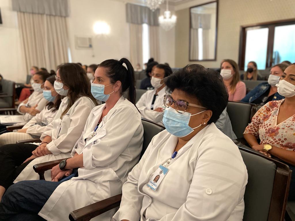 O evento foi organizado pela Coordenação de Ensino e Centro Integrado de Humanização em parceria com a APAE Santos. Marcaram presença: a presidente da CCQ e esposa do provedor, Srª. Eliana Lopes Feliciano, e a Drª. Rosilene Morales, da Diretoria Clínica.