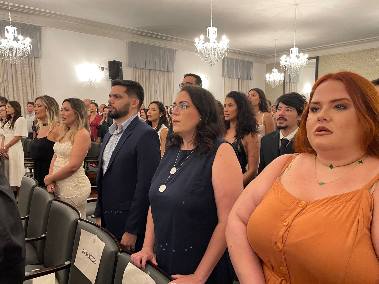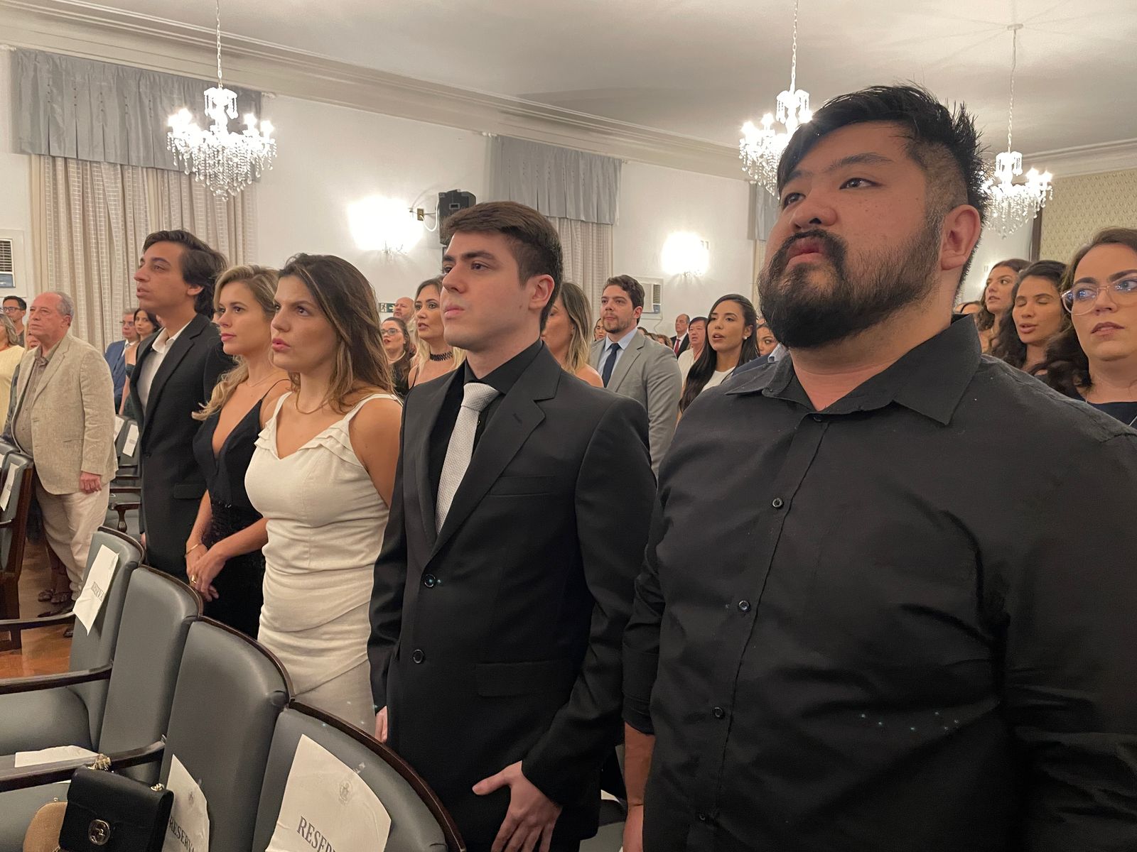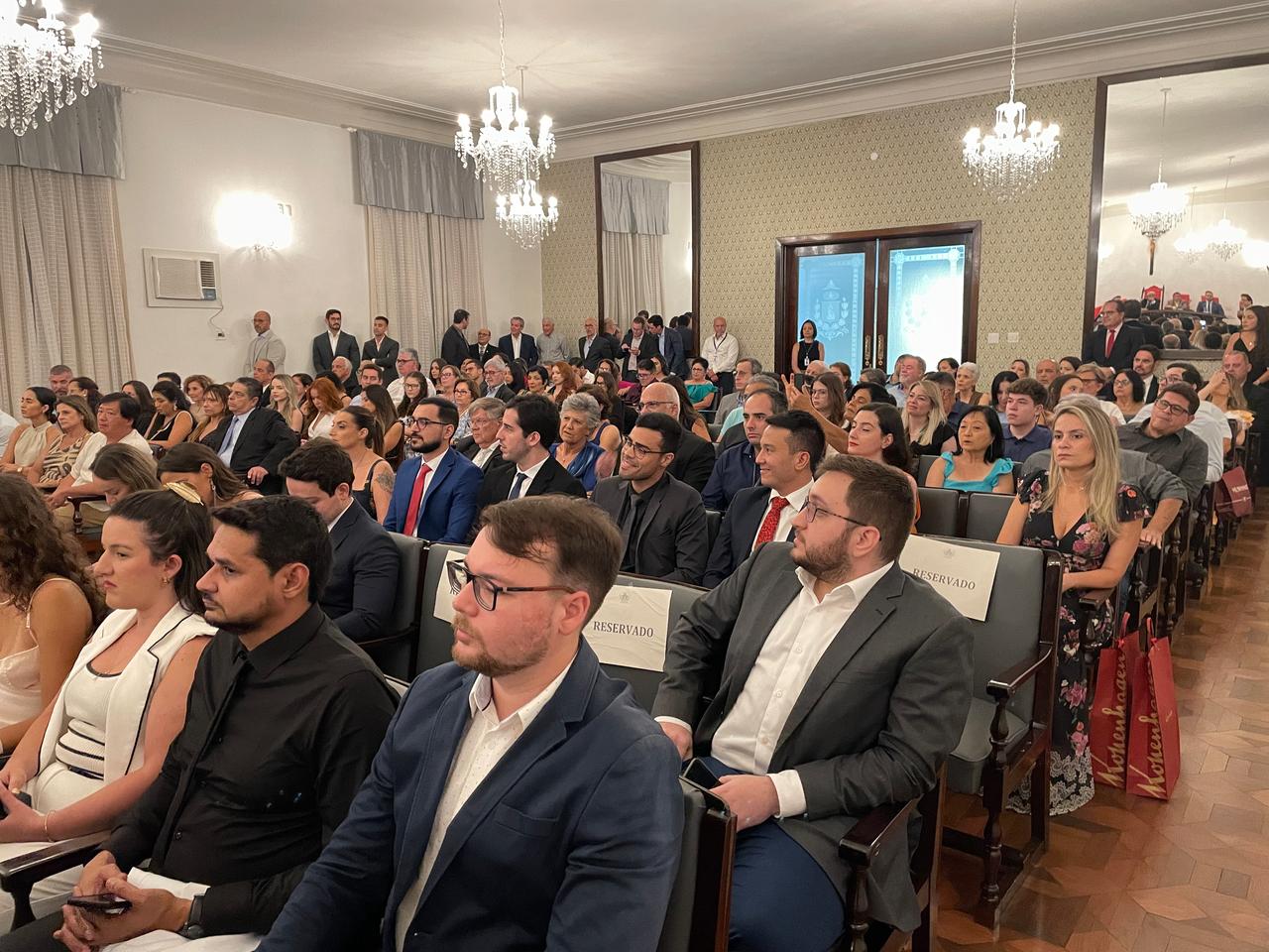 O professor convidado e preletor Dr. Fábio Peluzo Abreu fez uma apresentação breve agradecendo os profissionais de diversas especialidades que estavam recebendo o diploma. “Vocês escolheram o que querem para a vida toda, que é ajudar o próximo e manter uma relação de humanização com o paciente. É uma profissão belíssima que deve ser respeitada e vocês têm uma longa jornada muito bonita pela frente”.
