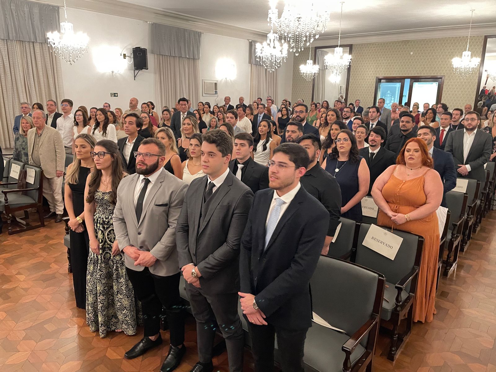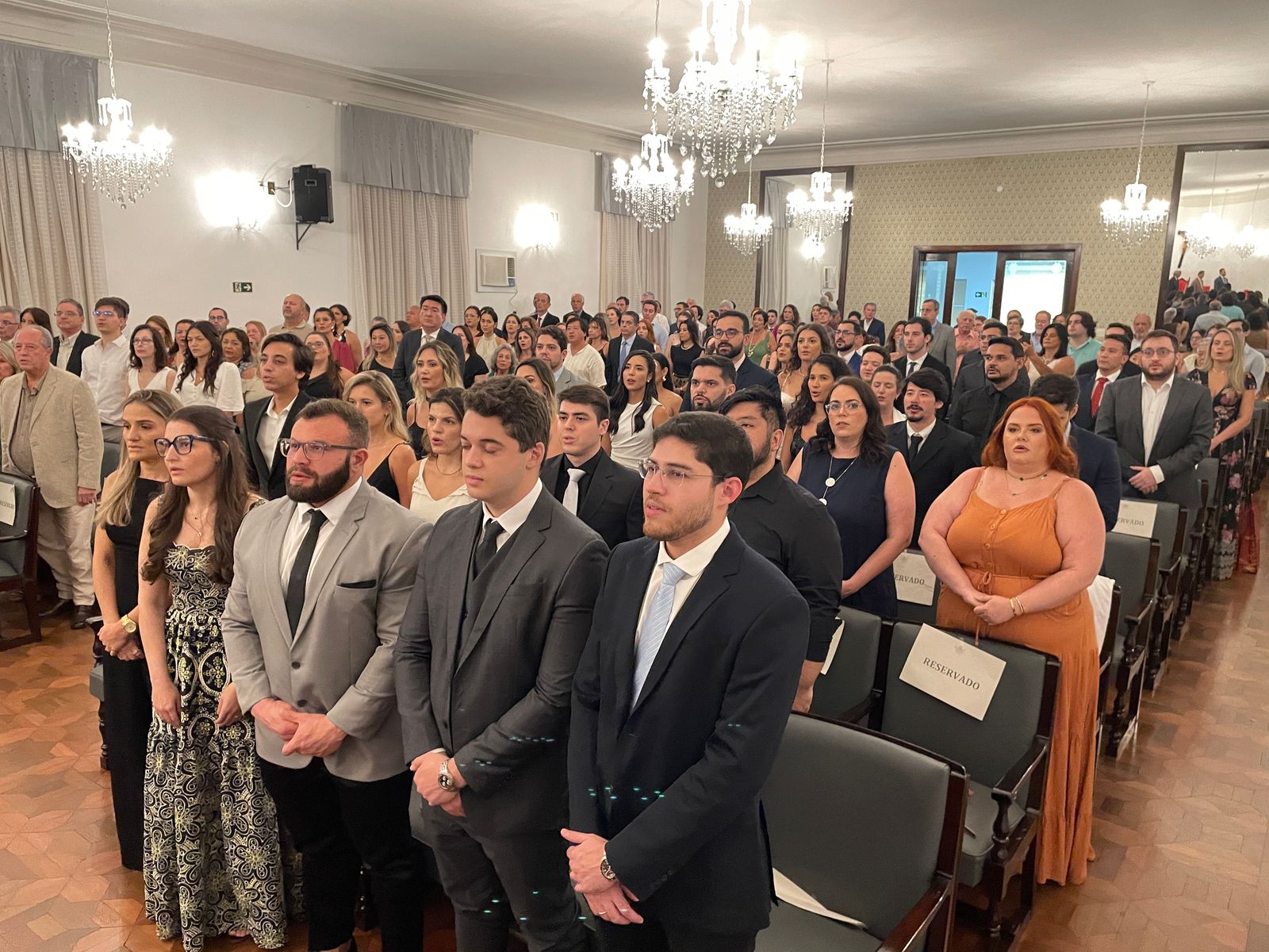 A seguir, os médicos preceptores de cada especialidade fizeram as entregas dos certificados de conclusão para os profissionais. O orador da turma foi o Dr. Matheus Bracco, que relembrou os momentos da residência. “Hoje é o início de uma etapa muito desafiadora, além da residência. Foram muitas noites em claro, dias intermináveis, mas foram nesses momentos que tivemos certeza do porquê decidimos trilhar por esse caminho. Cada obstáculo enfrentado nos fortaleceu. Em nome da turma, agradecemos todos os nossos professores e mentores que nos guiaram quando mais precisamos. A medicina é uma arte, que não exige apenas habilidade técnica, mas também humanidade”.