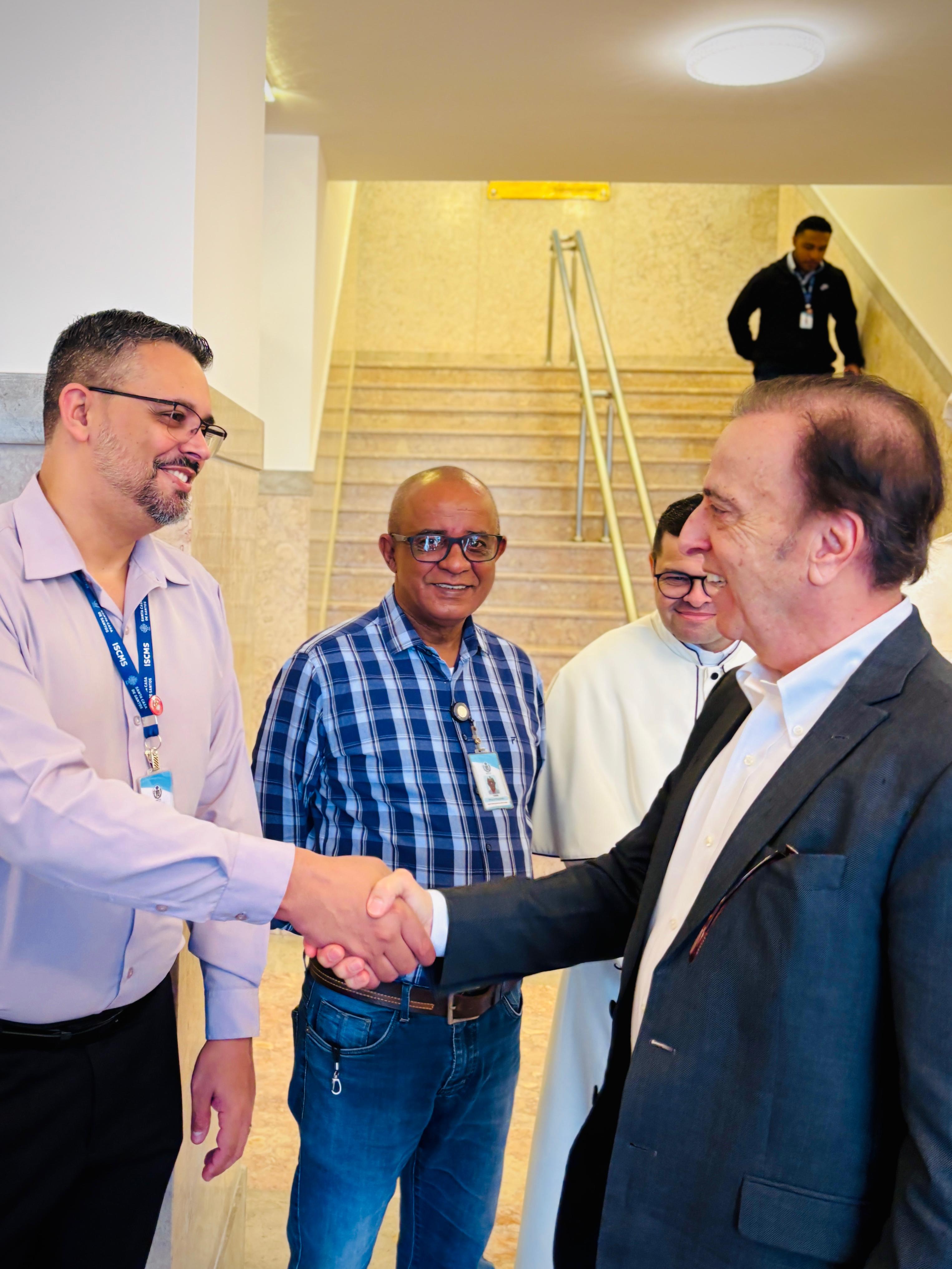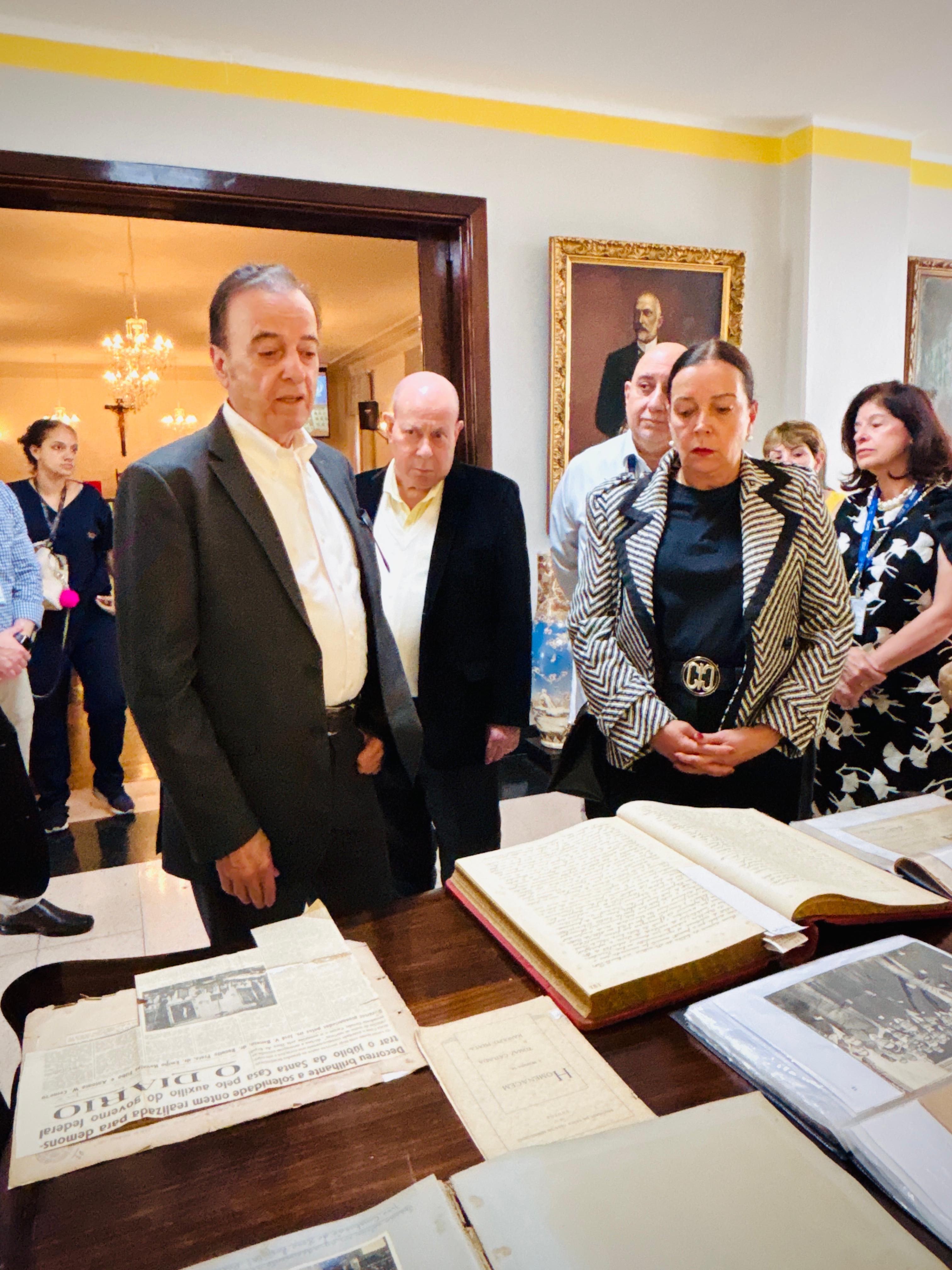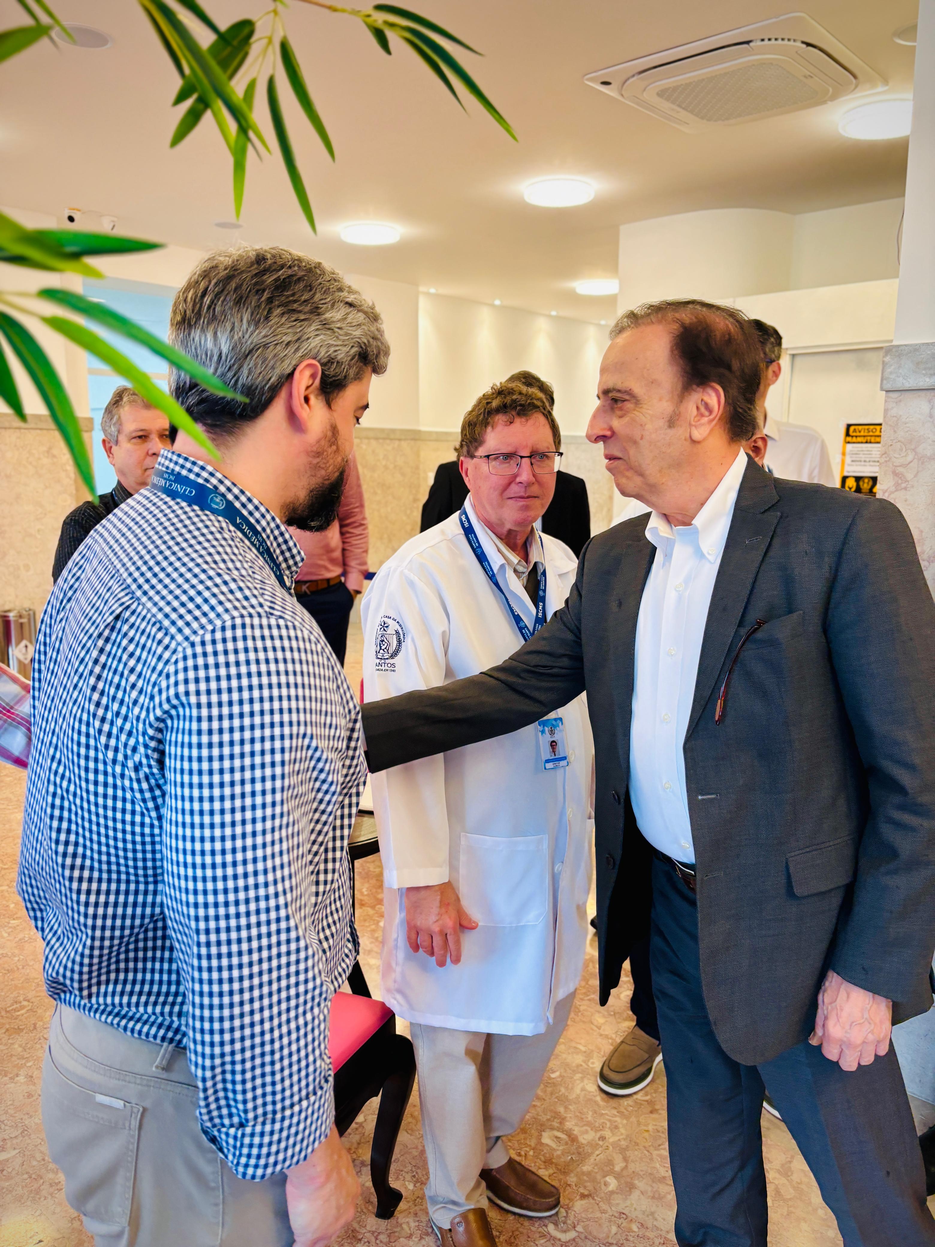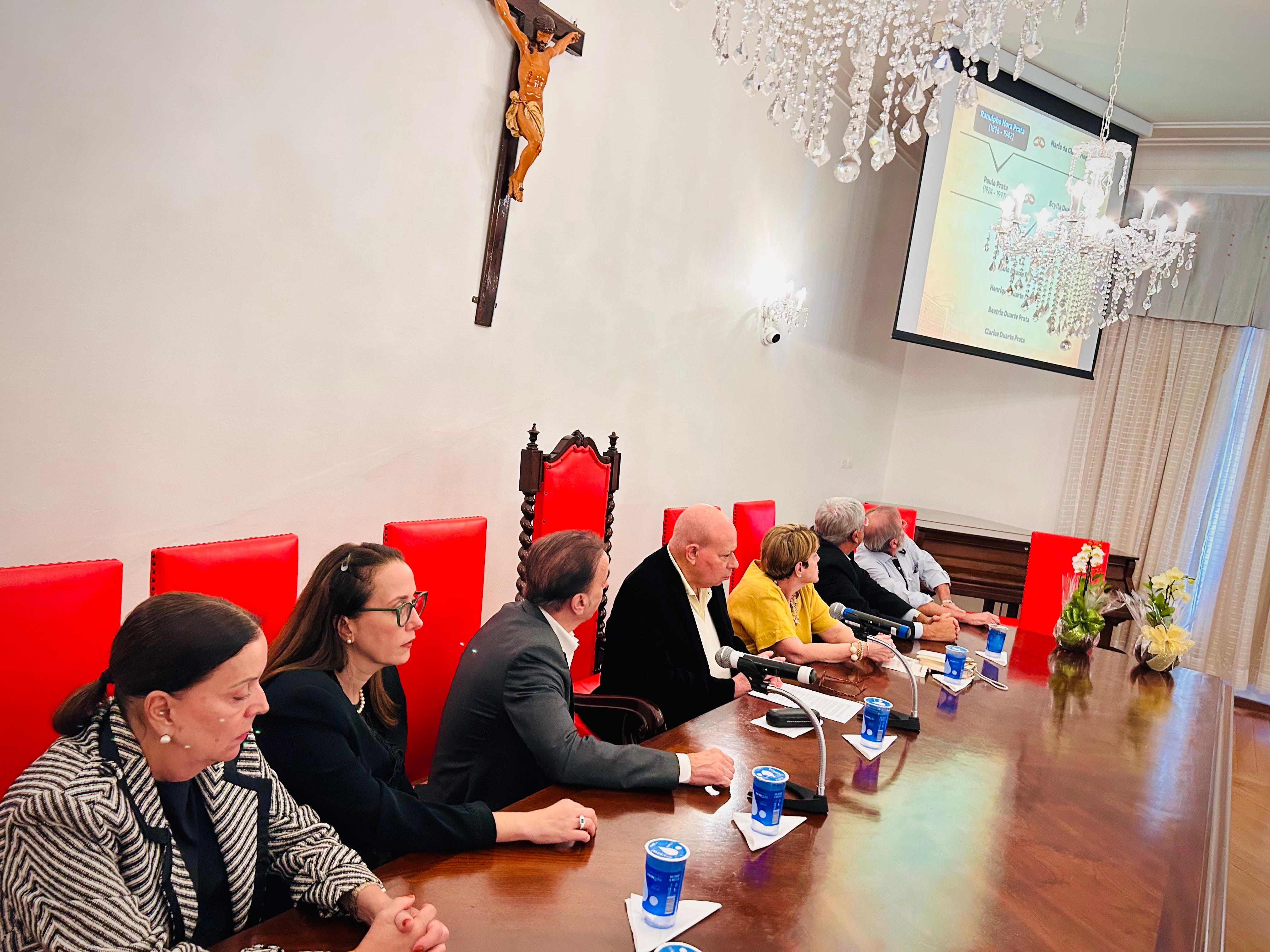 Henrique Prata foi recebido pelo Provedor Ariovaldo Feliciano, pelo vice-provedor Carlos Teixeira Filho, pelo Presidente do Conselho Geral Orlando Viscardi Jr, pelo 1º Tesoureiro da Mesa Administrativa Antonio Carvalho e pela Presidente da Comissão de Controle da Qualidade, Eliana Lopes Feliciano.