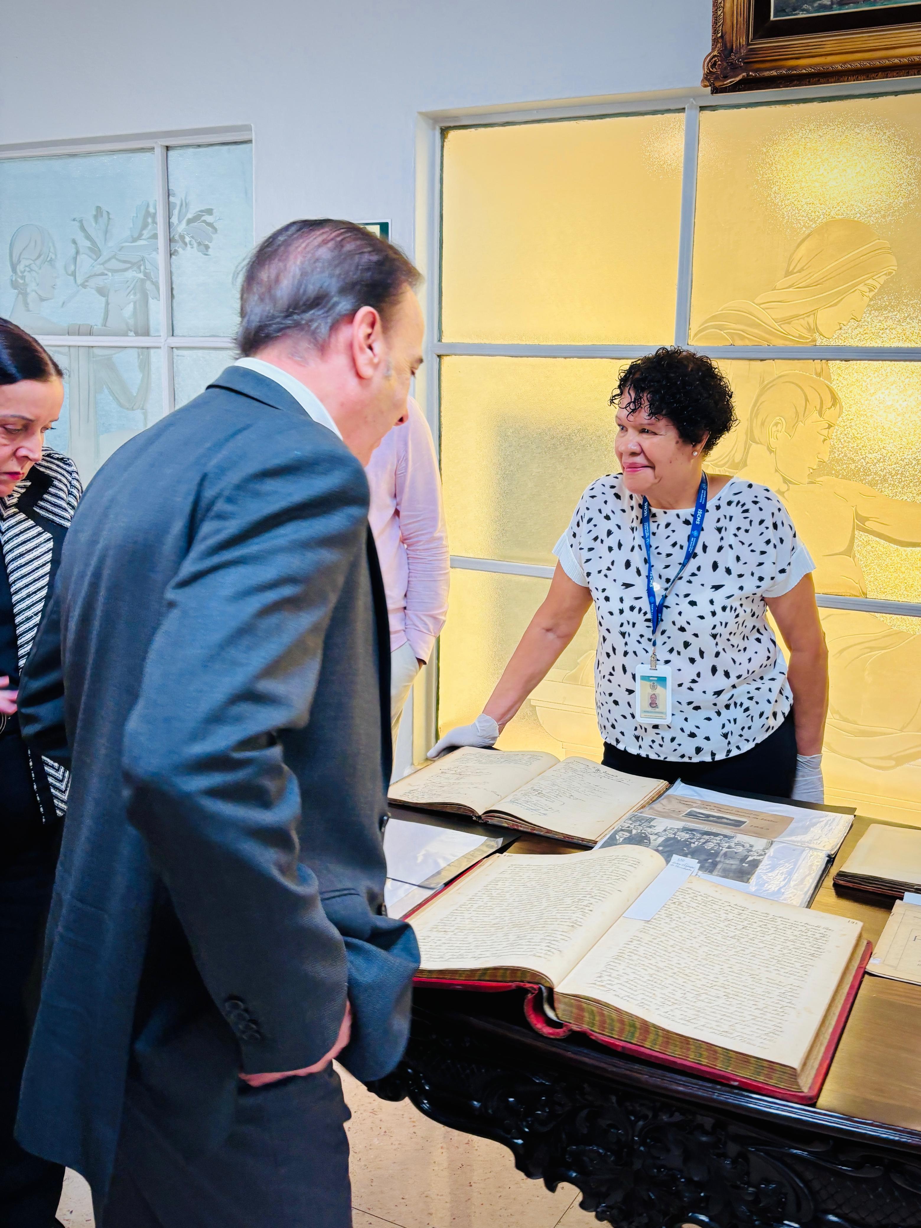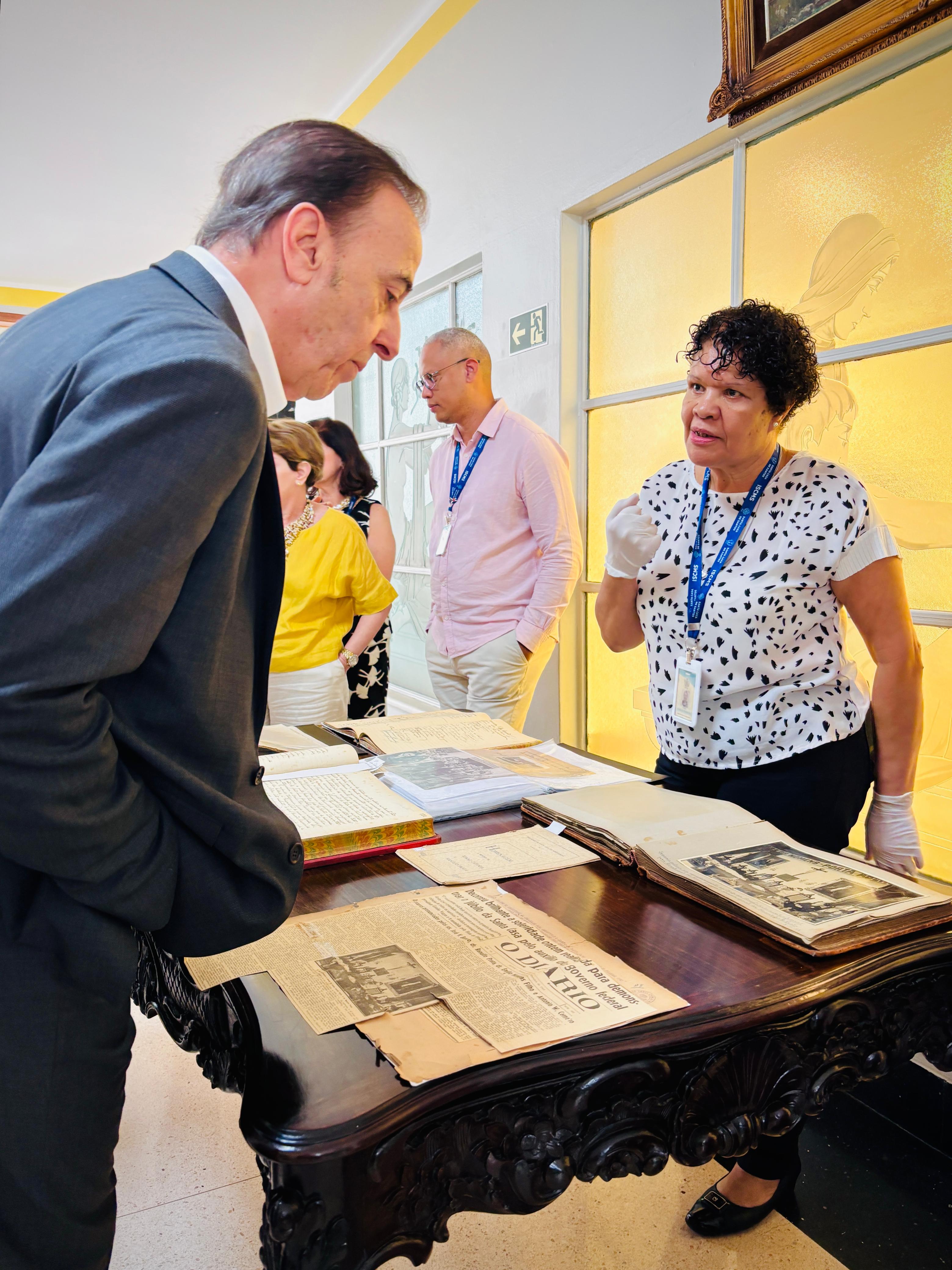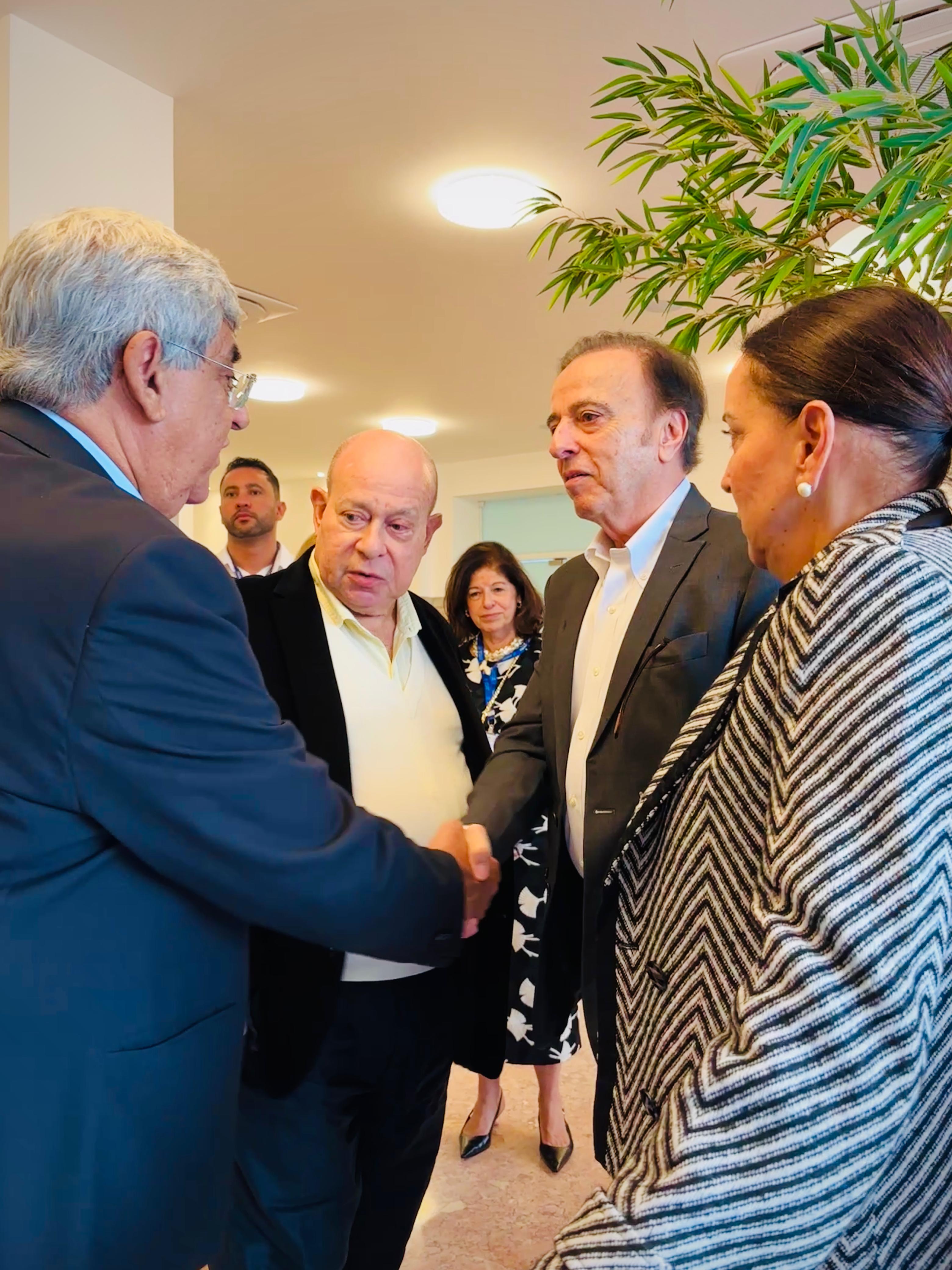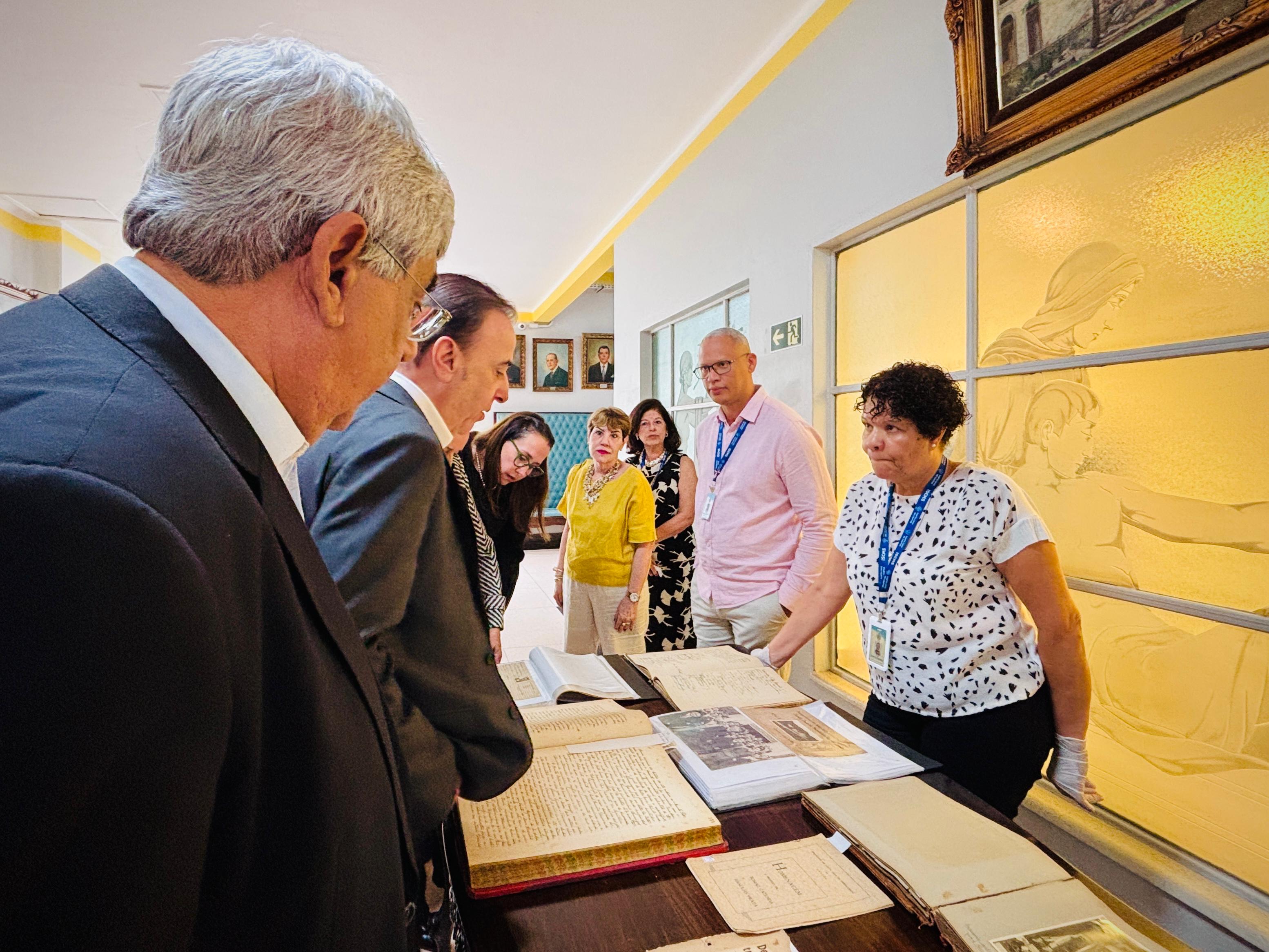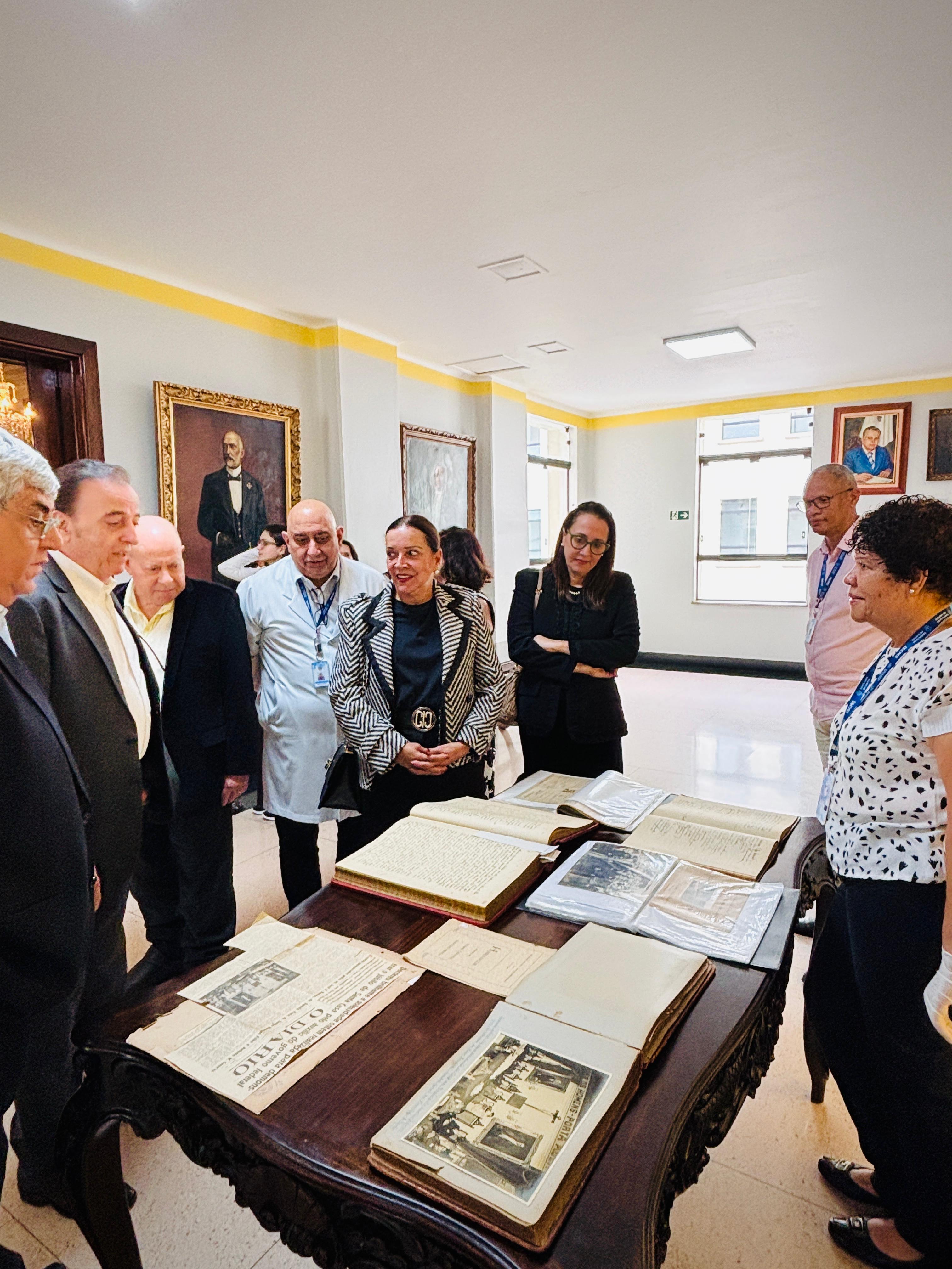 Henrique Prata foi recebido pelo Provedor Ariovaldo Feliciano, pelo vice-provedor Carlos Teixeira Filho, pelo Presidente do Conselho Geral Orlando Viscardi Jr, pelo 1º Tesoureiro da Mesa Administrativa Antonio Carvalho e pela Presidente da Comissão de Controle da Qualidade, Eliana Lopes Feliciano.