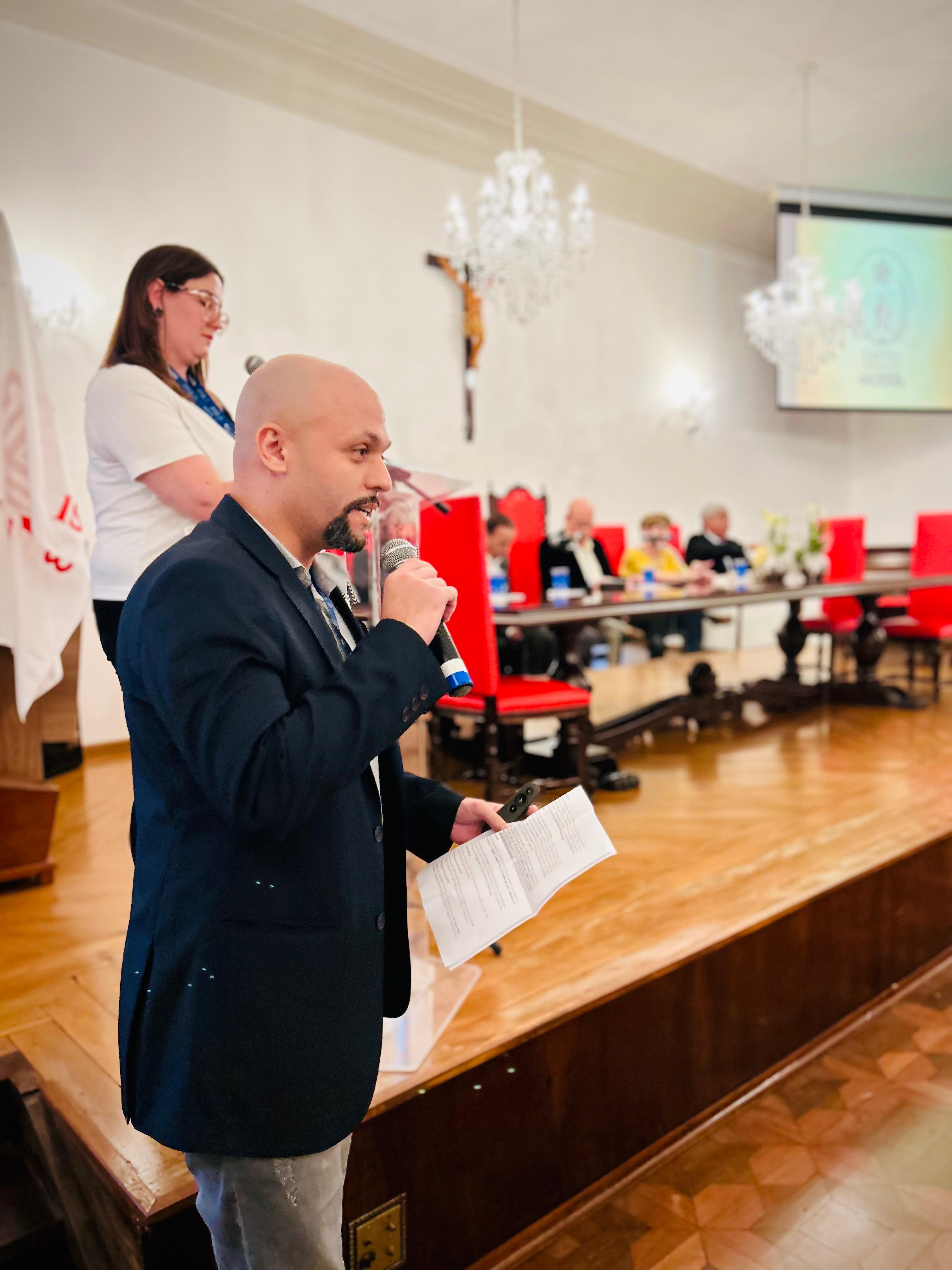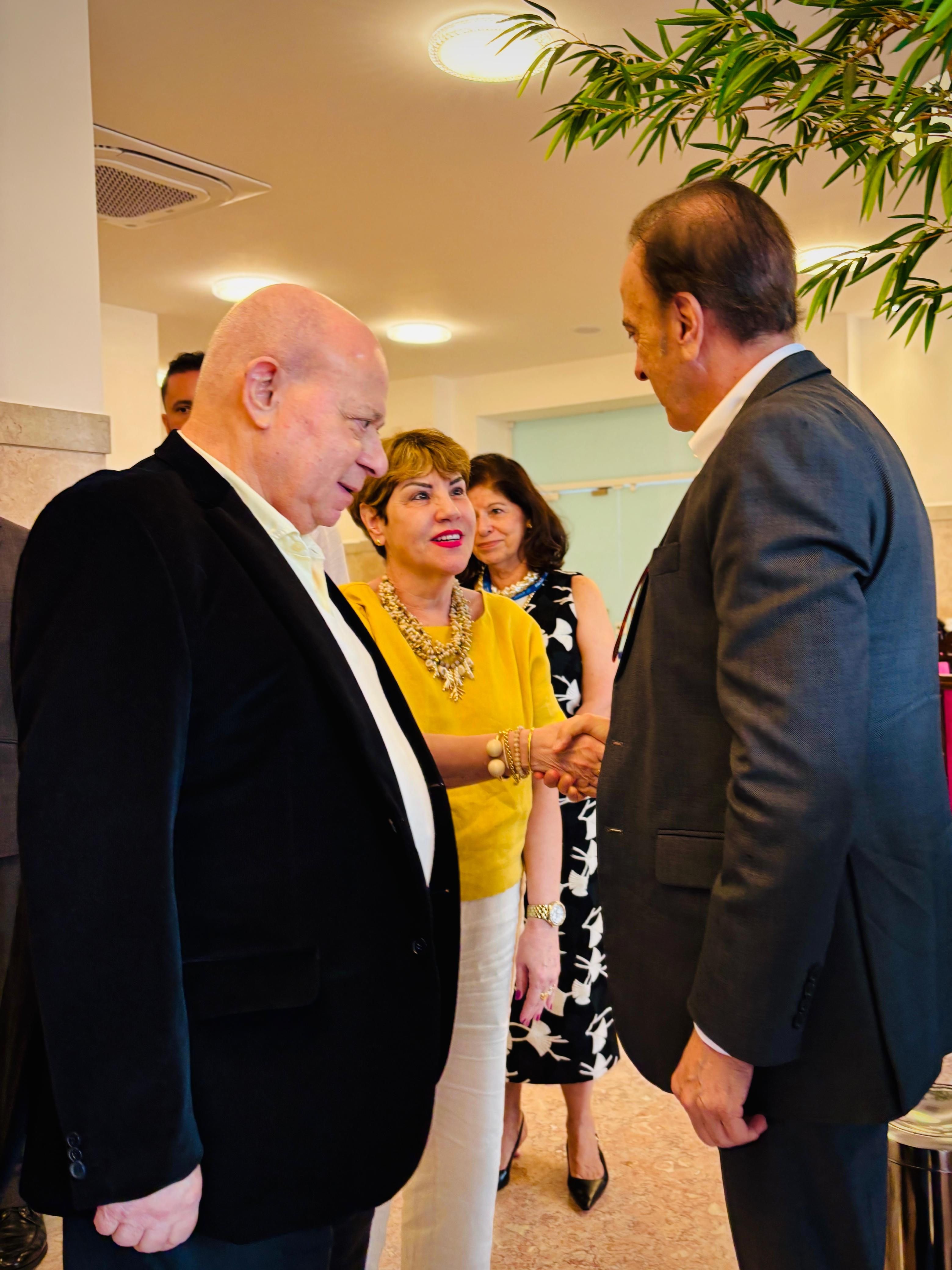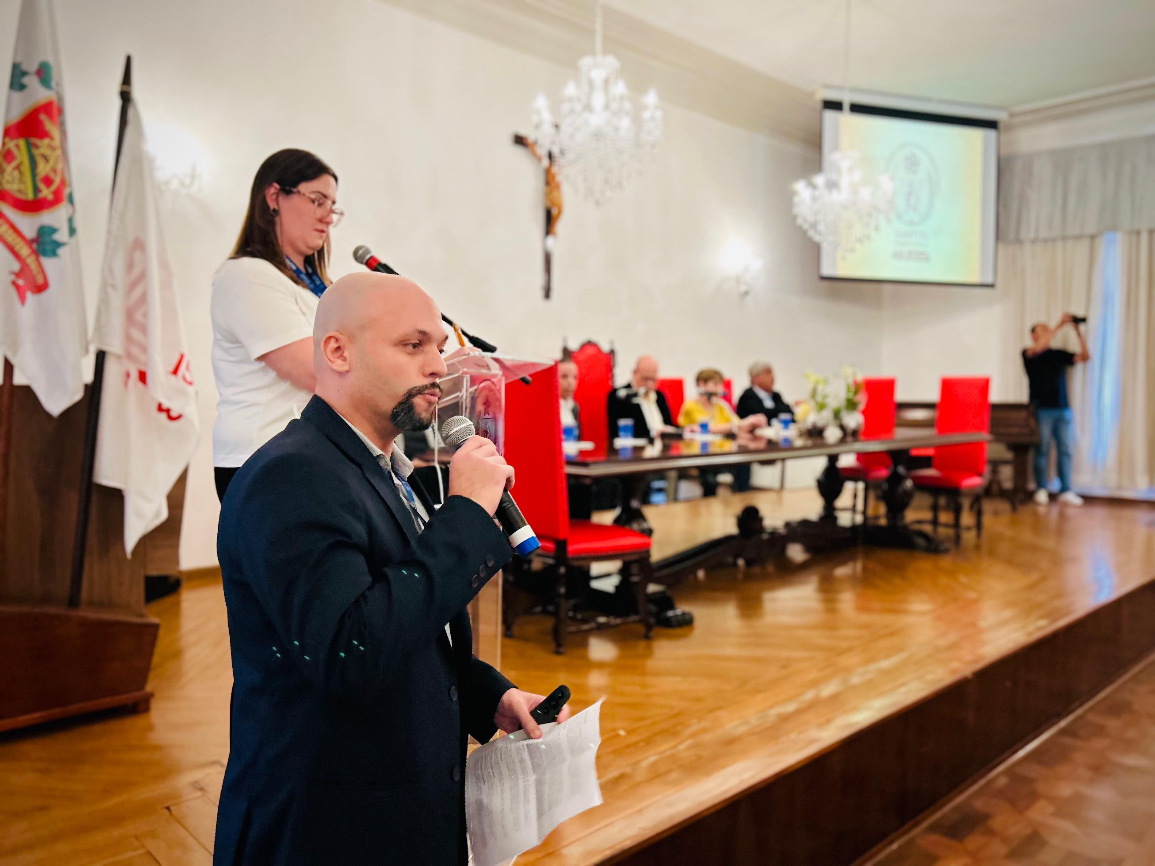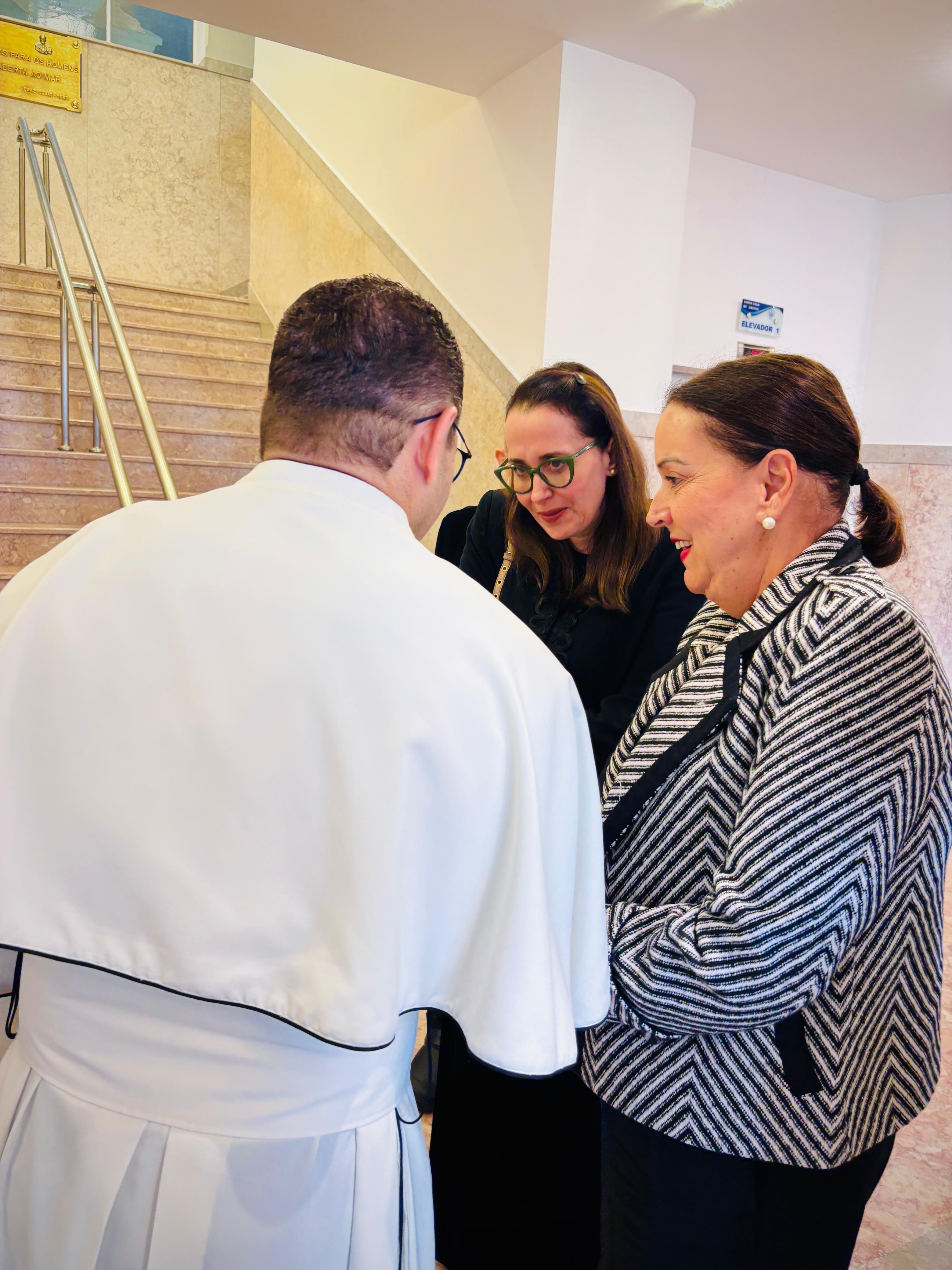 Henrique Prata foi recebido pelo Provedor Ariovaldo Feliciano, pelo vice-provedor Carlos Teixeira Filho, pelo Presidente do Conselho Geral Orlando Viscardi Jr, pelo 1º Tesoureiro da Mesa Administrativa Antonio Carvalho e pela Presidente da Comissão de Controle da Qualidade, Eliana Lopes Feliciano.