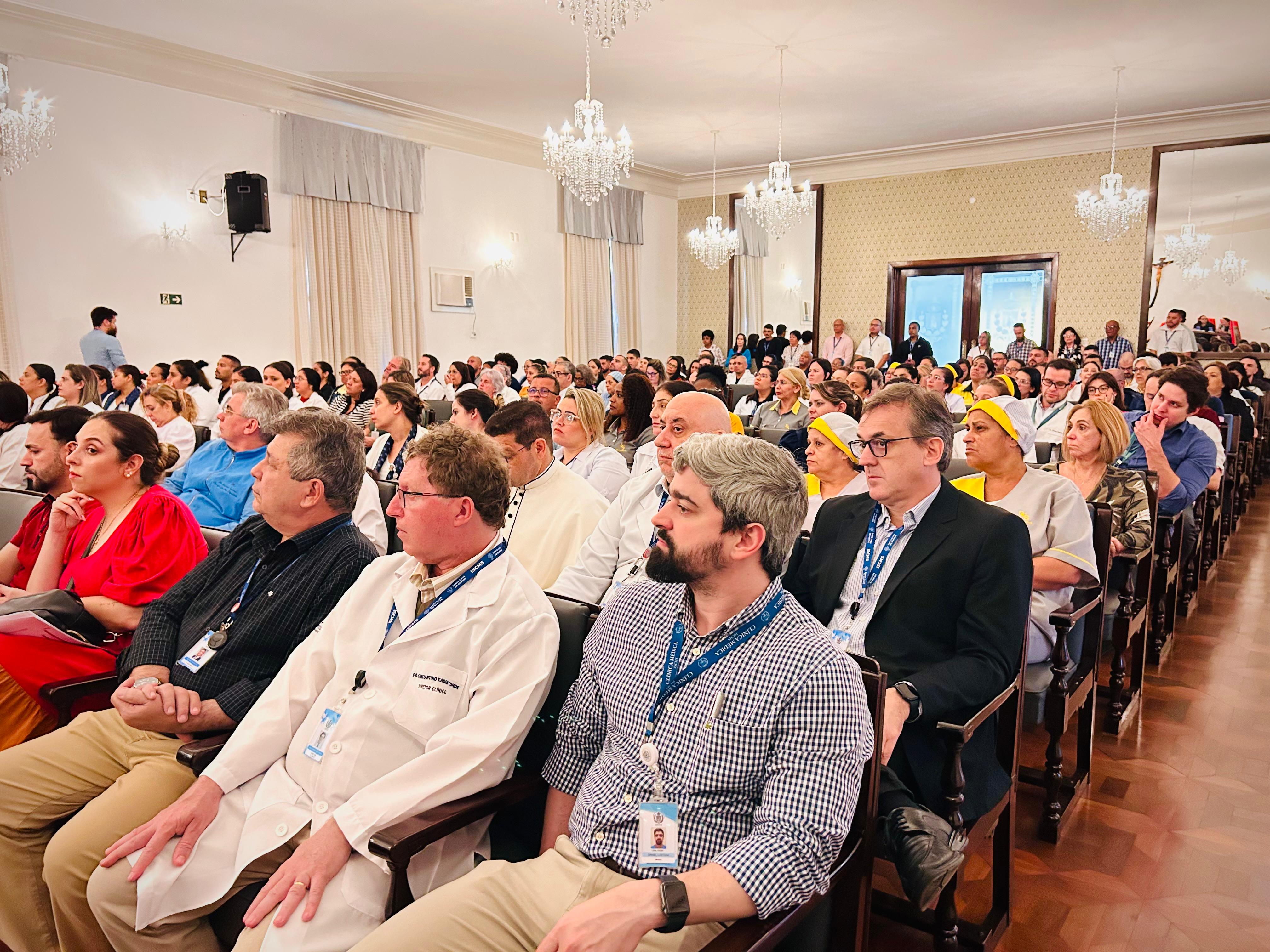 Estavam presentes na cerimônia: O Diretor Administrativo Eduardo Pimentel, o Diretor Clínico Constantino Kader Conde, o Diretor Comercial e Financeiro Fábio Luiz Isoldi, o Diretor de Infraestrutura e Apoio Bruno Dantas Gonçalves, o Diretor de Inovação e Tecnologia Cristiano Oliveira de Sousa, o Diretor Jurídico Aldo Santos Pinto, o Diretor Técnico Alex Gonçalves Macedo, o Vice-Diretor Clínico Dr. Eloi Moccellin, o Assessor Especial da Provedoria Dr. Daniel de Carvalho Lustoza, o Assessor Técnico Executivo Marcio de Castro Lourenço das Neves e a médica coordenadora de Desenvolvimento Estudantil da Diretoria Clínica, Drª. Rosilene Morales.