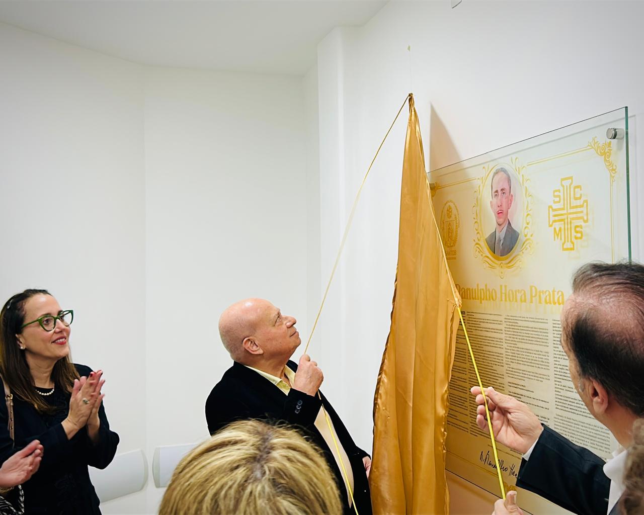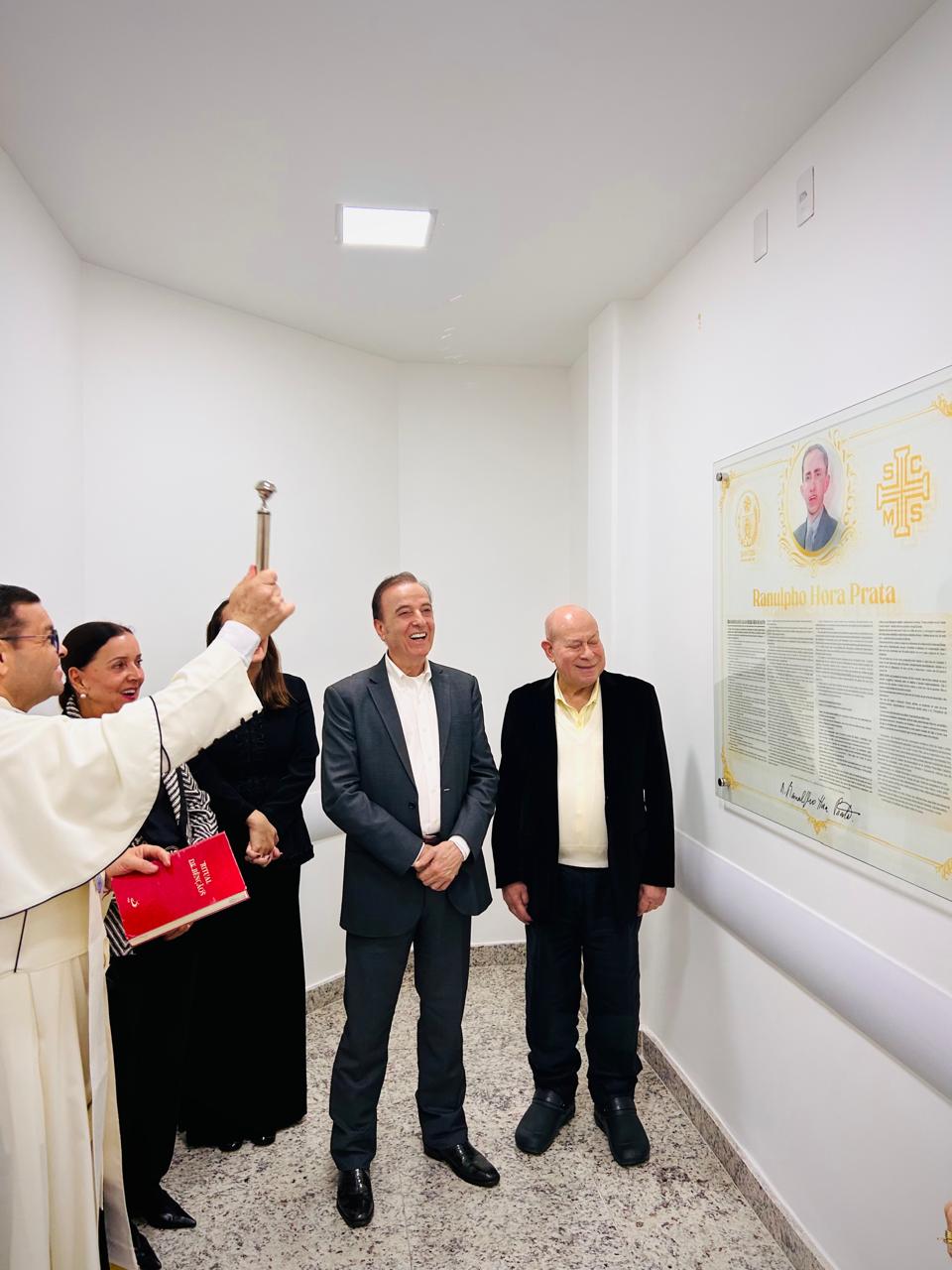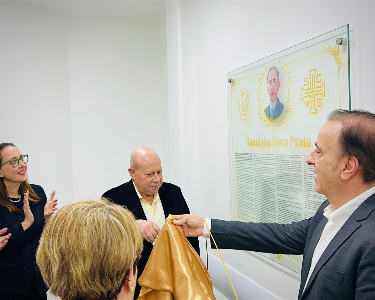 Após a cerimônia, todos se dirigiram até o Raio-X Central, localizado no 2ºF, para descerrar o quadro de homenagem à Ranulpho Hora Prata. O Capelão da instituição, Padre Denilson de Freitas abençoou o quadro de homenagem. O provedor Ariovaldo entregou para Henrique Prata um exemplar do livro com a história da Santa Casa de Santos.