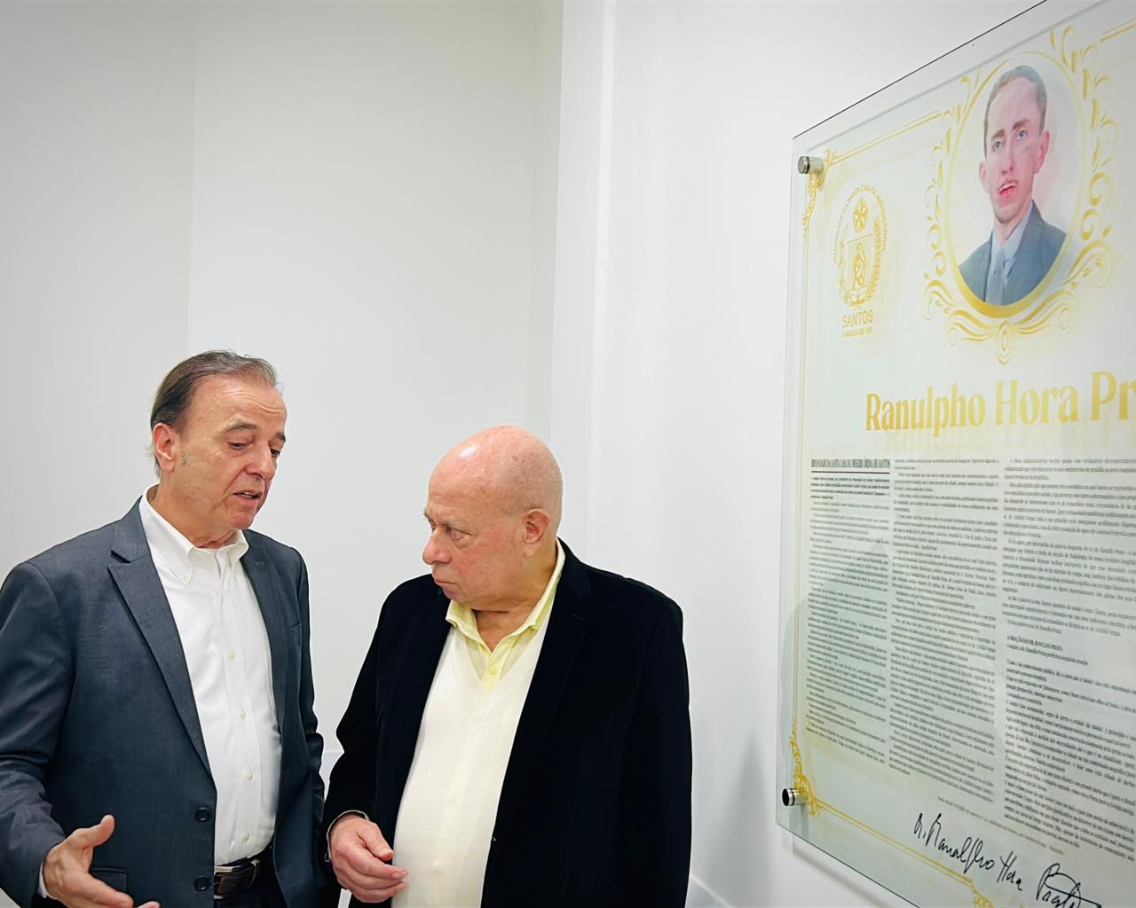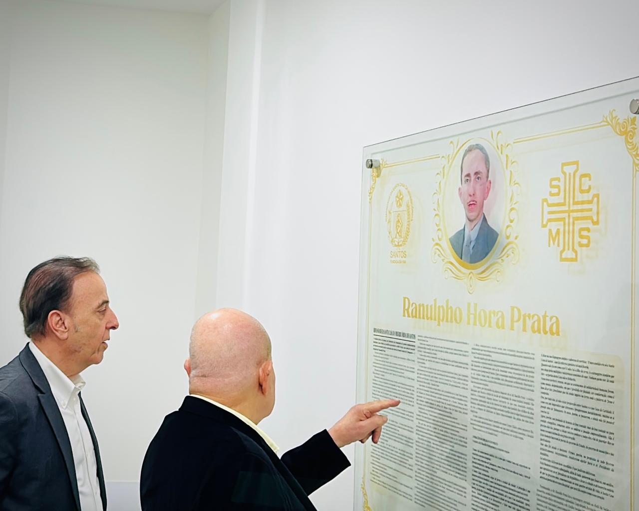 Em solenidade no Consistório da instituição, Agrício Ferreira de Barros Júnior, assessor da Diretoria Clínica fez a abertura do evento apresentando a trajetória de Ranulpho Hora Prata e sua ligação com a Santa Casa de Santos, onde deixou um legado. “Neste ano, o atual prédio da Santa Casa completa 80 anos e 482 anos de história e a Santa Casa tem a honra — e o dever — de recolocar seu nome onde sempre pertenceu. Reinauguramos, com enorme emoção, o nosso serviço como: “Serviço de Radiologia – Dr. Ranulpho Hora Prata”. Todo o material de pesquisa sobre a história de Ranulpho Prata foi feito pelo Arquivo Geral da Santa Casa de Santos, através da historiadora Sra. Rosilda Raimunda Gouveia Ferreira, que fez uma pequena exposição dos arquivos originais.