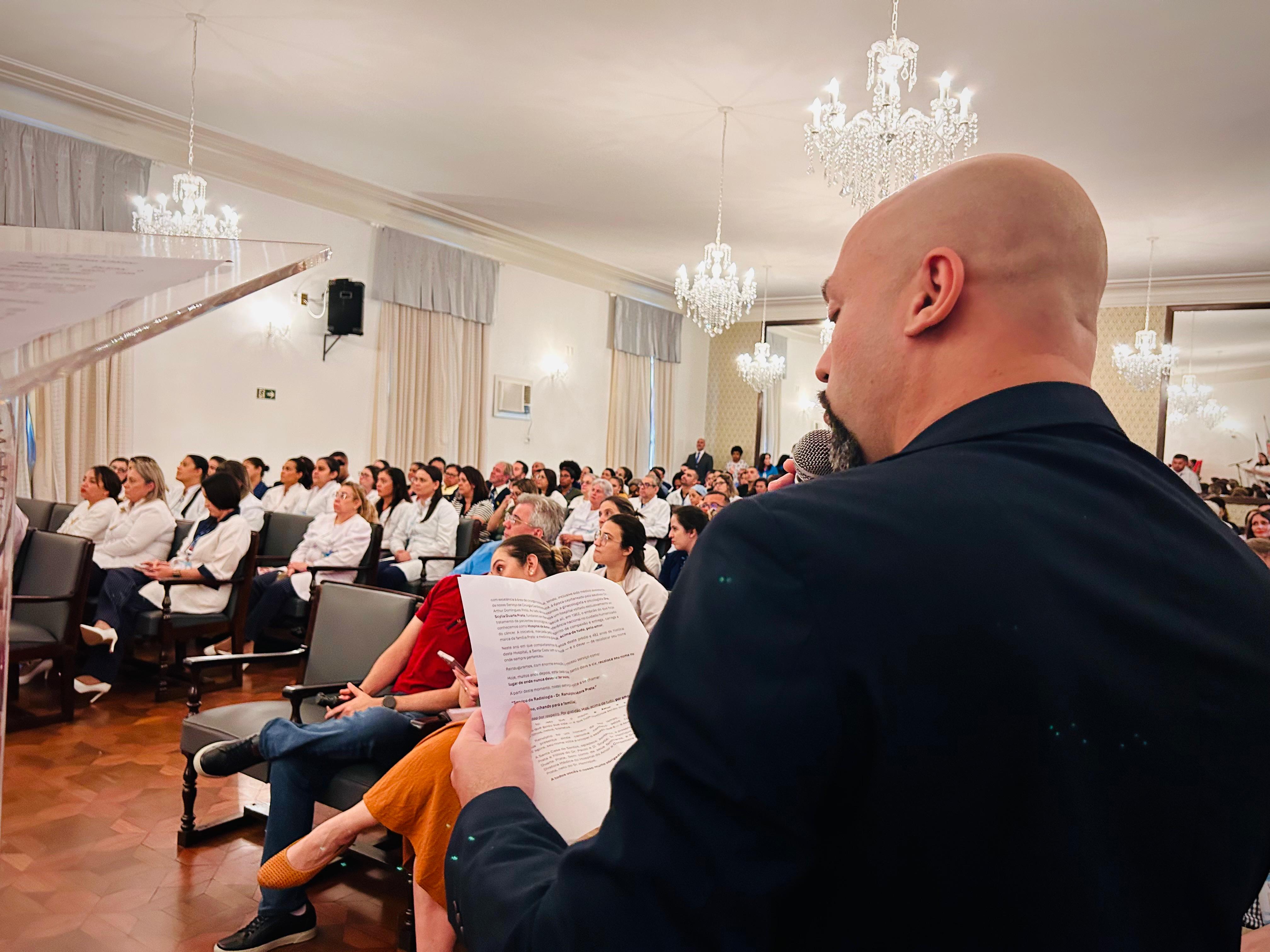 Henrique Prata, em discurso longo, agradeceu imensamente todas as homenagens feitas para o avô, Ranulpho Prata e toda a sua família. Destacou também o trabalho realizado no Hospital do Amor em Barretos, onde atendem pacientes oncológicos via SUS e que está muito feliz de estar em Santos, onde o nome da Santa Casa também é conhecido pelo Brasil a fora.