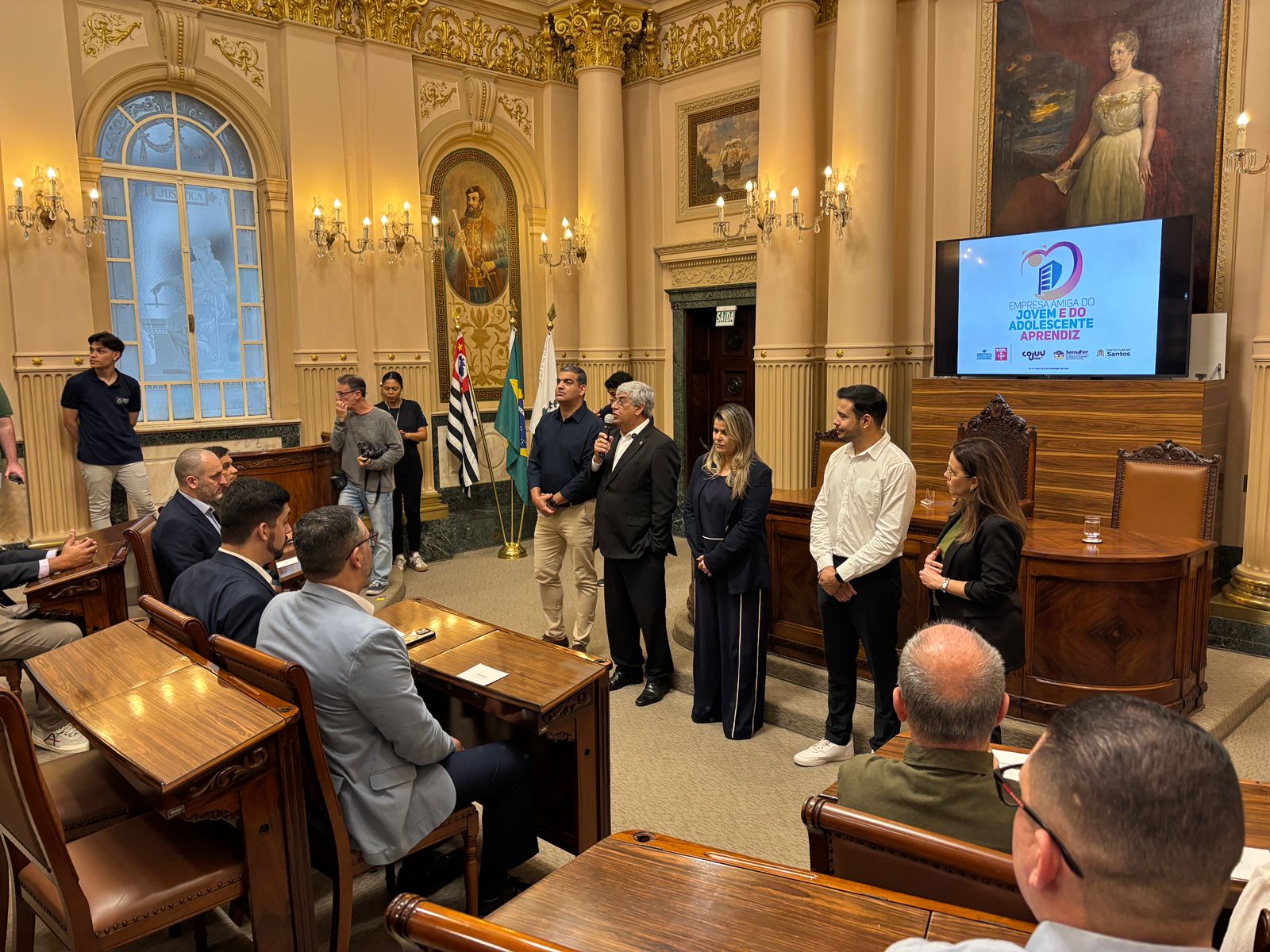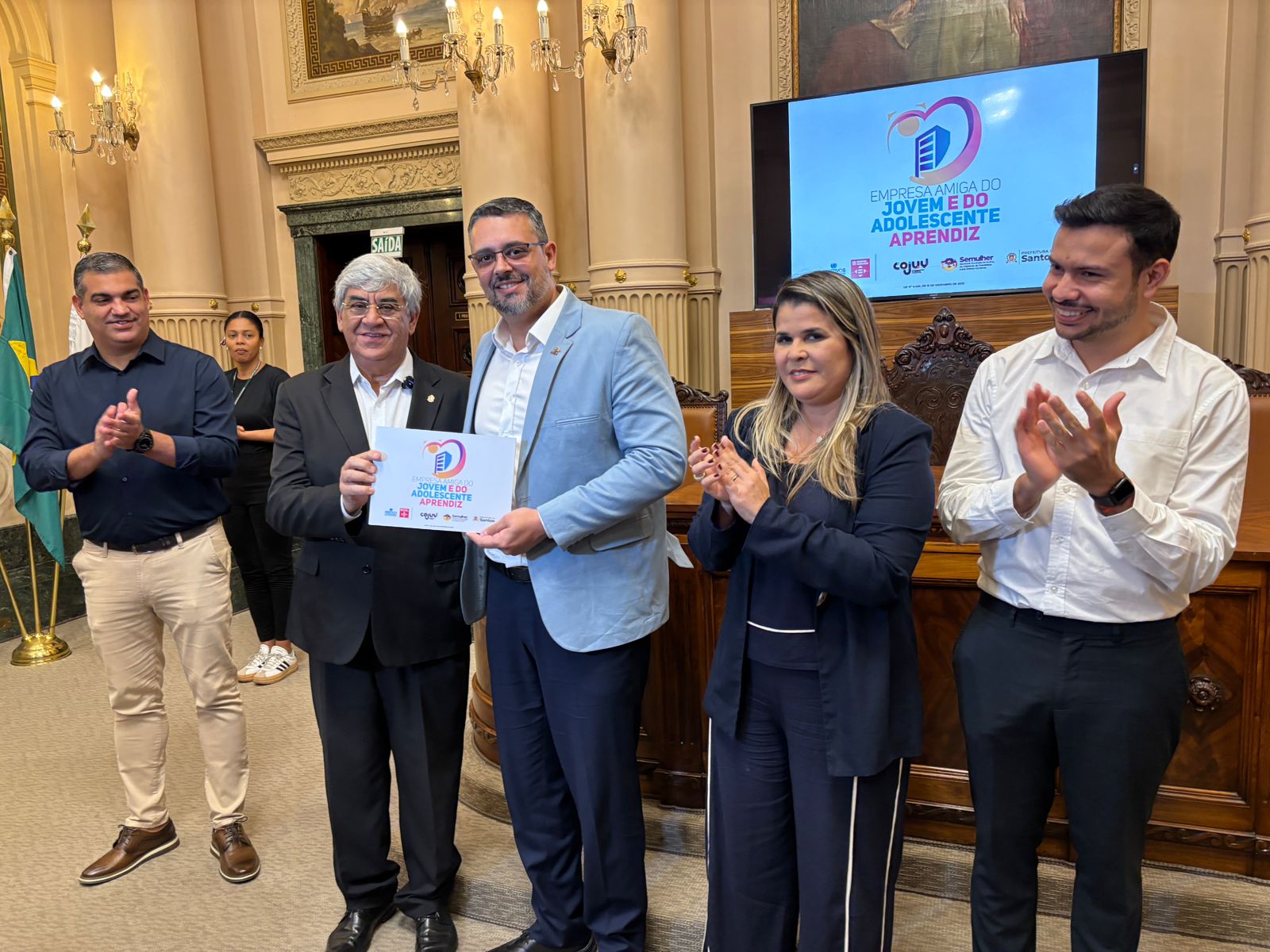 Na manhã desta terça-feira, dia 19 de agosto de 2025, a Santa Casa de Santos recebeu o Selo Empresa Amiga do Jovem e do Adolescente Aprendiz, em cerimônia oficial realizada na Prefeitura Municipal de Santos, conforme critérios estabelecidos pela Lei Municipal nº 4.200/2023 e pelo Decreto nº 9.681/2023. Esta ação é um importante reconhecimento às instituições que investem na inclusão de jovens no mercado de trabalho.