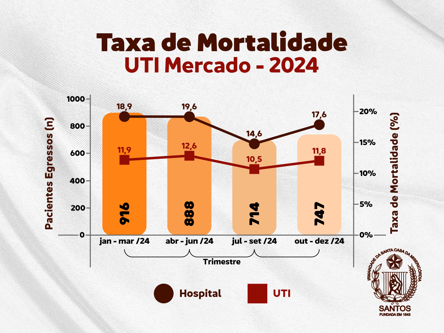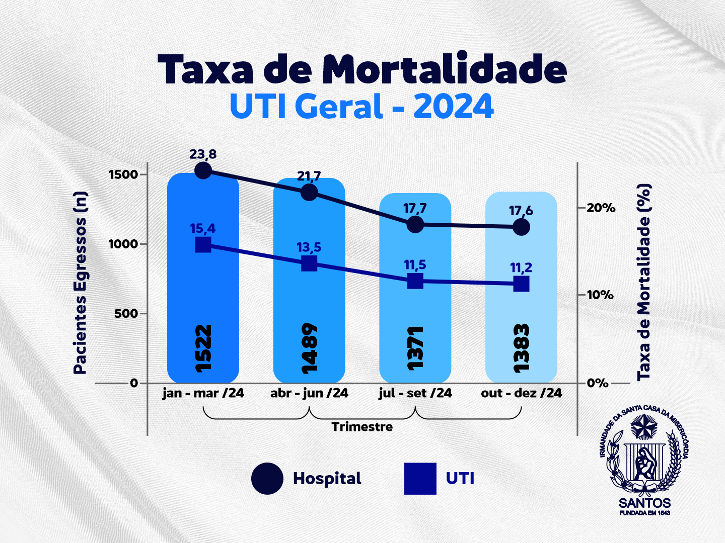 A Santa Casa de Santos começa o ano com mais motivos para comemorar a qualidade do atendimento. De acordo com a apuração dos resultados clínicos de todas as UTIs durante o ano de 2024, a instituição apresentou os melhores índices de mortalidade e tempo de internação, desde que o sistema de gestão de performance Epimed foi implantado (2021).