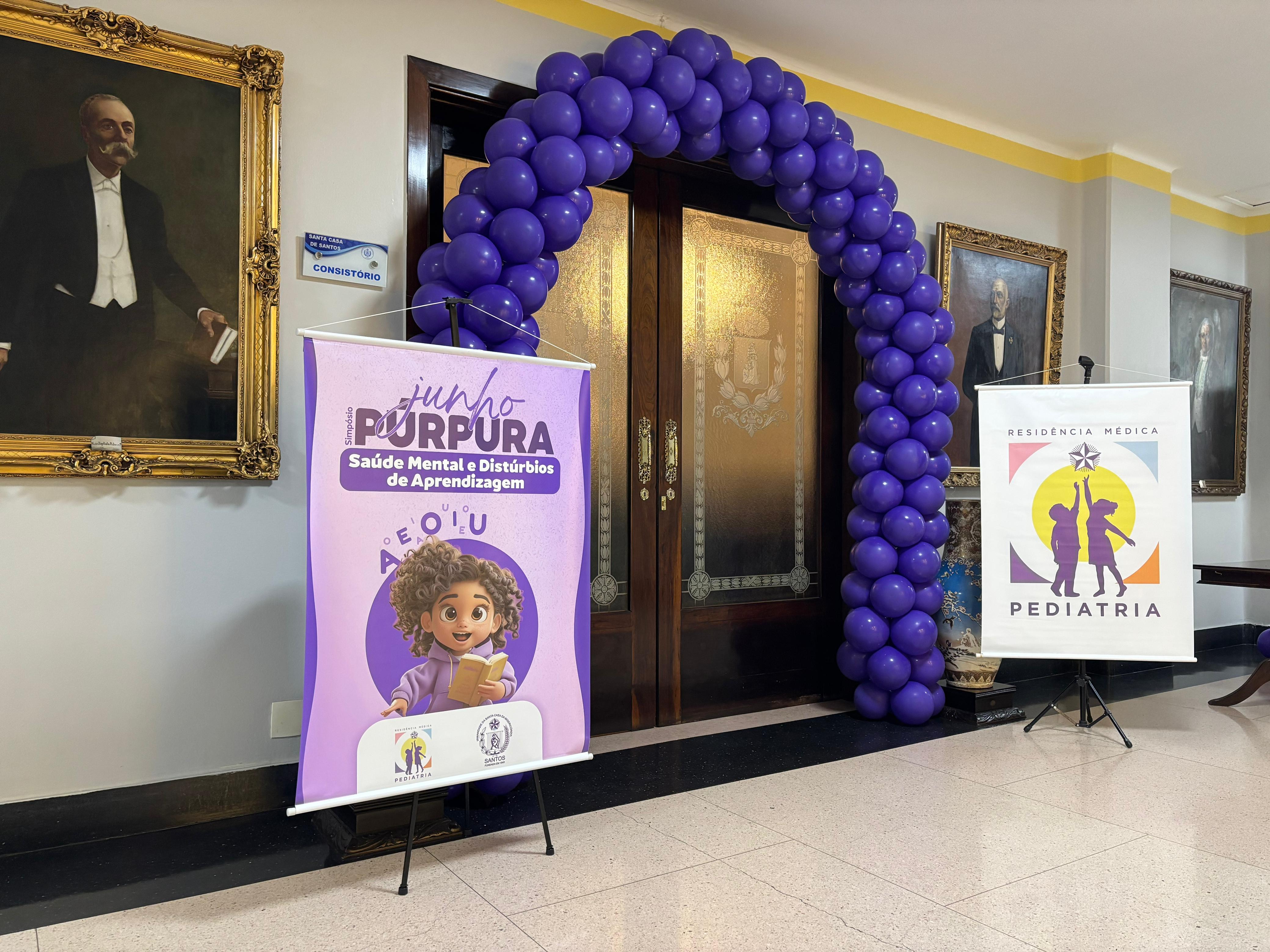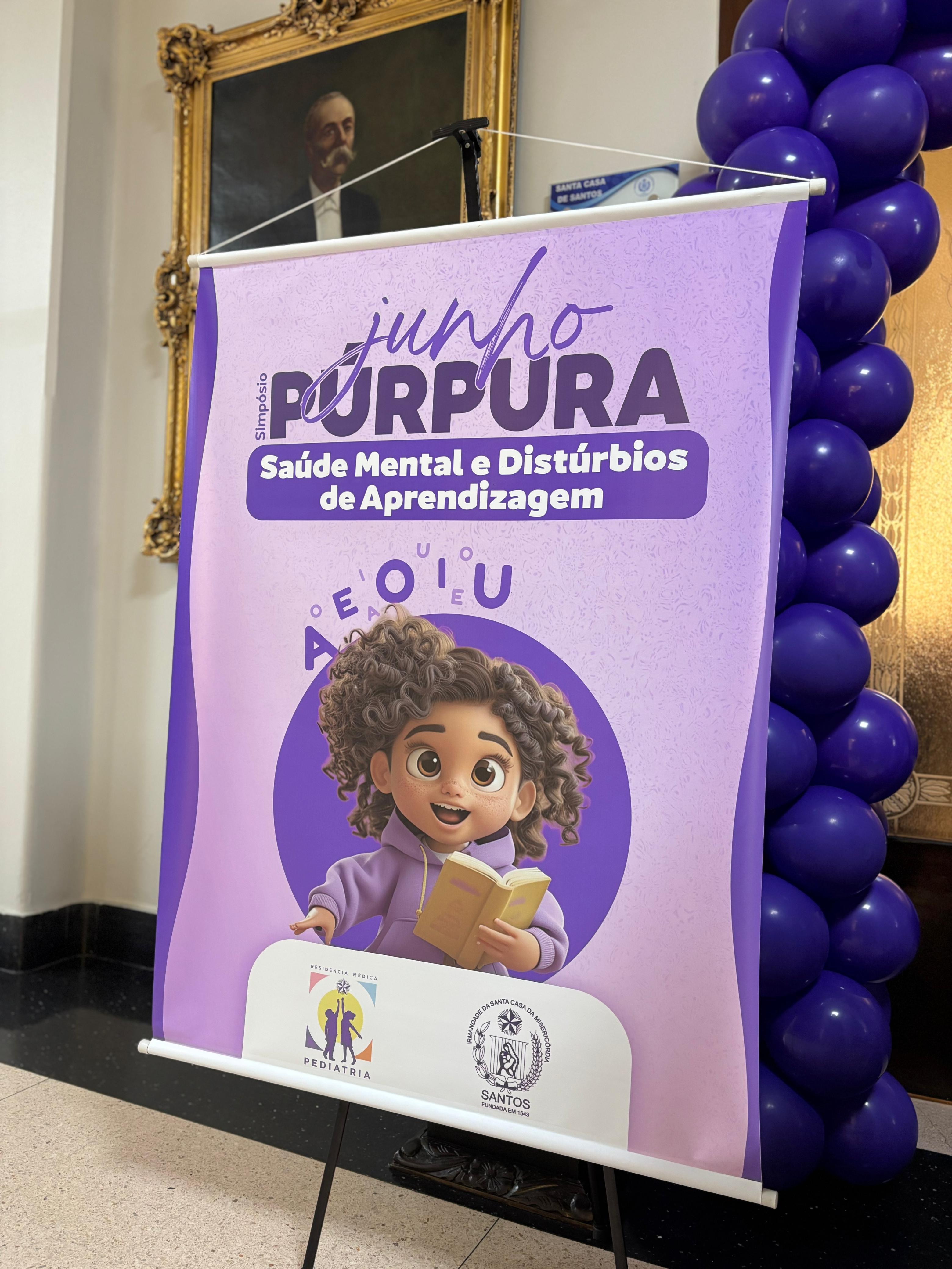 O Simpósio Junho Púrpura contou com a presença de cerca de 140 profissionais da área da saúde e foi realizado na tarde do dia 27 de junho, no Consistório da Santa Casa de Santos. Organizado pelas Coordenadoras da Pediatria, Dra. Bruna Giaccomelli e Dra. Ana Luiza Dib, a campanha é nacional e promovida pela Sociedade Brasileira de Pediatria.