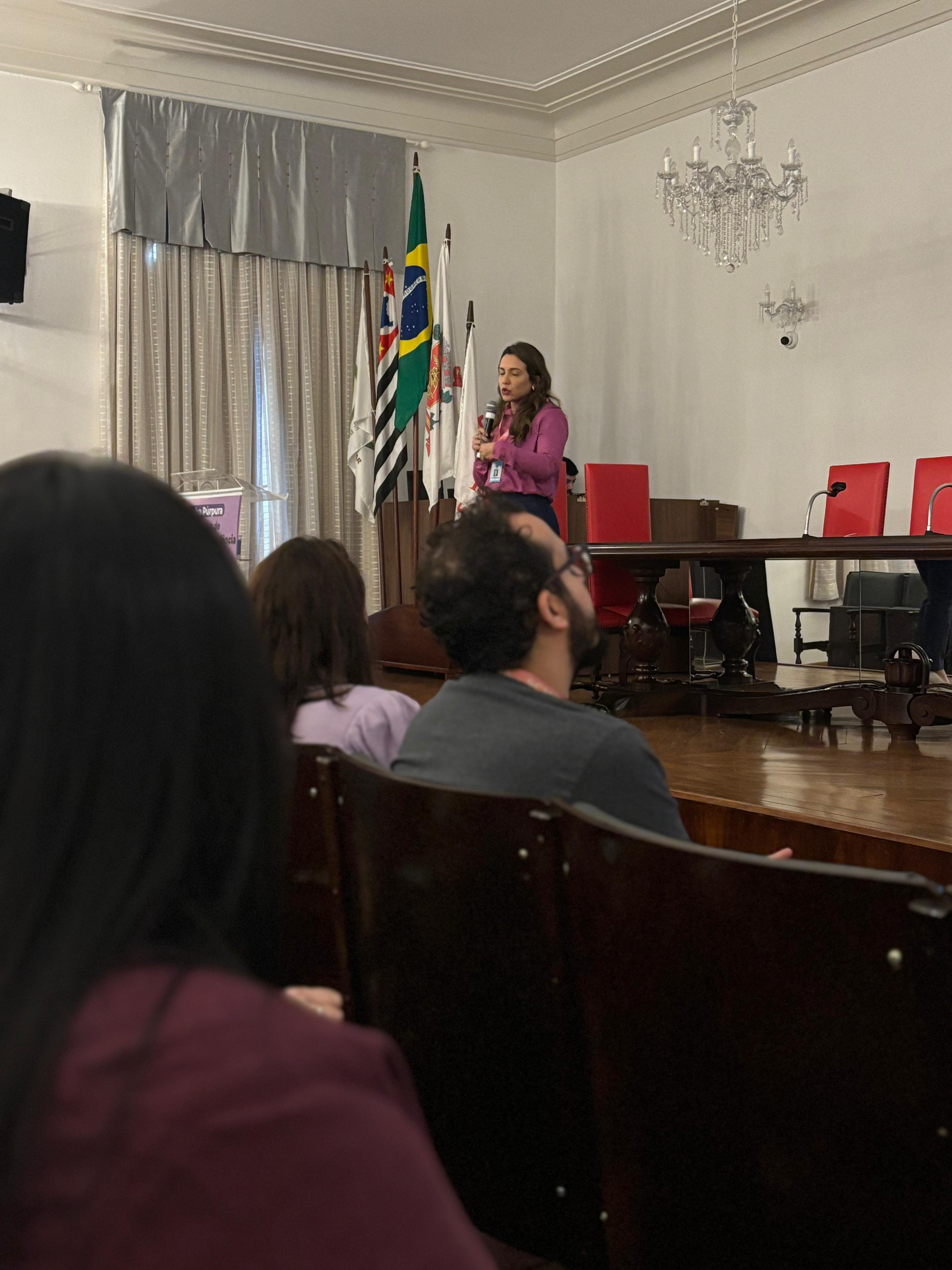 A primeira palestrante foi a residente em pediatria, Dra. Ana Clara Rossin que apresentou o objetivo da campanha e a importância dos distúrbios de aprendizagem no contexto pediátrico. “A campanha visa auxiliar os pediatras a identificar e orientar os pais sobre os distúrbios de aprendizagem em crianças e adolescentes, bem como levar informações sobre o tema às famílias, educadores e demais profissionais que atuam com a faixa etária pediátrica”.