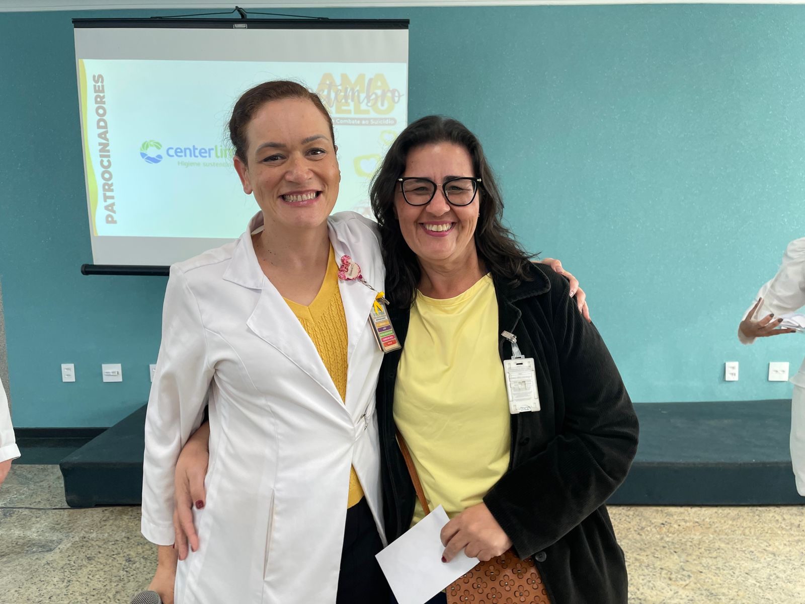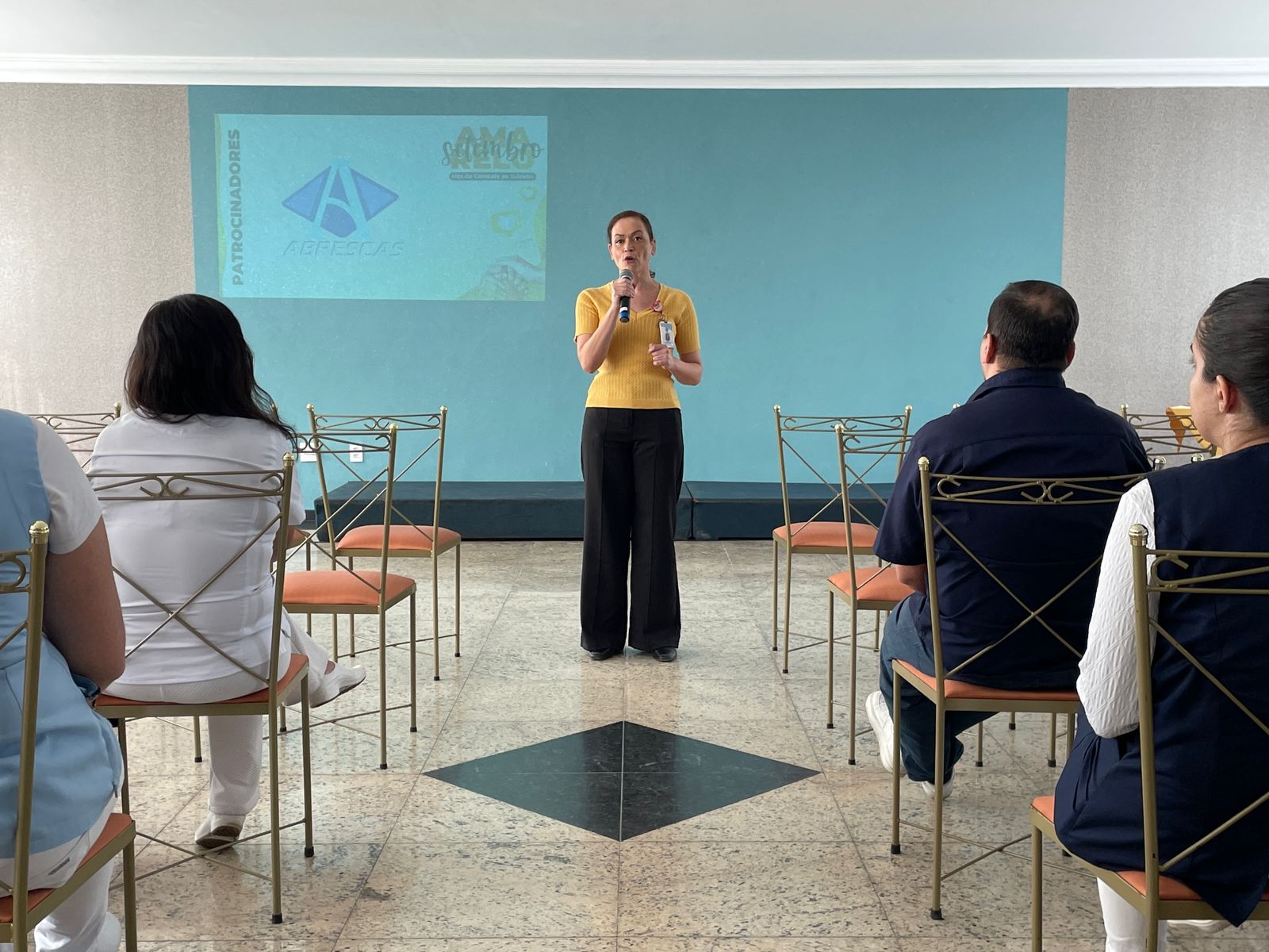 No dia 10/9, na Abrescas, aconteceu o 2º dia de programação da campanha Setembro Amarelo promovida pelo Setor de Medicina do Trabalho da Santa Casa de Santos. O salão da Abrescas ficou lotado de funcionários de diversas áreas.