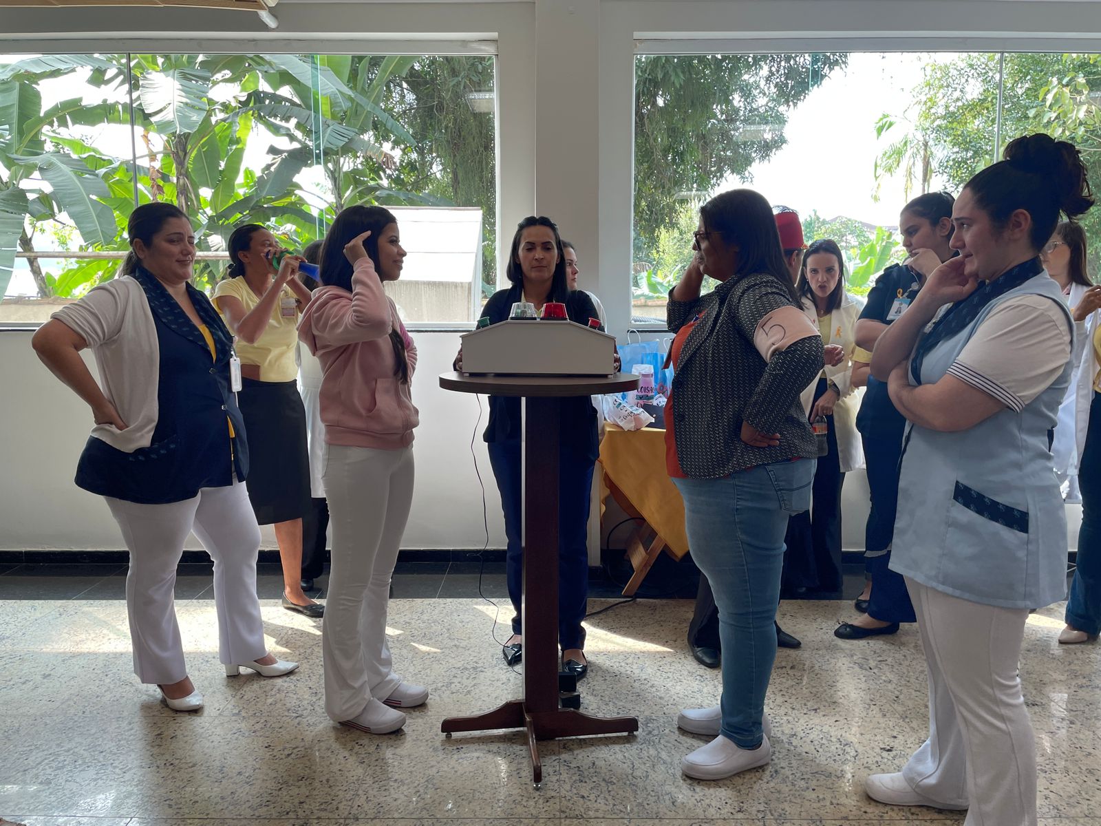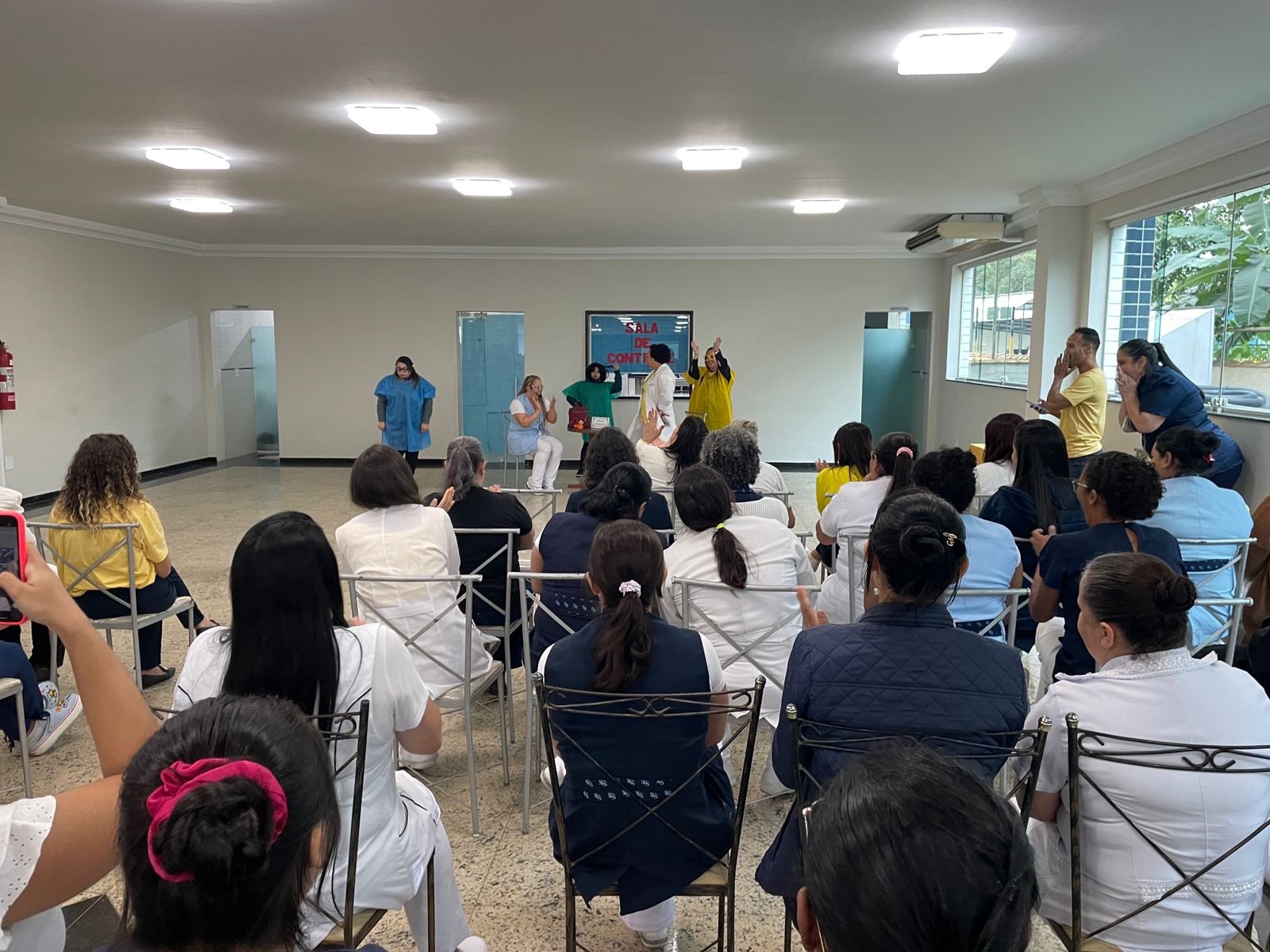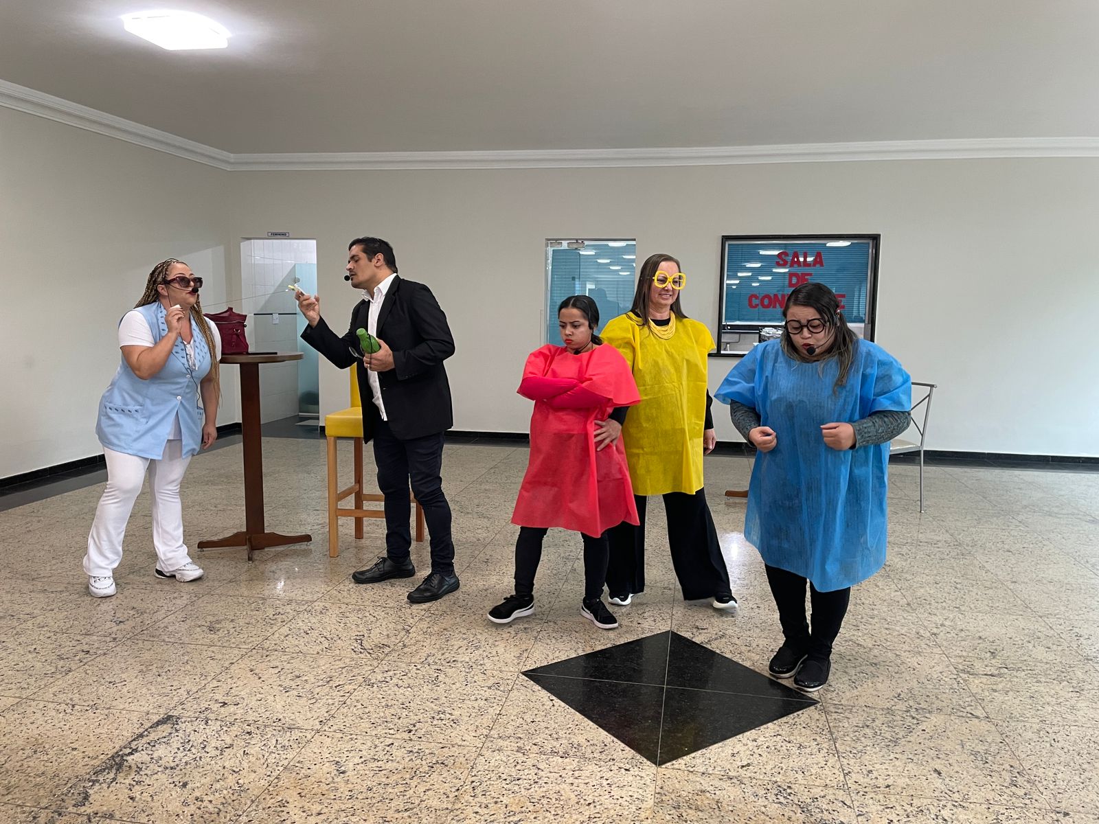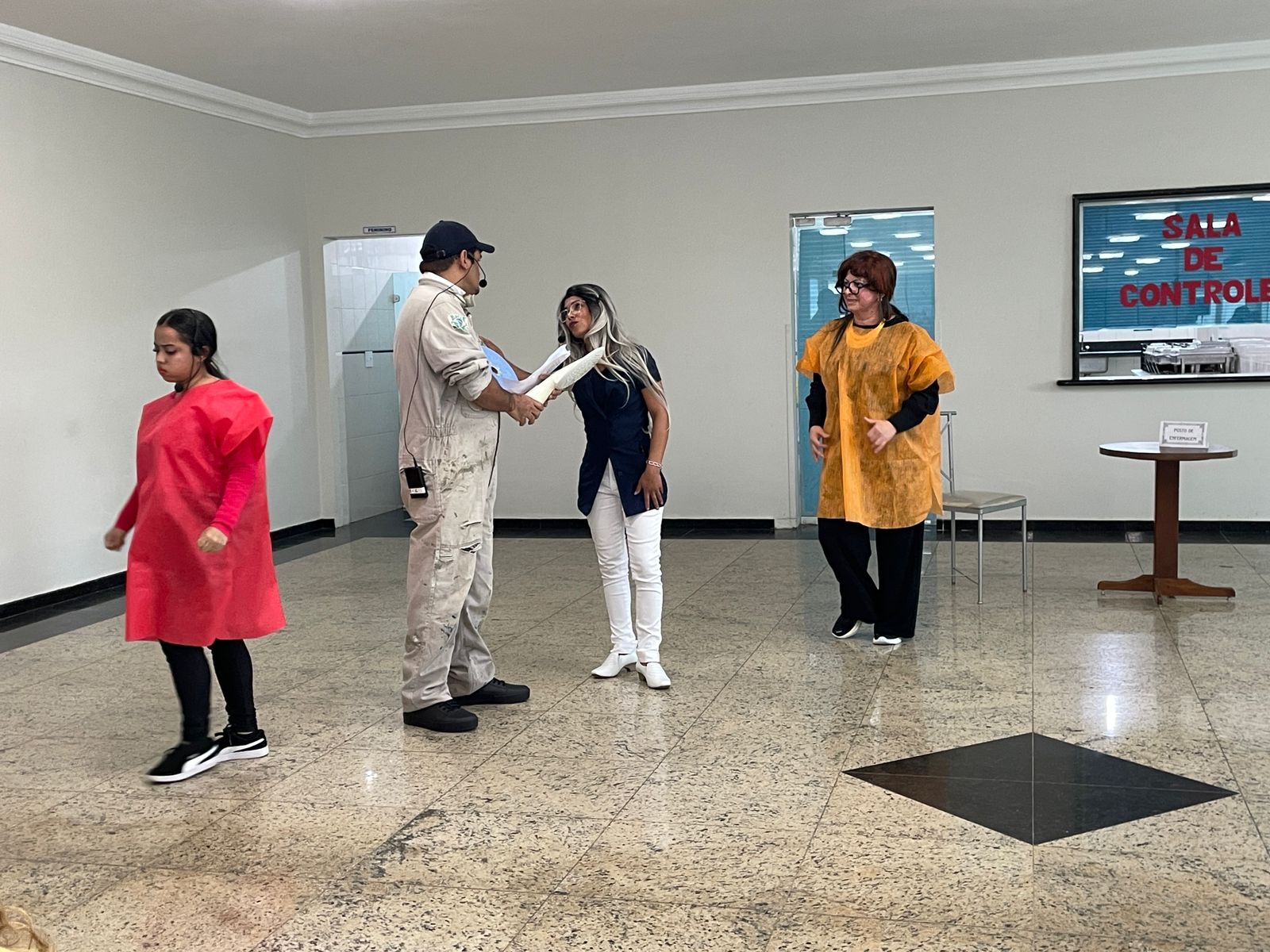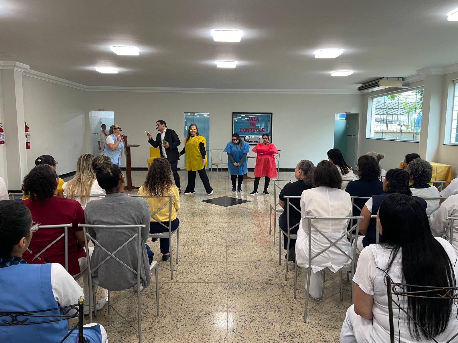 Após a palestra, foi apresentado um teatro produzido pelos próprios colaboradores, onde situações cotidianas do ambiente hospitalar foram simuladas de forma hilária, porém alertando sobre as situações que despertam diversos sentimentos nocivos à saúde mental. A peça de teatro também demonstrou como pedir ajudar e destacou o papel do Setor de Medicina do Trabalho no atendimento destes casos.